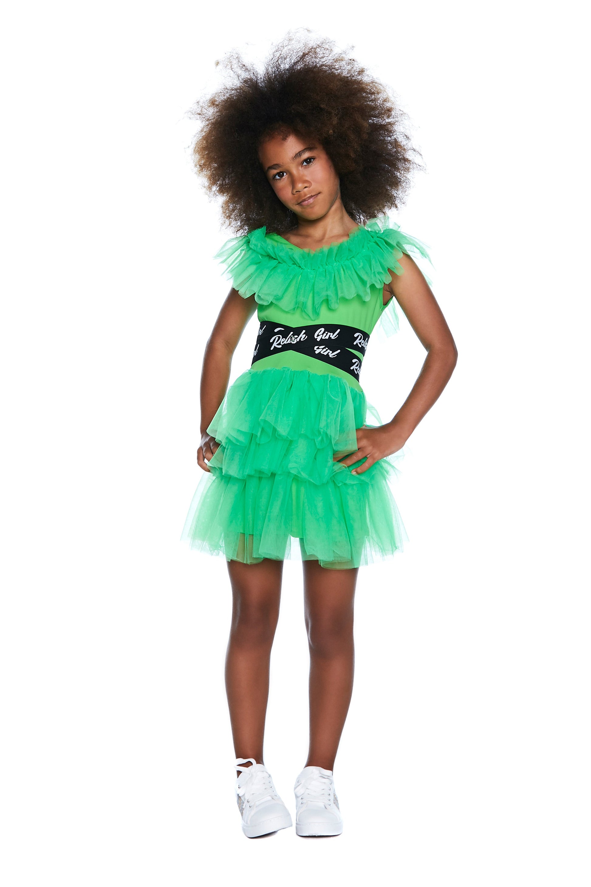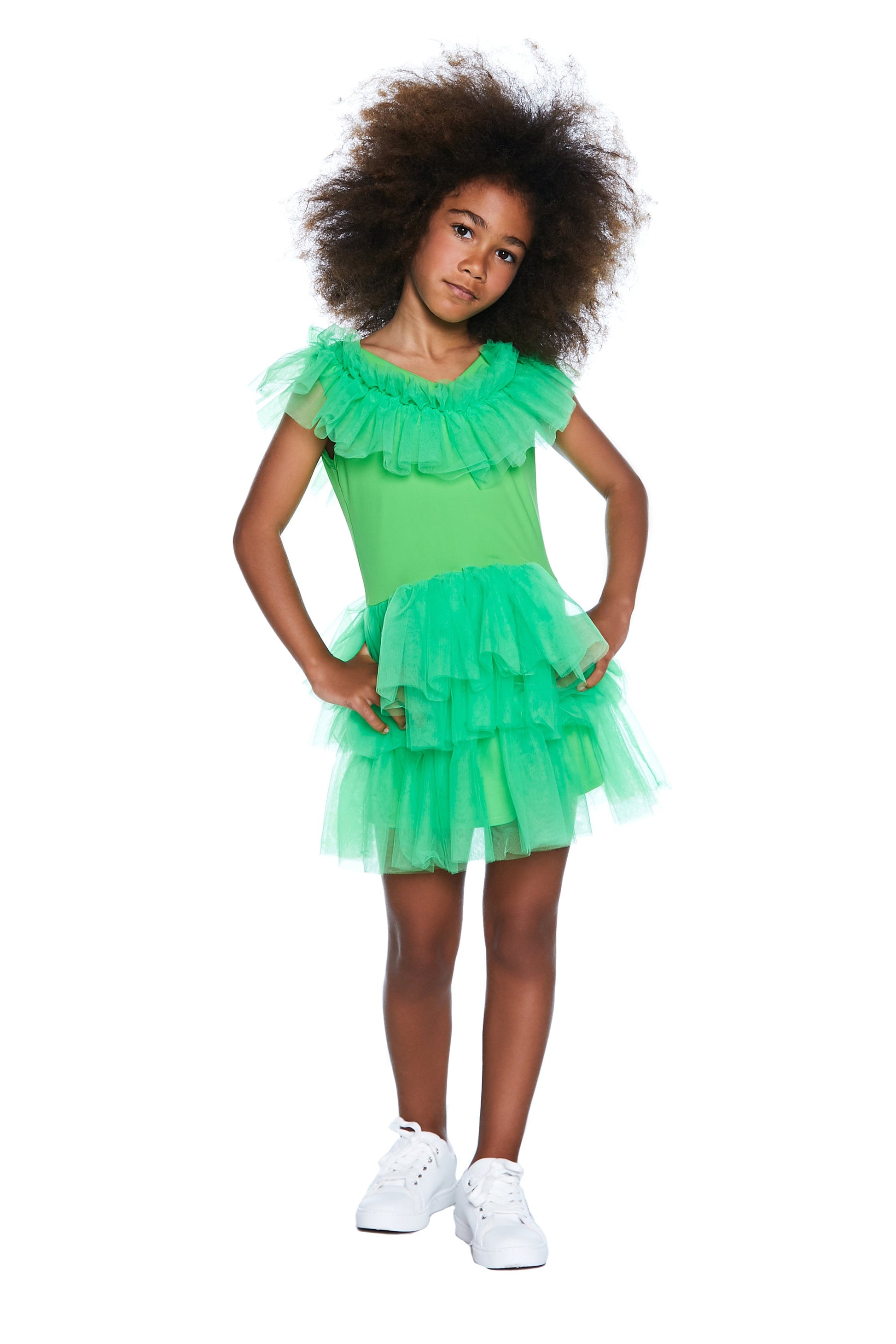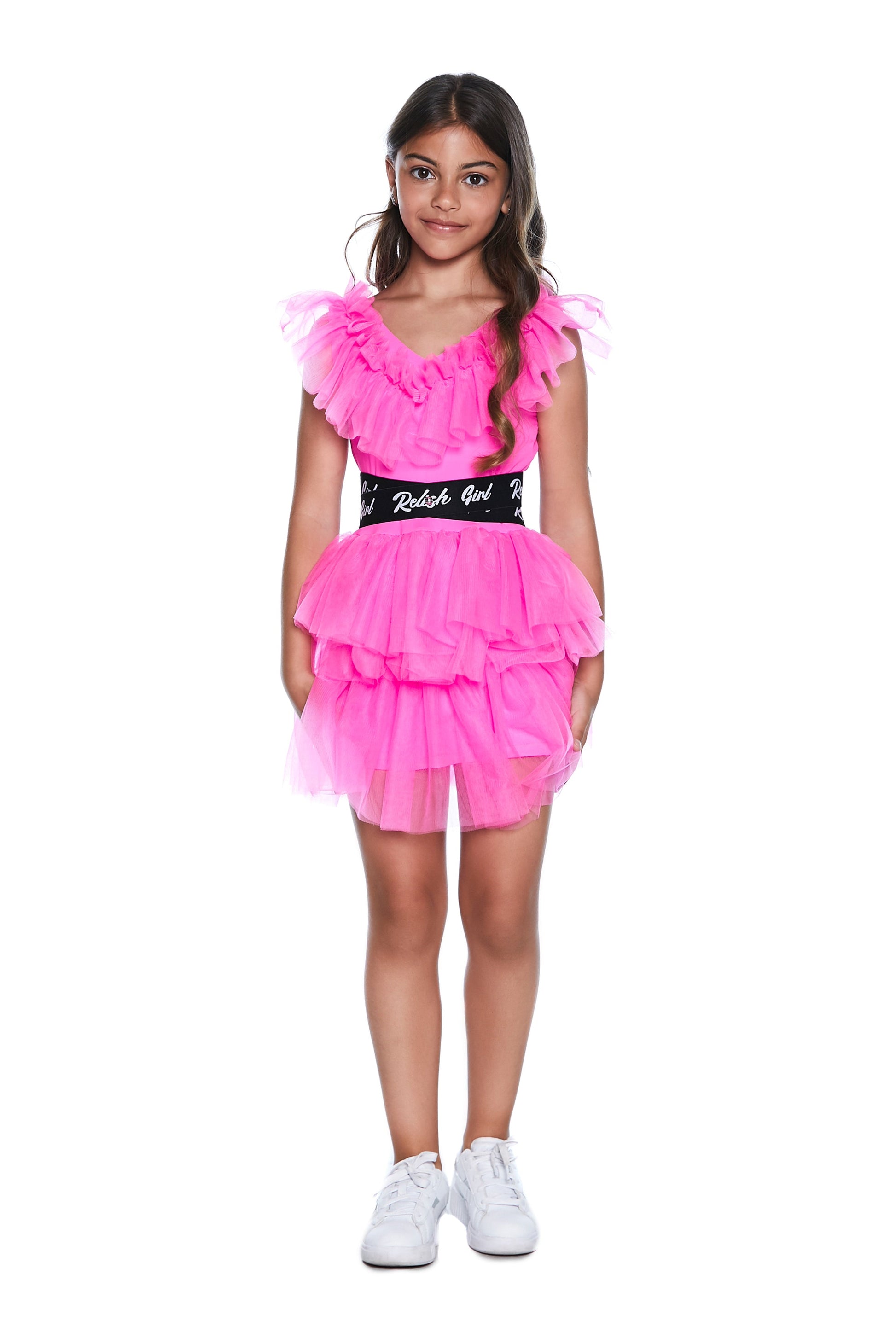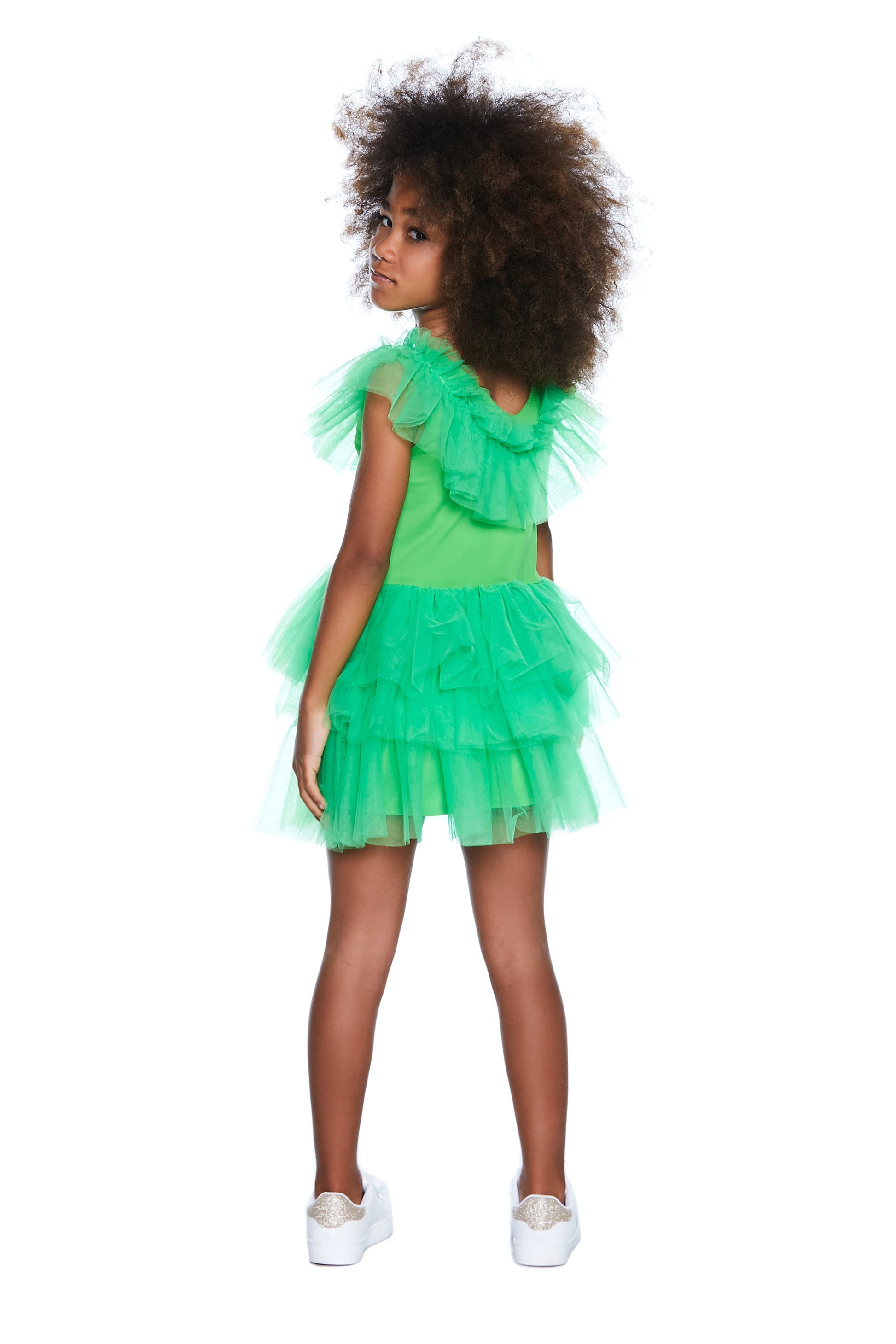 AMAMI短裙双V领半袖薄纱荷叶边加荷叶边