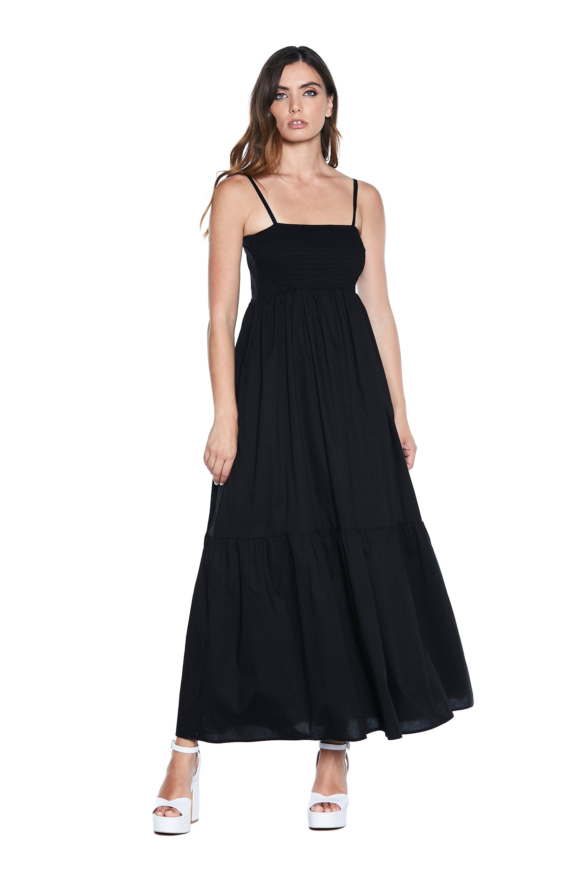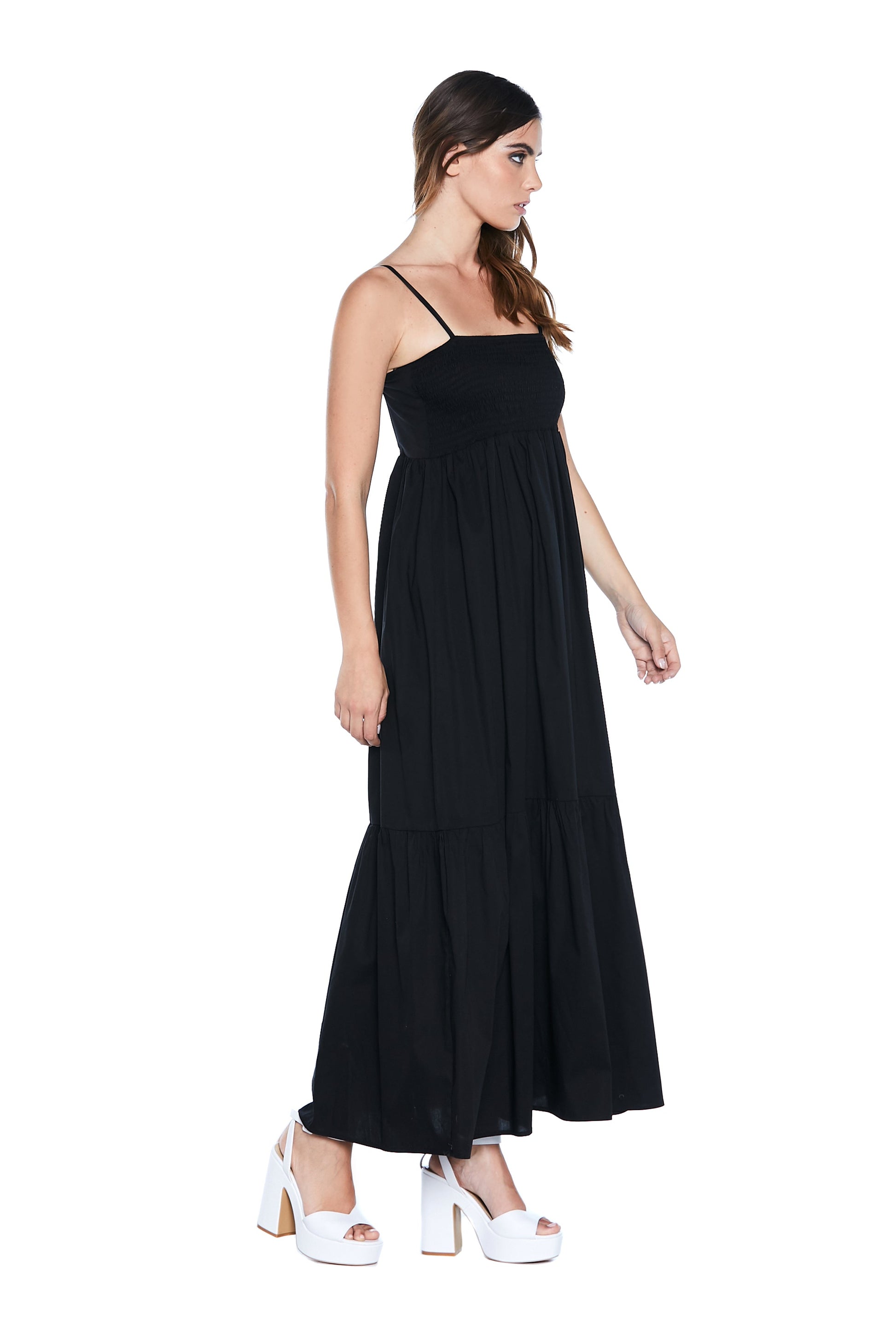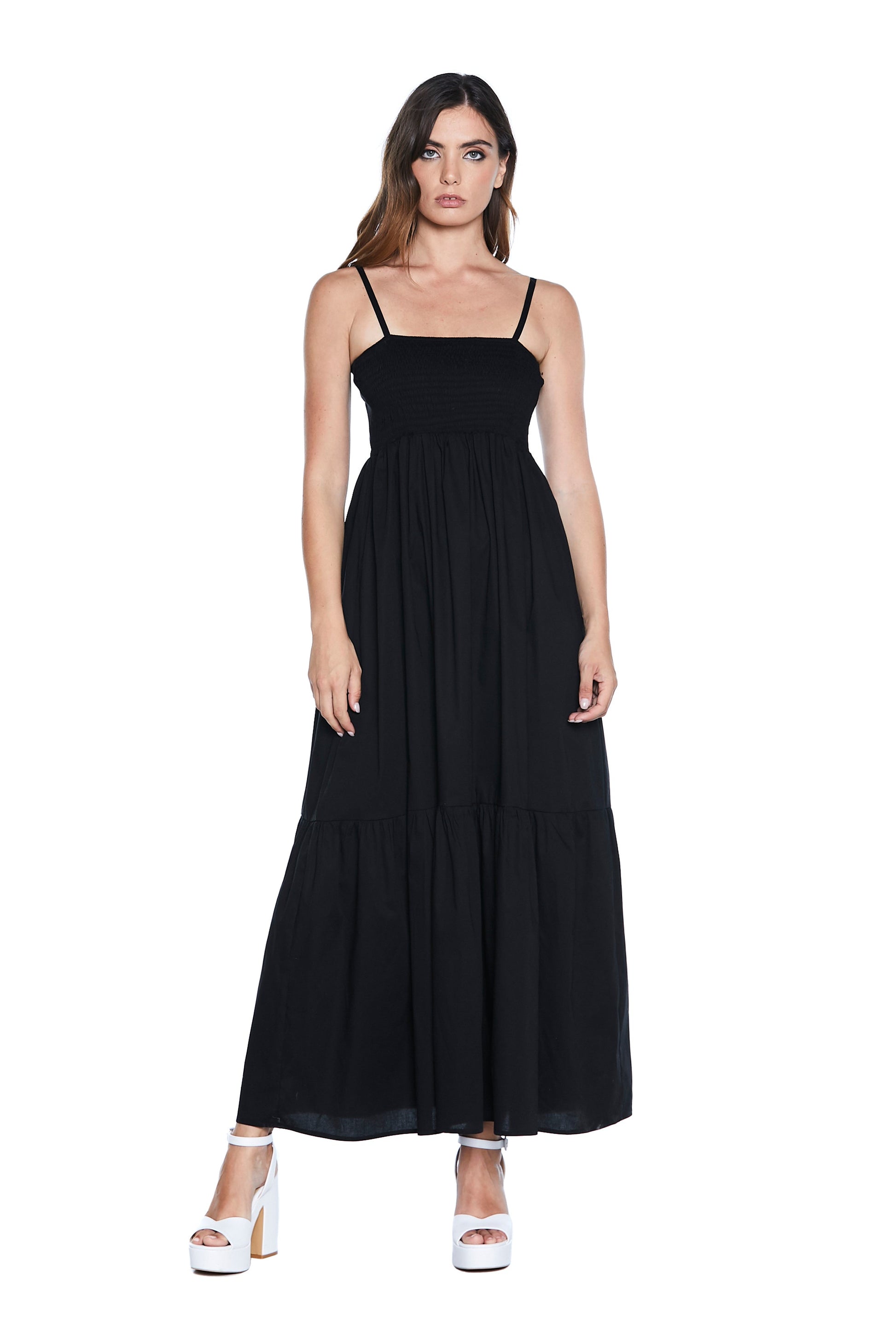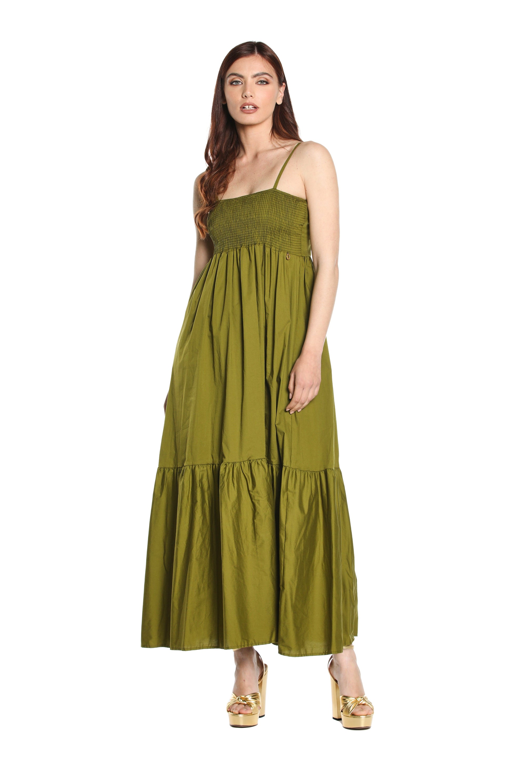 ANNIEB_A 长连衣裙 S/M 带背带加皱褶棉胸
