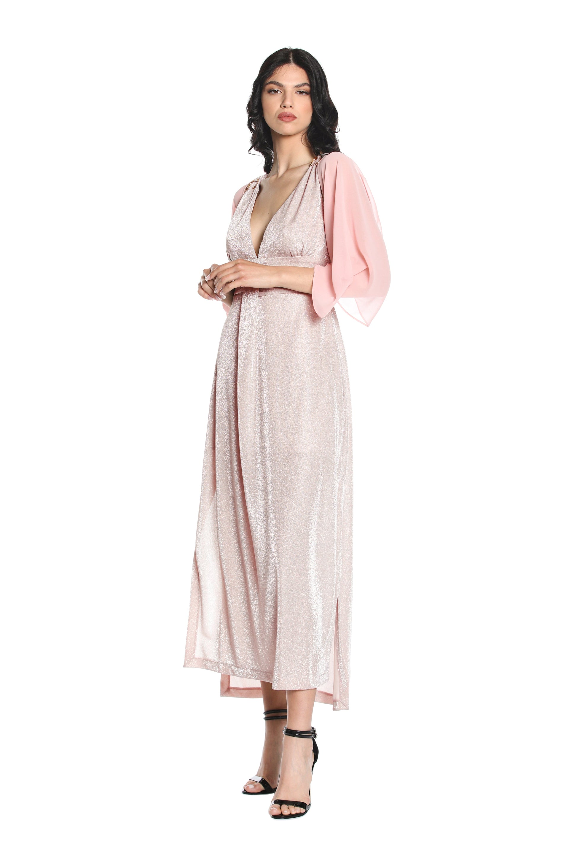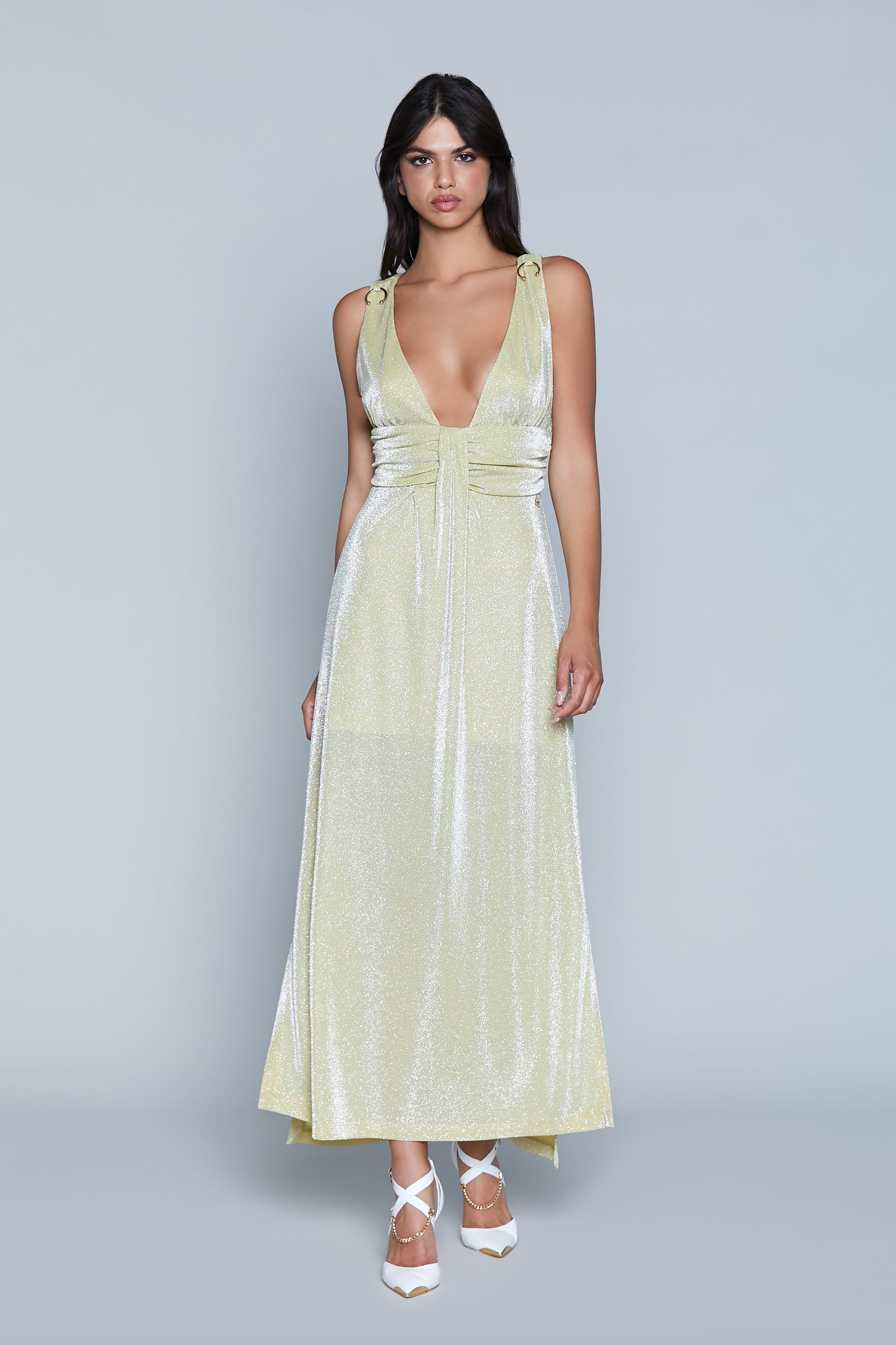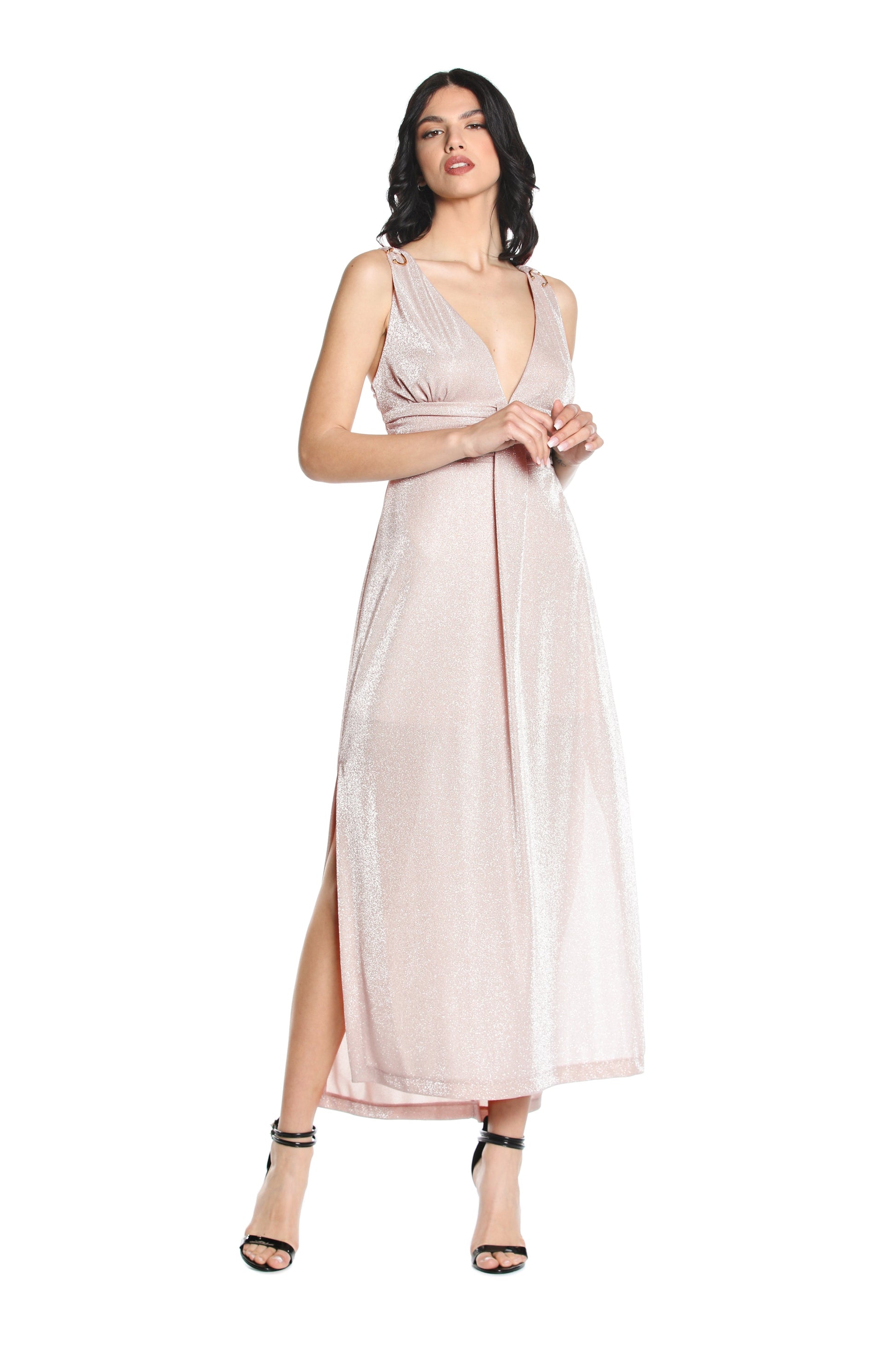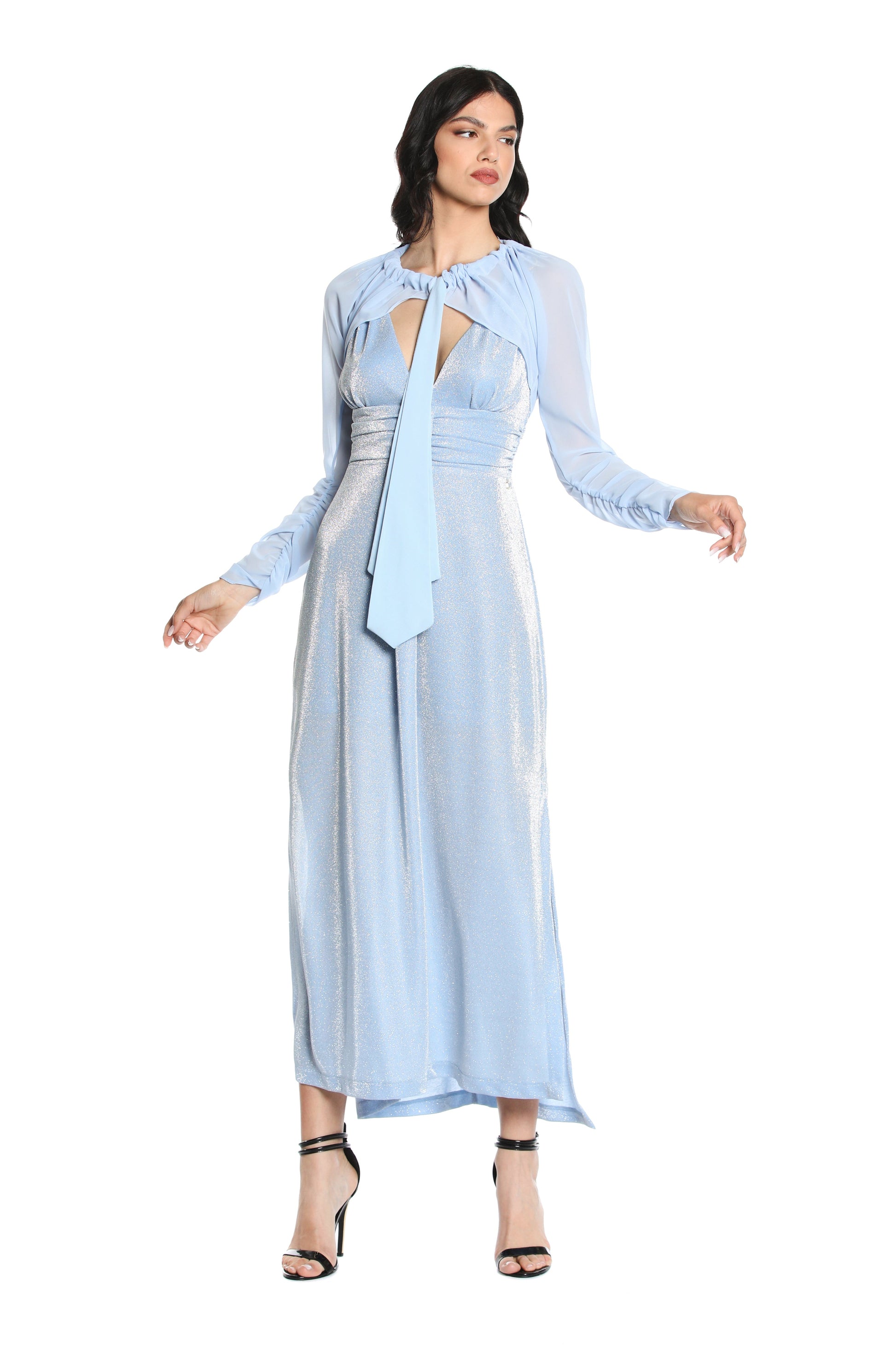 S/M 长 AURORA 连衣裙,带穿孔应用加褶皱加卢勒克斯开衩