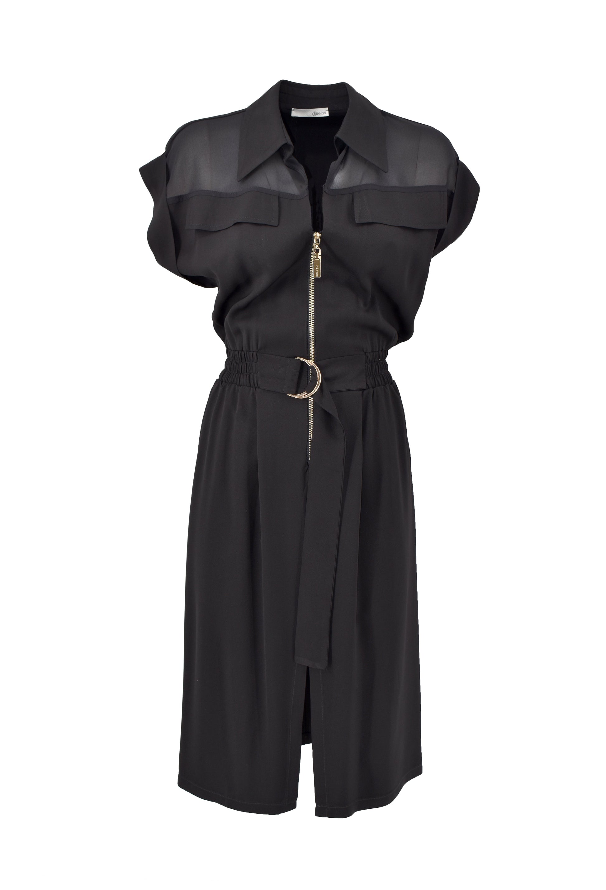 半袖 CLOUD 中长连衣裙,翻边加翻盖加拉链加松紧带双开衩