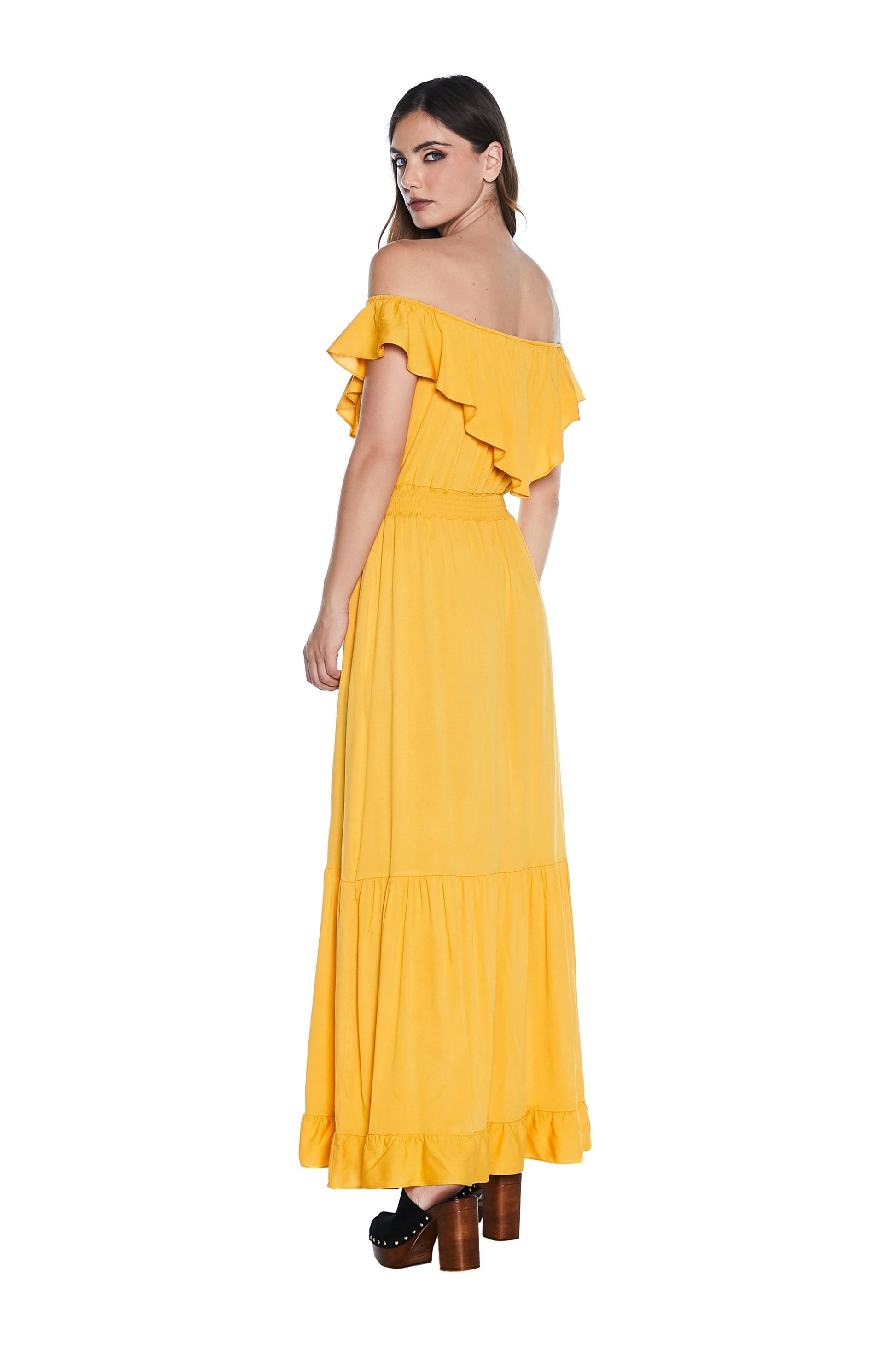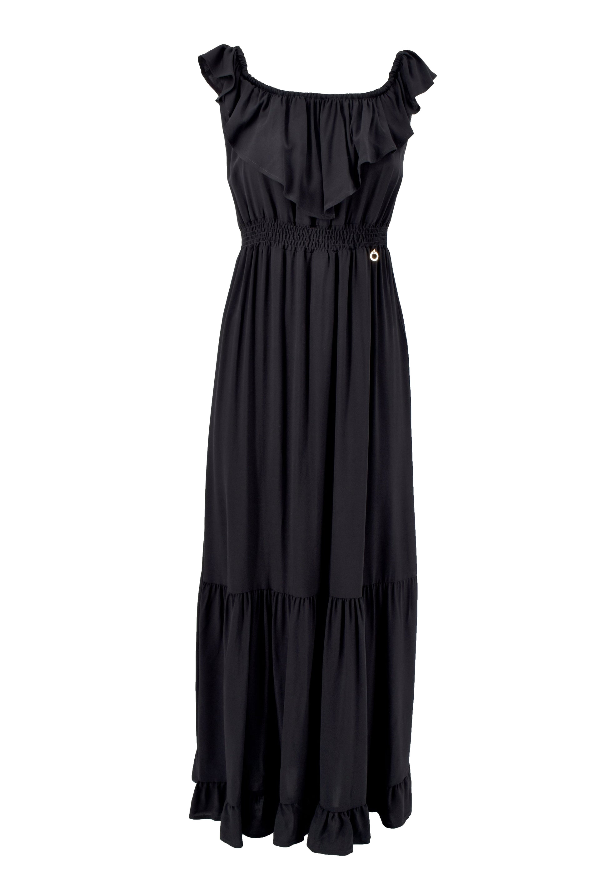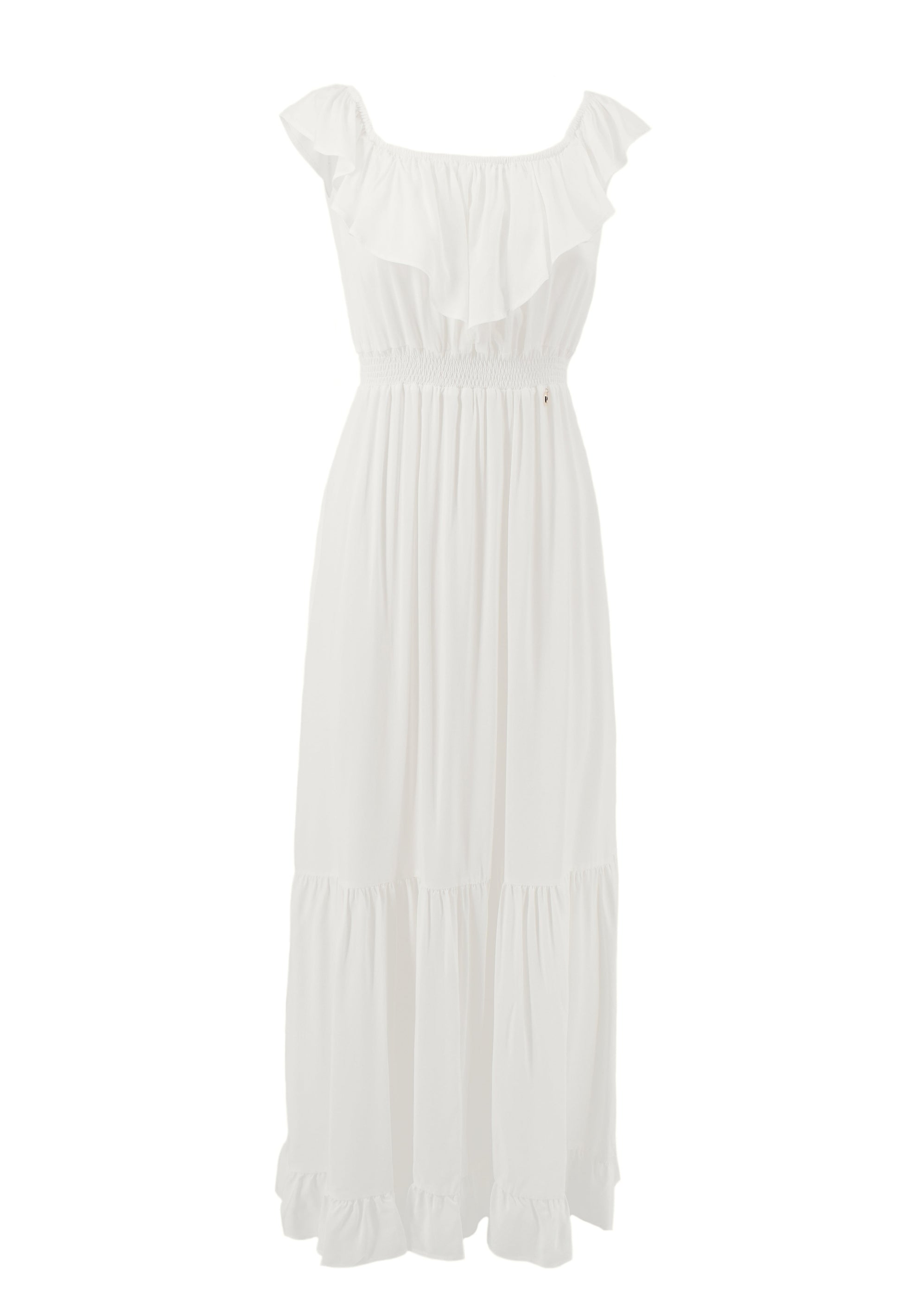 MENOTAX 长半袖翻盖连衣裙,带荷叶边加褶皱加 p.smock
