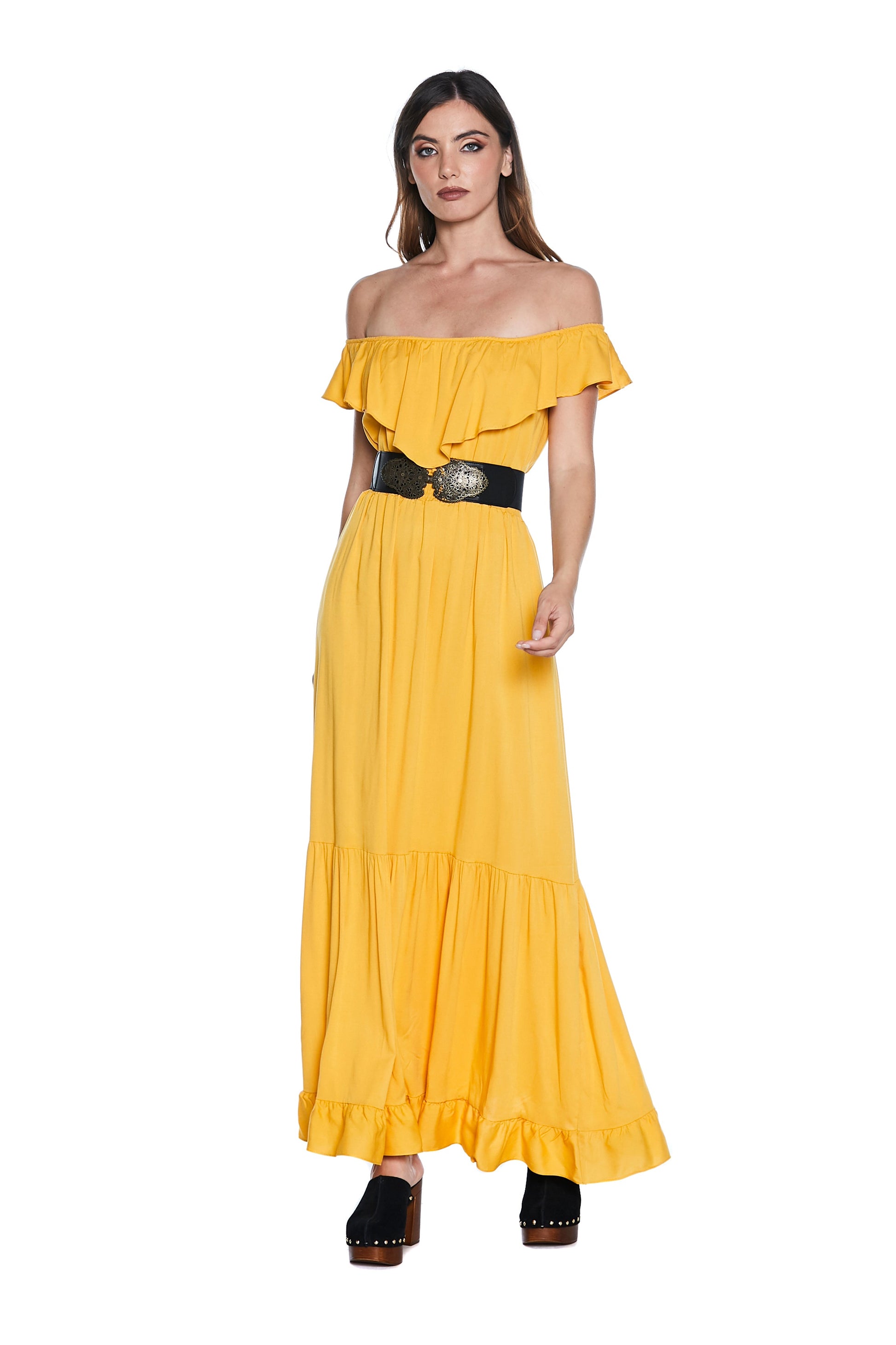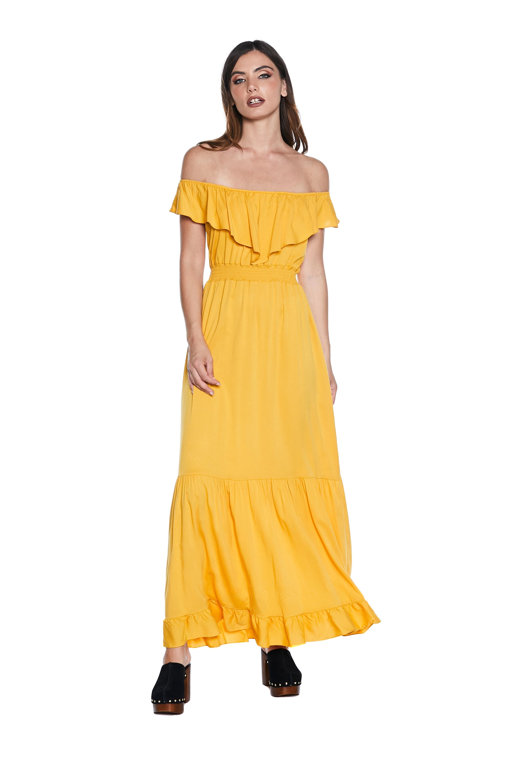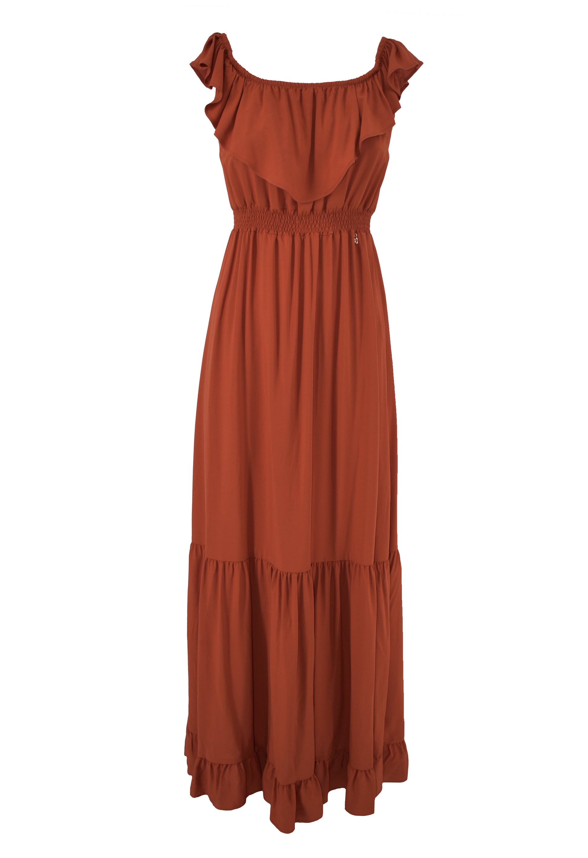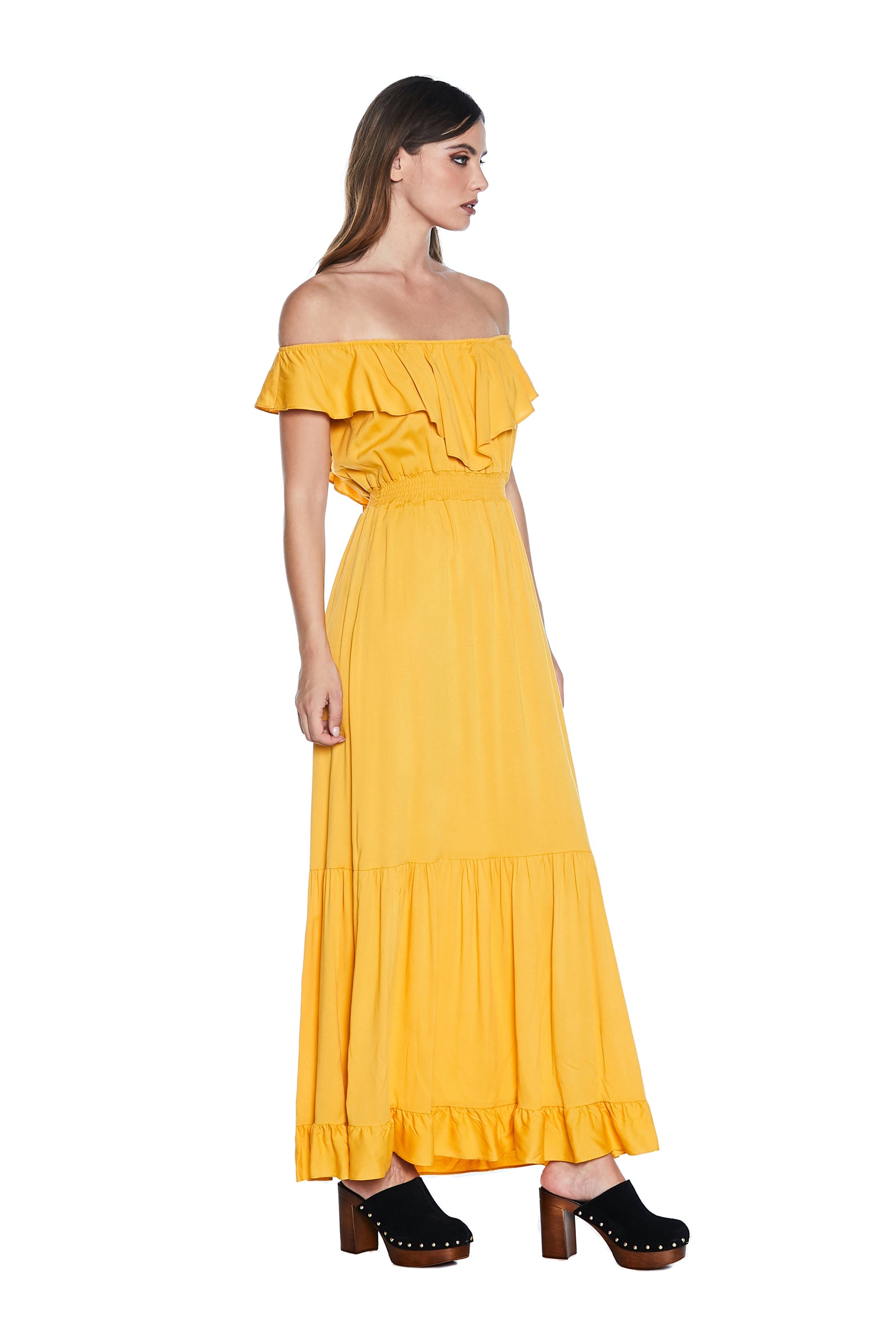 MENOTAX 长半袖翻盖连衣裙,带荷叶边加褶皱加 p.smock