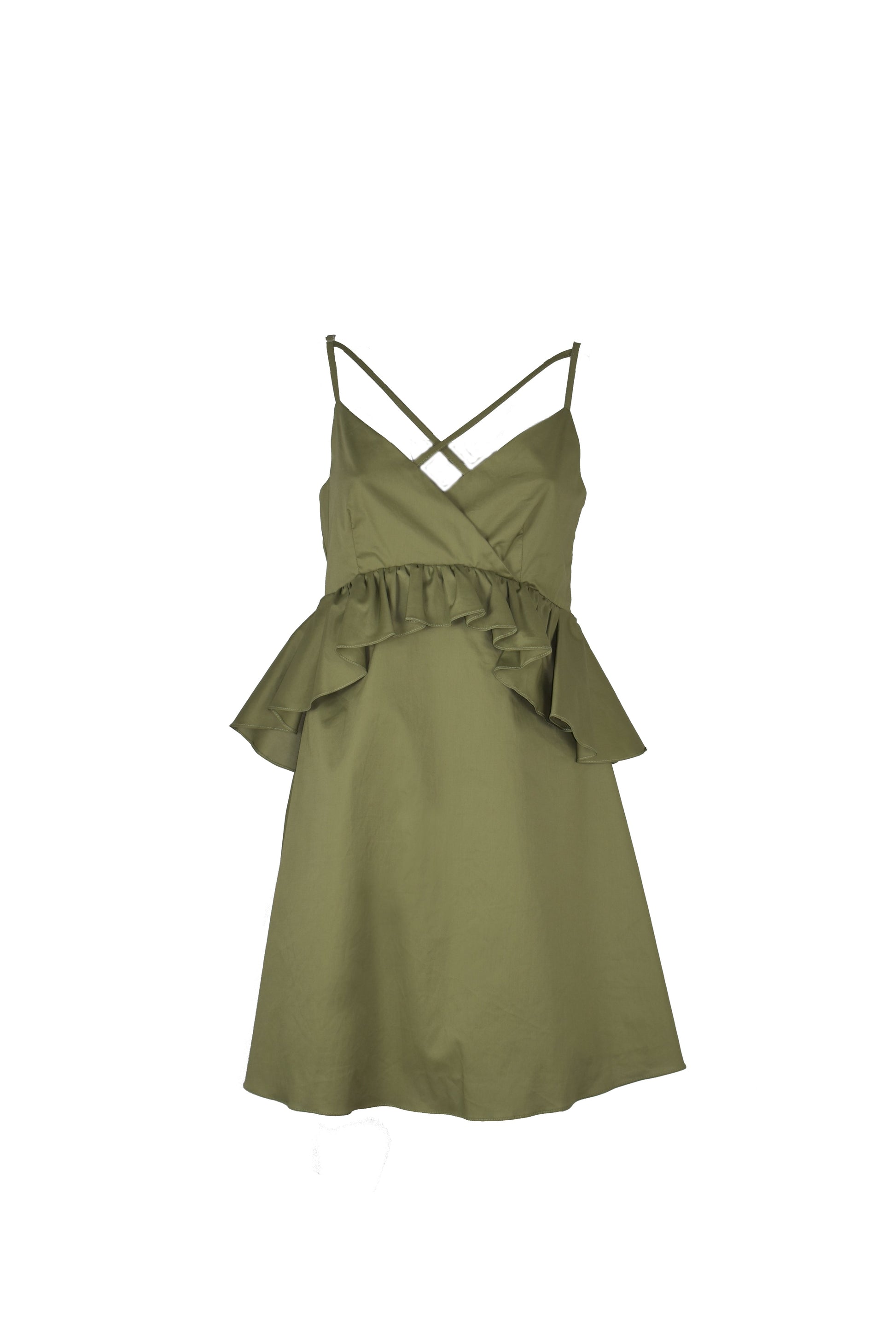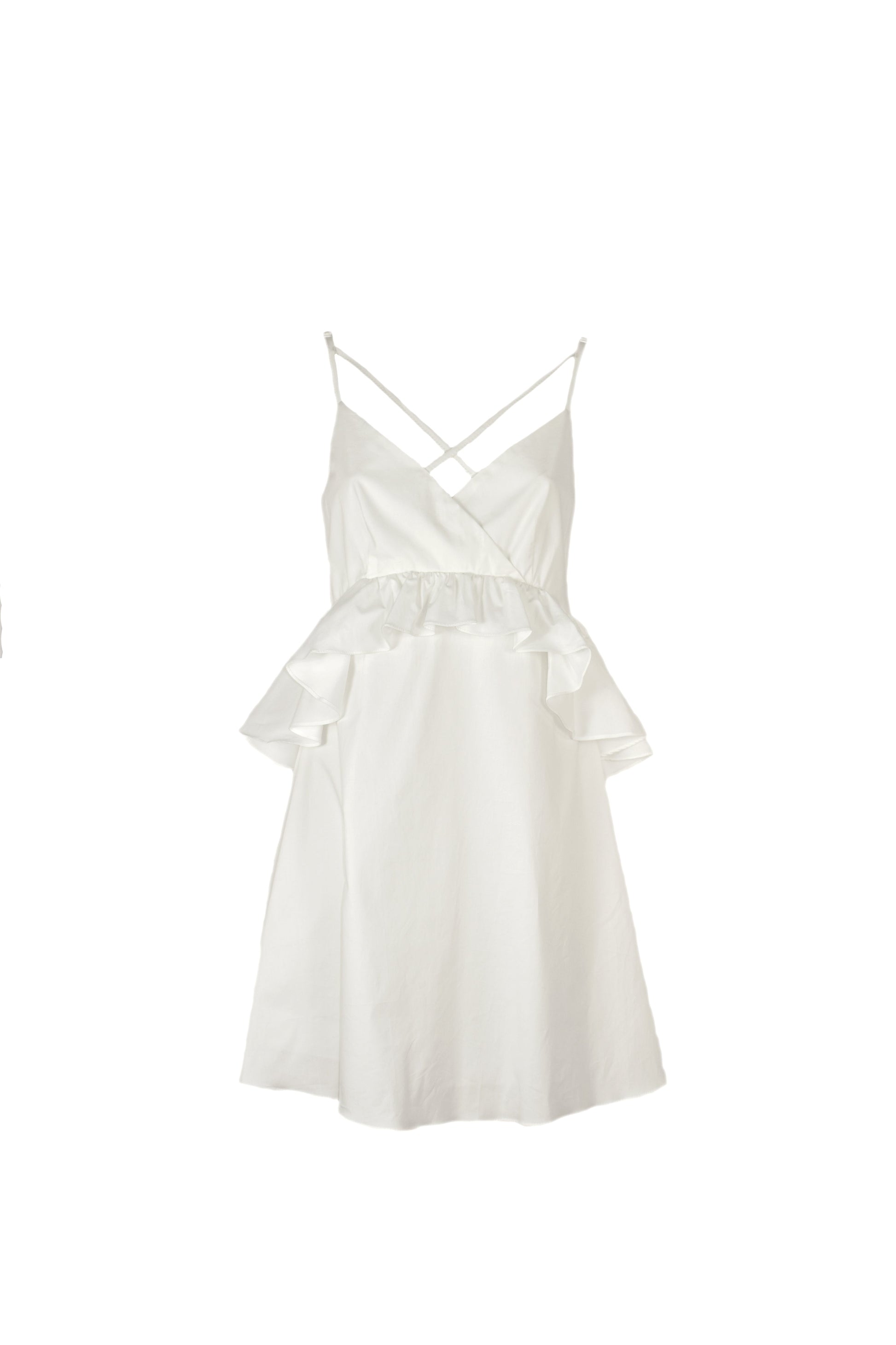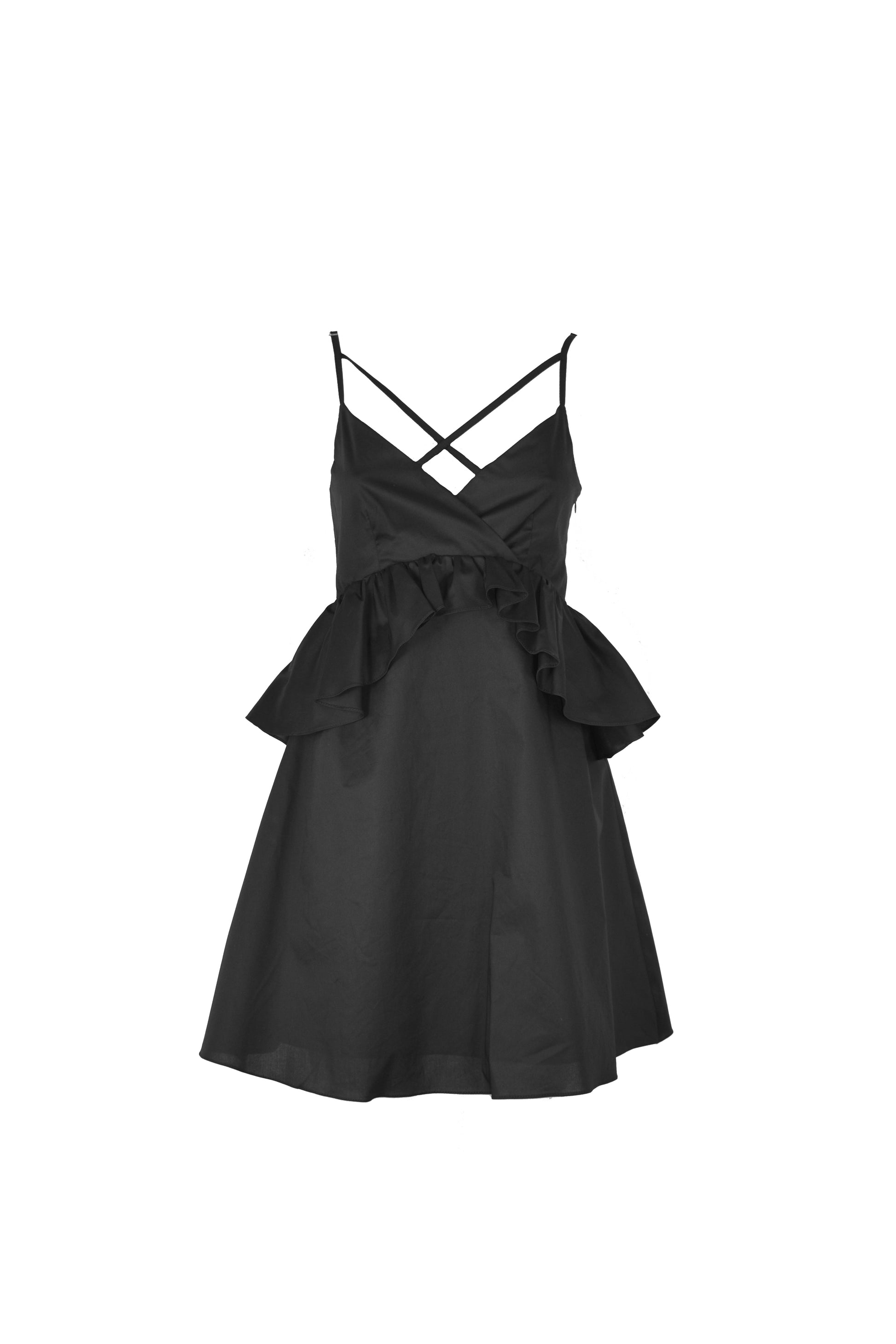 SECONDY-BIS 短款无袖连衣裙,交叉肩带府绸腰部荷叶边