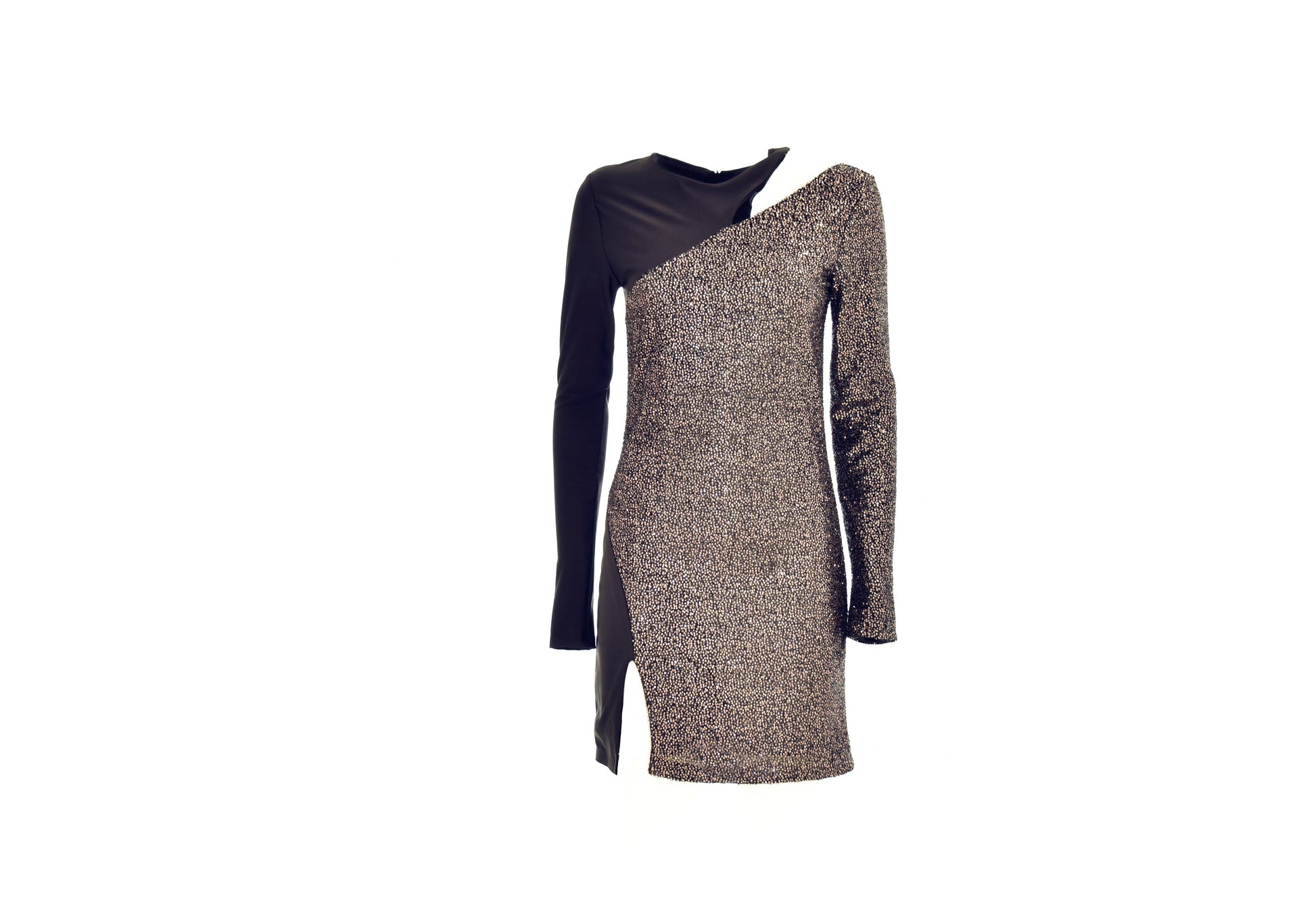 SEDFA 露肩加微亮片短款长袖连衣裙
