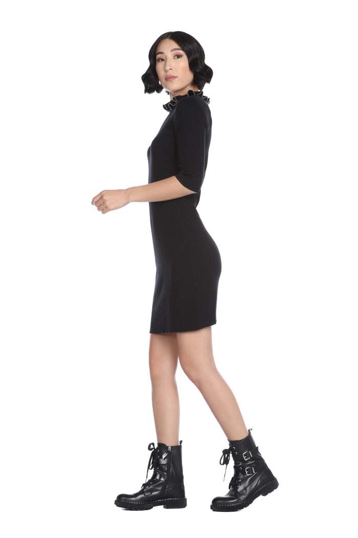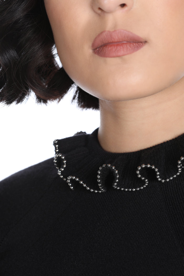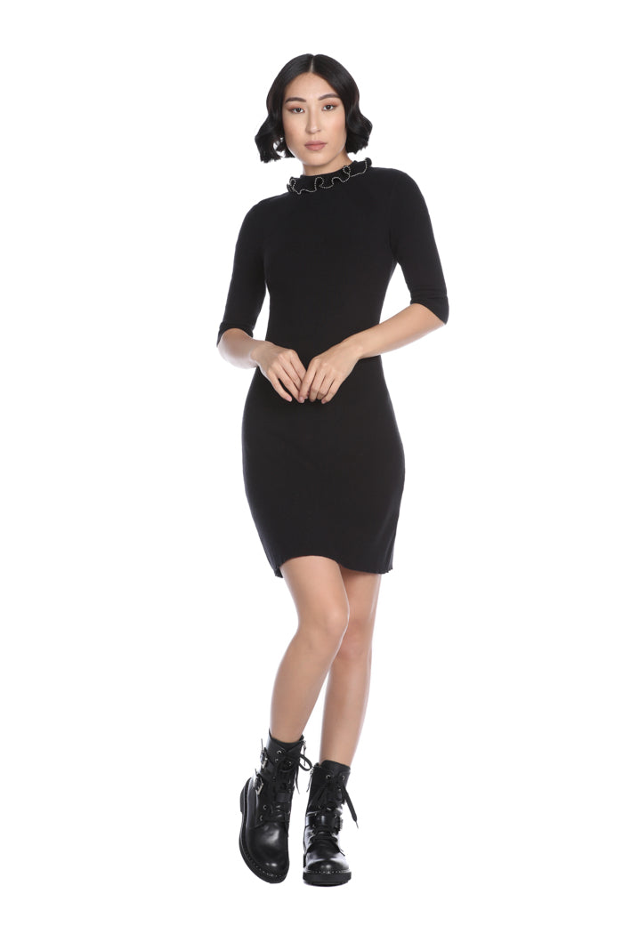 SPOSYN 短款连衣裙 m.3/4,带褶皱领和珠饰