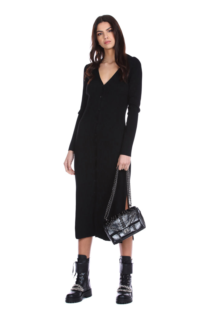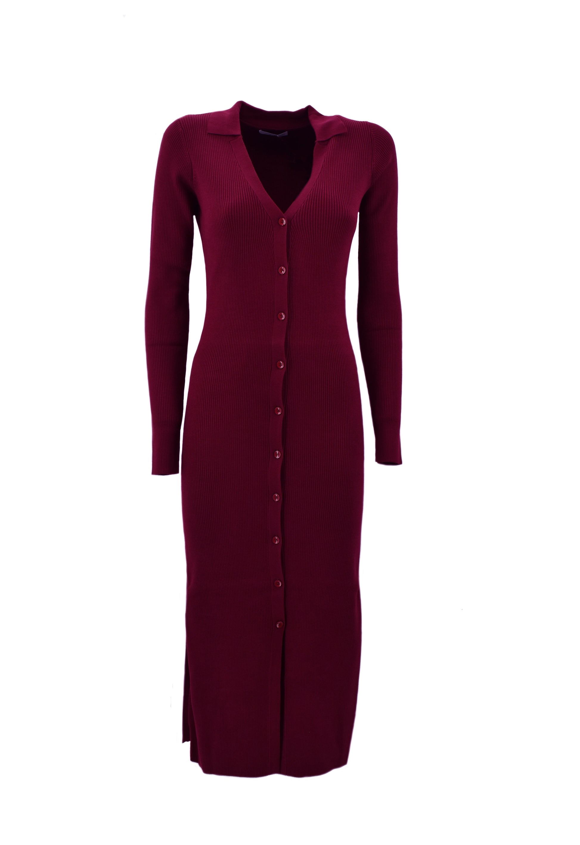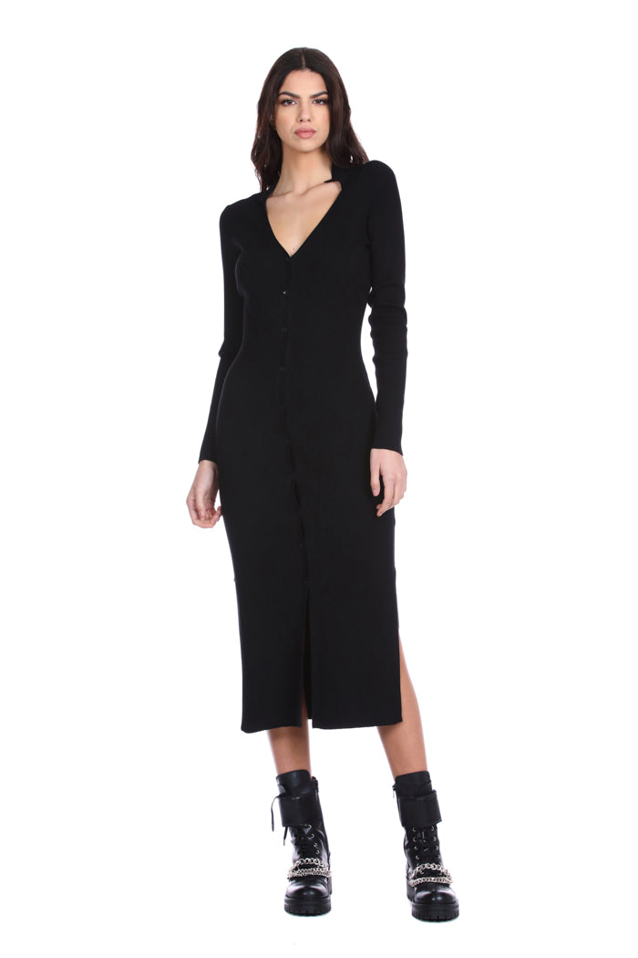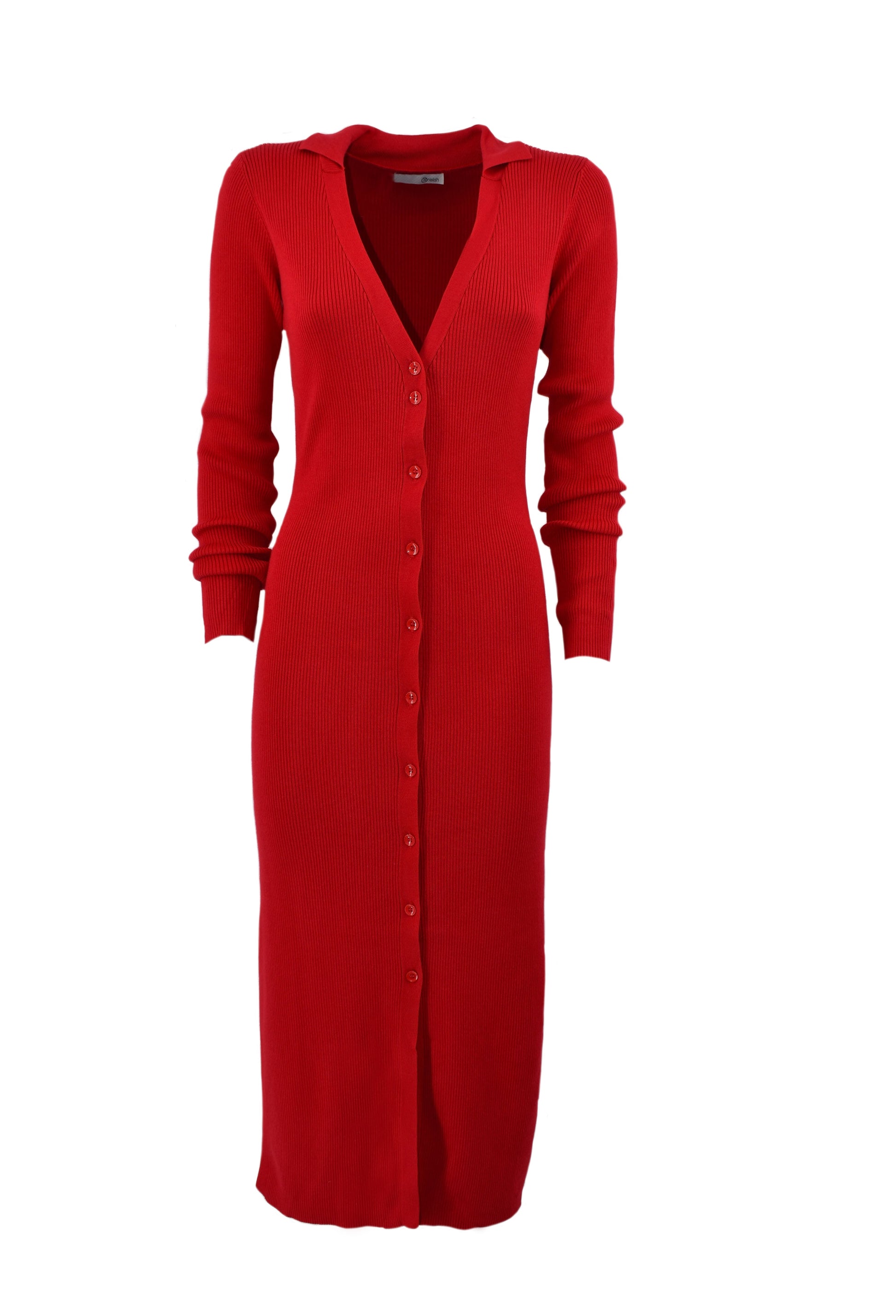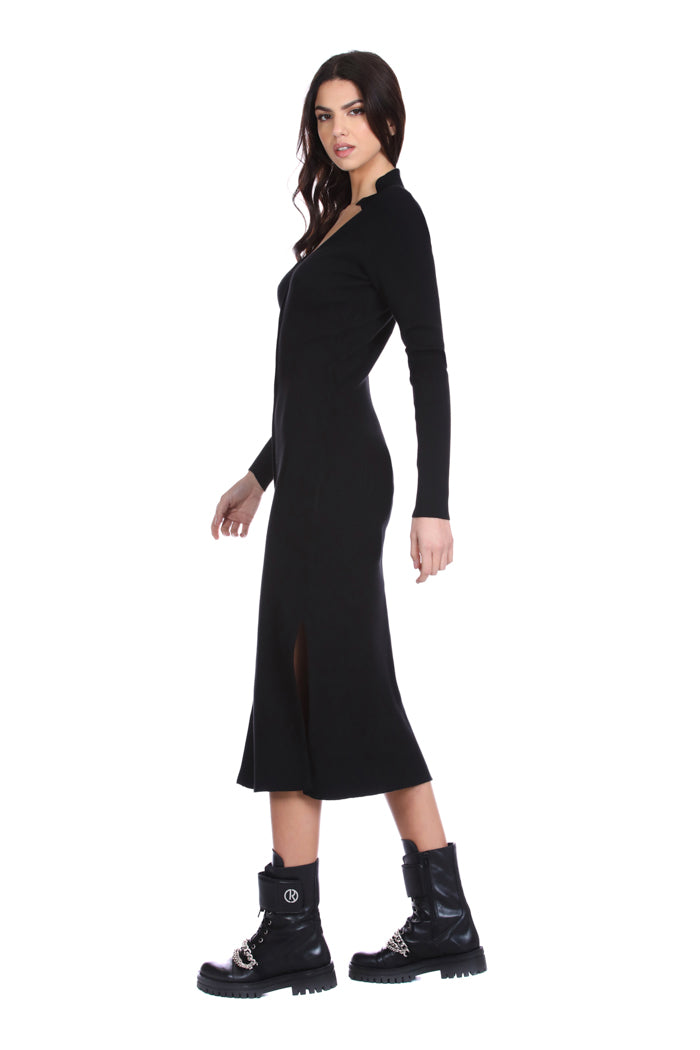 连衣裙 ON 长袖 V 领,罗纹开叉领