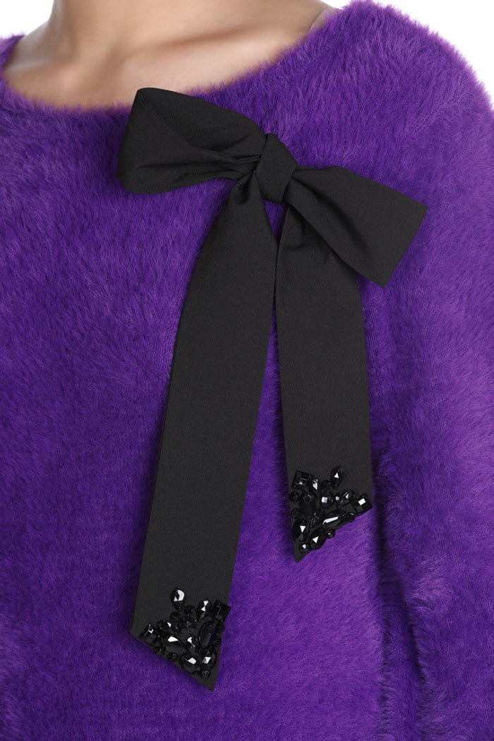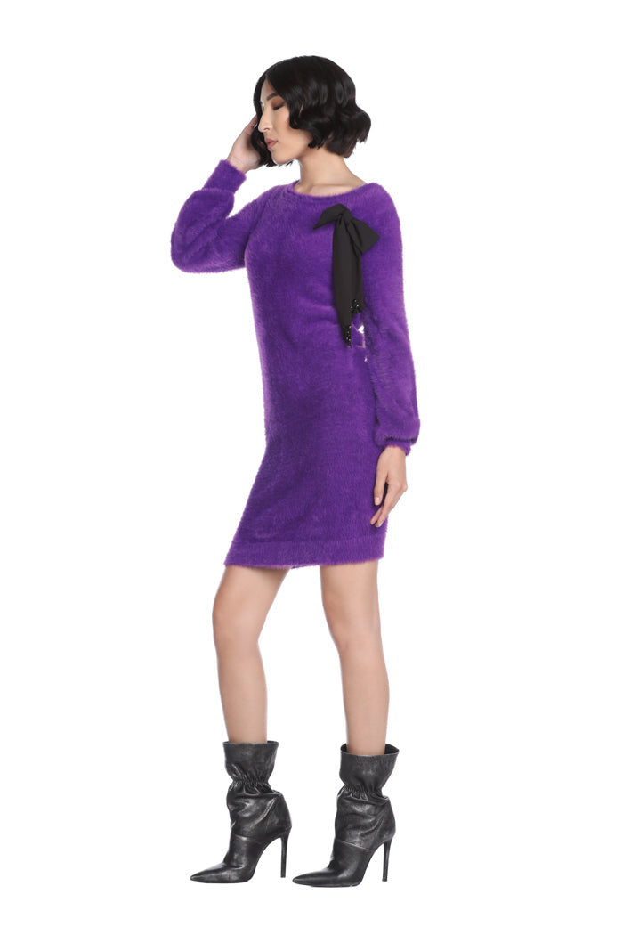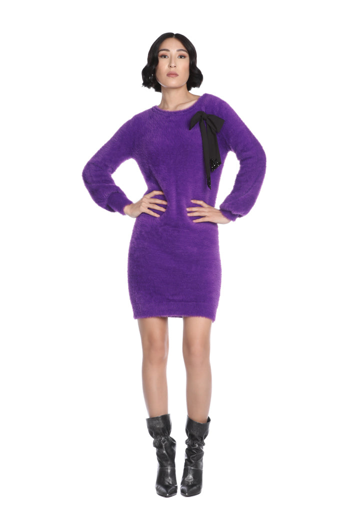 TEFEA 短款长袖连衣裙,配以蝴蝶结胸针和水钻