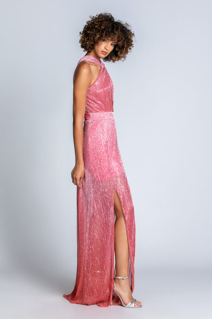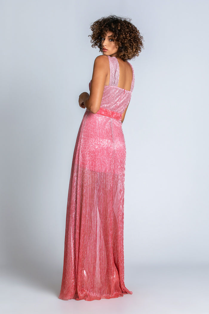 TOMORT 长款无袖连衣裙,交叉领口,下垂加阴影卢勒克斯开衩