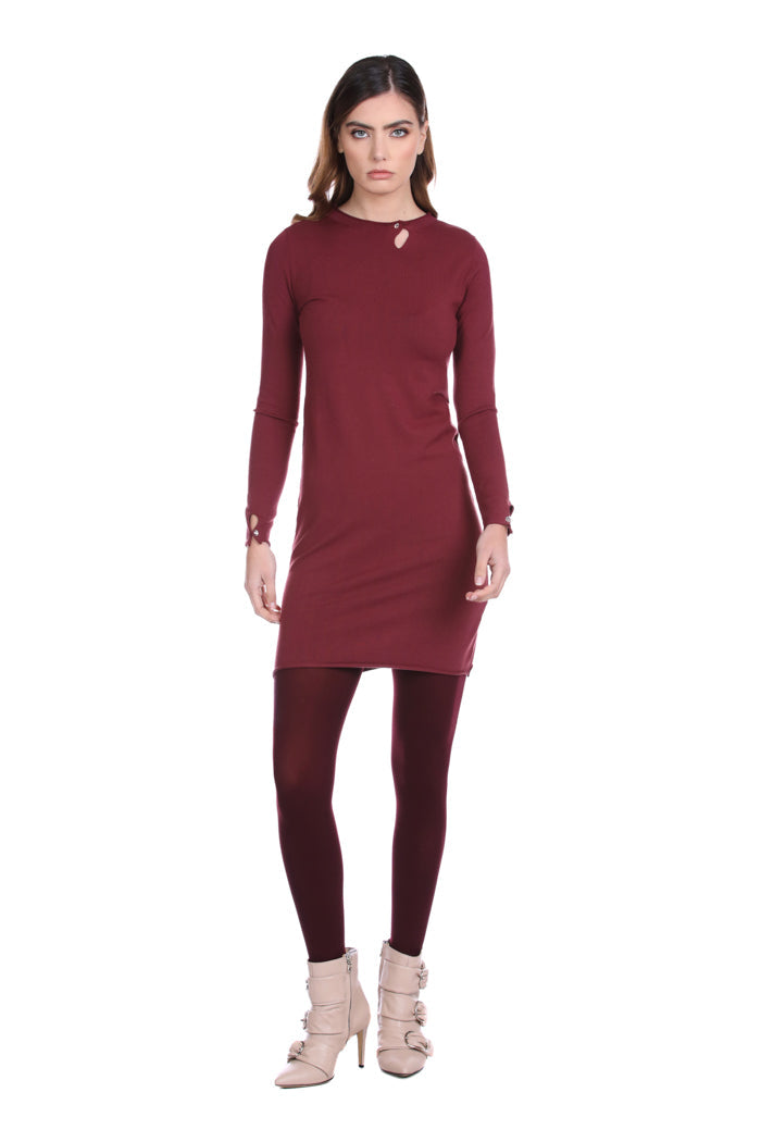 VULANSY 短款长袖连衣裙加领口配珠宝纽扣