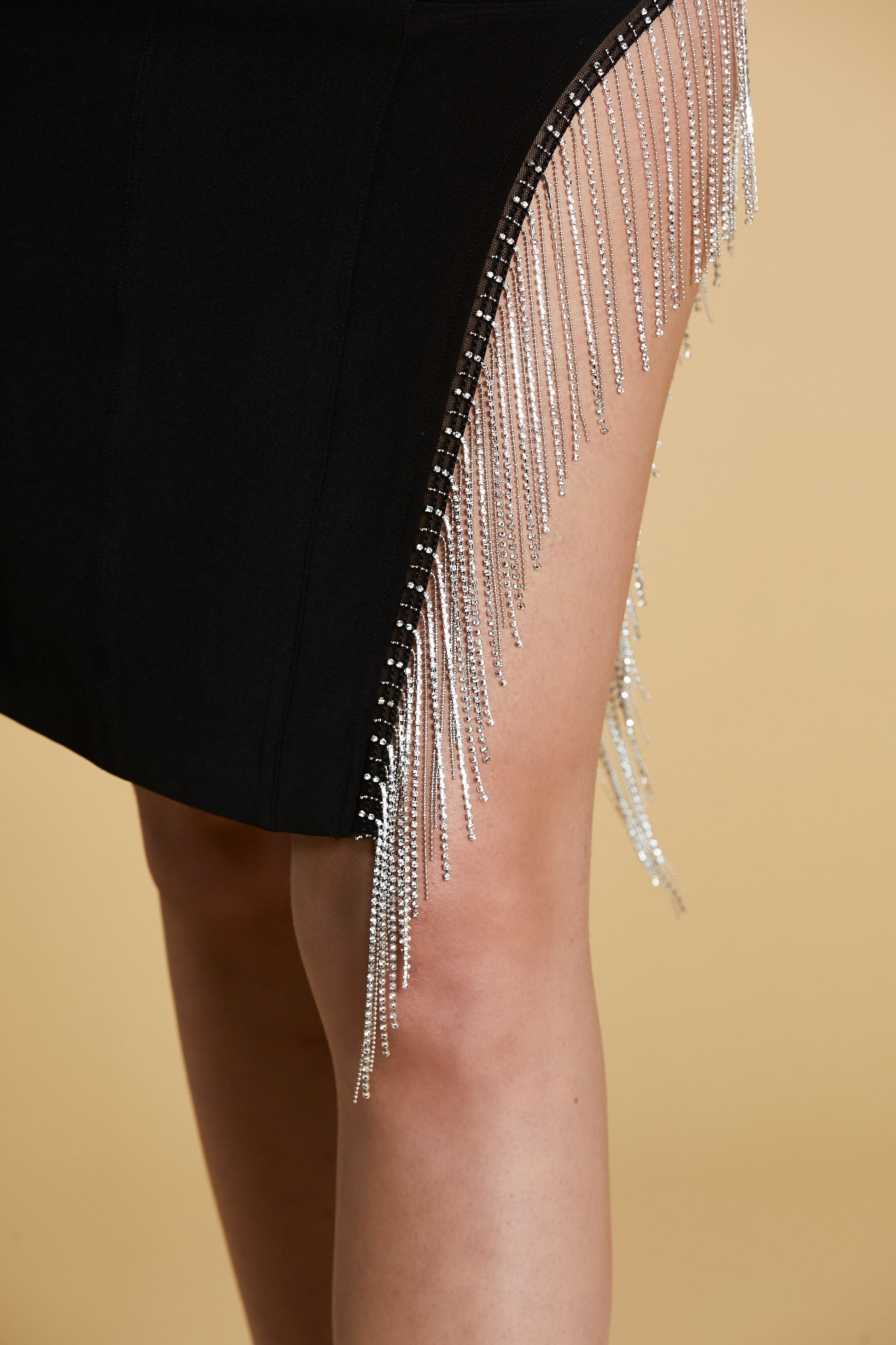 WIDOWI 短袖无袖连衣裙,心形领口开衩,带链条和水钻的贴花