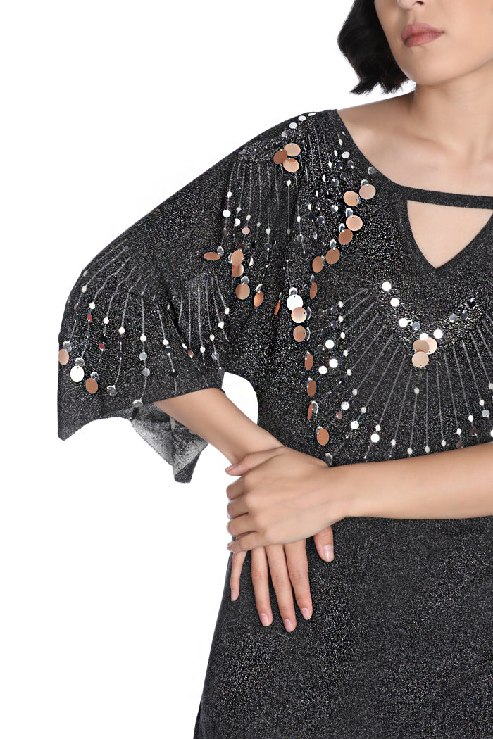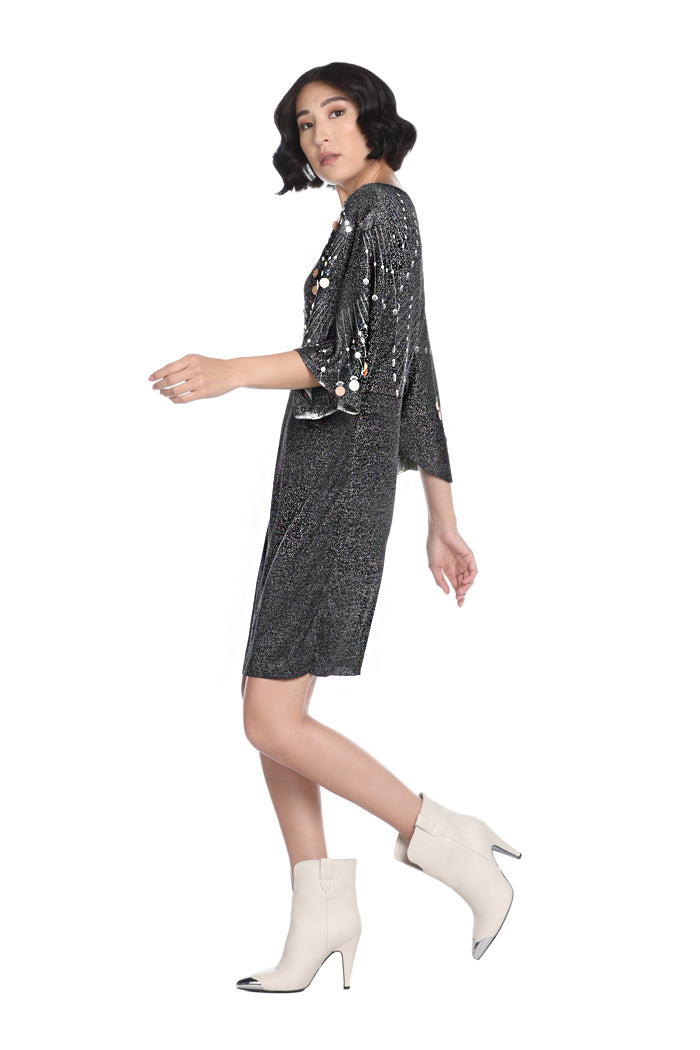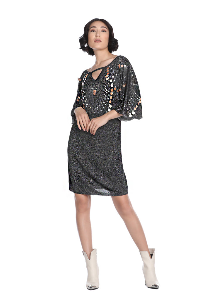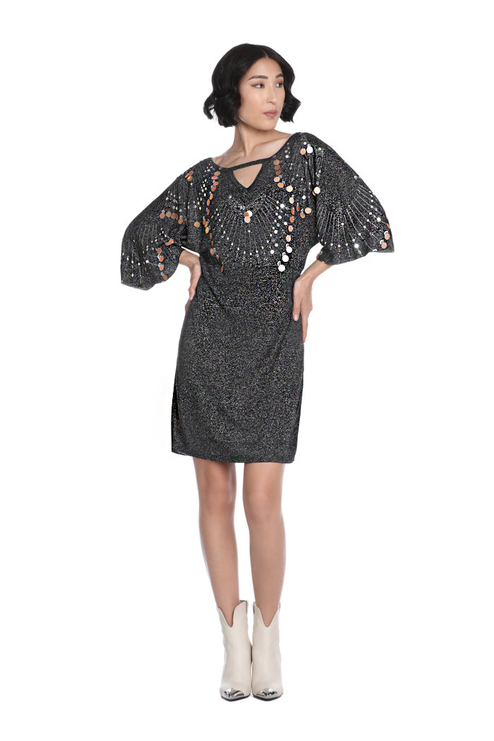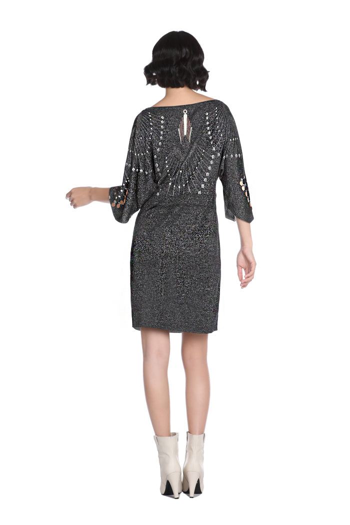 WORMTAIL 短款连衣裙 3/4 米宽蝙蝠领饰有亮片应用