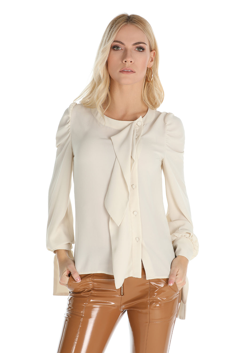 ALTOMARE 泡泡袖长袖女式衬衫,正面带侧扣