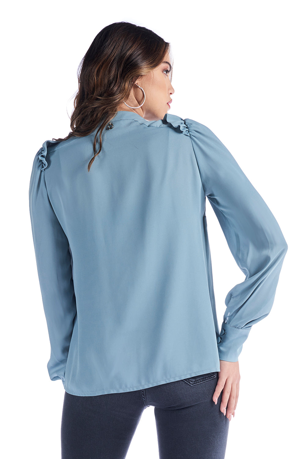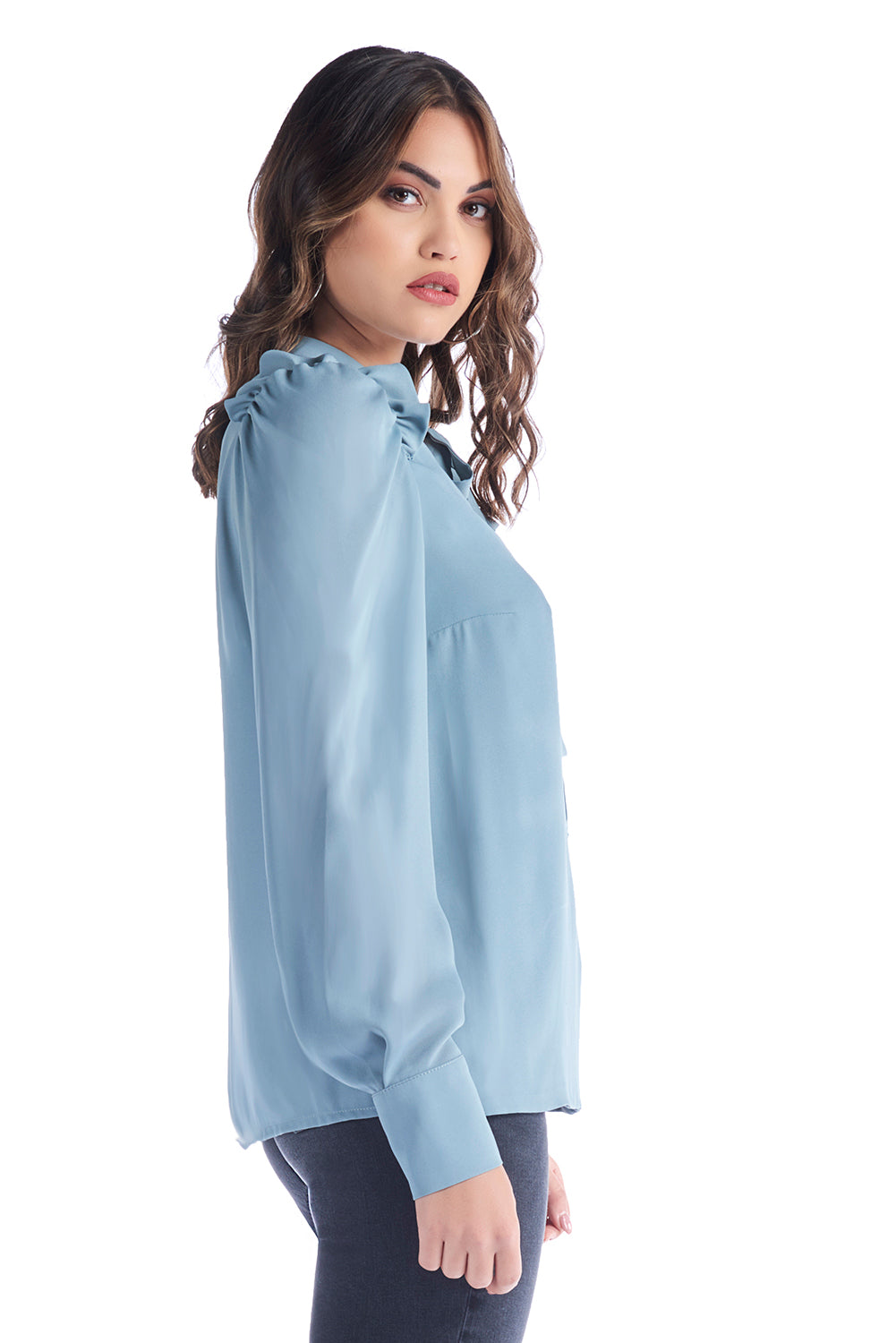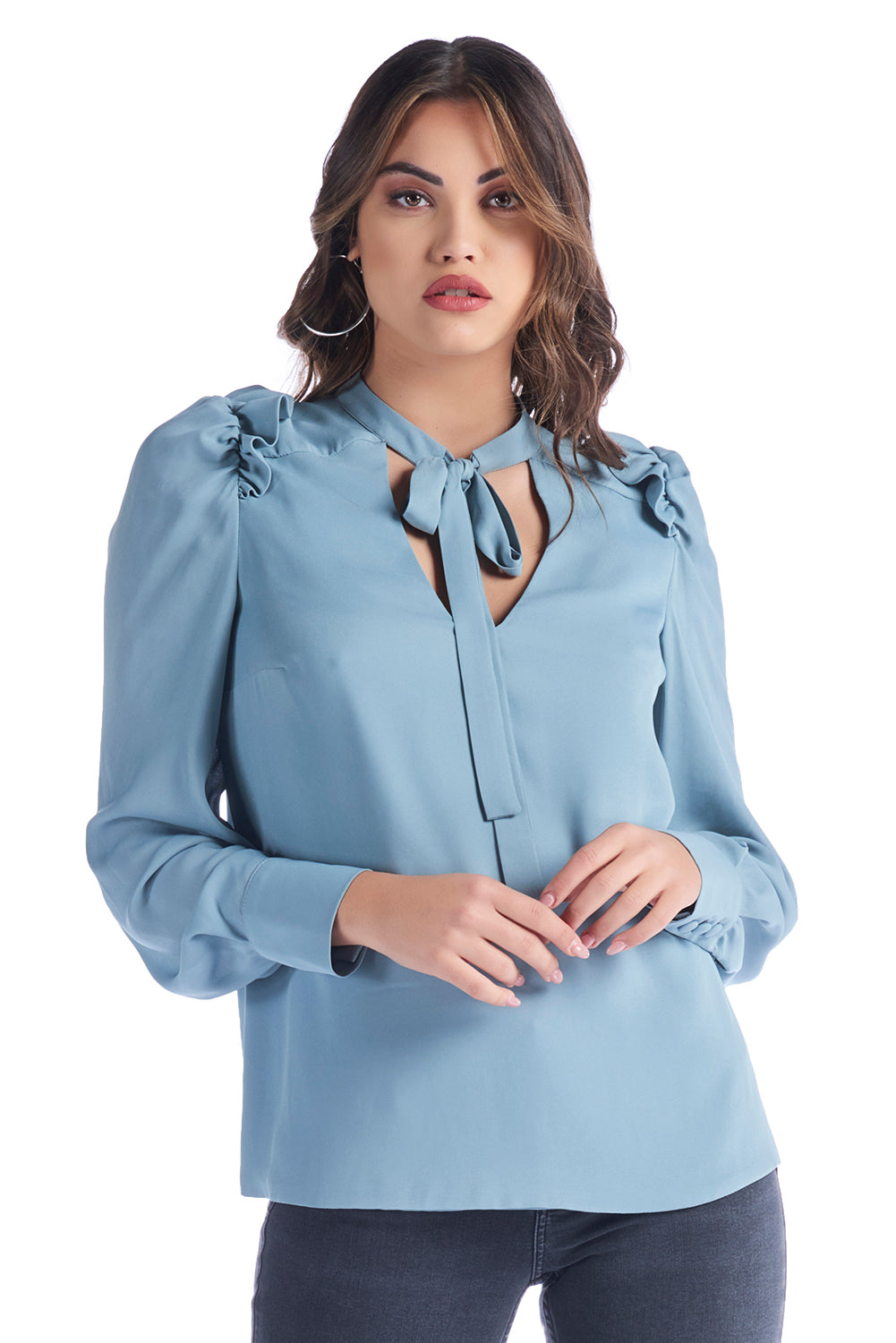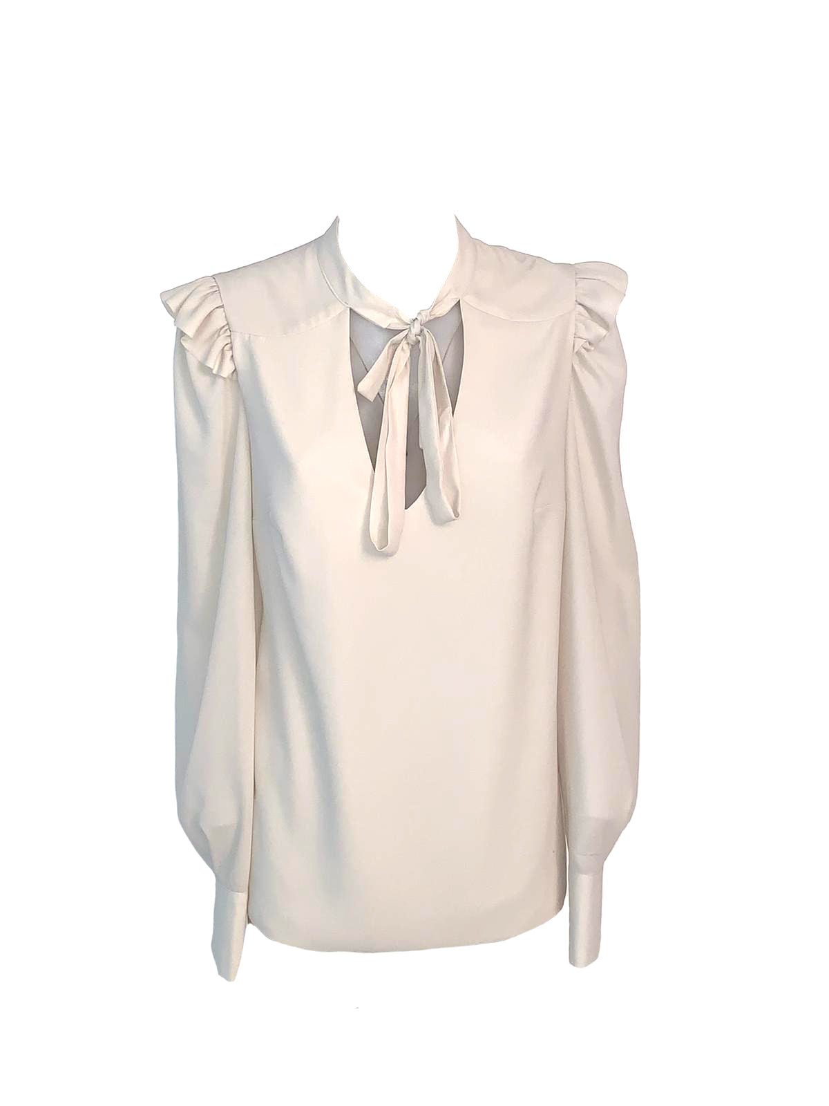 ARENA 长袖衬衫,领口和蝴蝶结,肩部有迷你翻盖