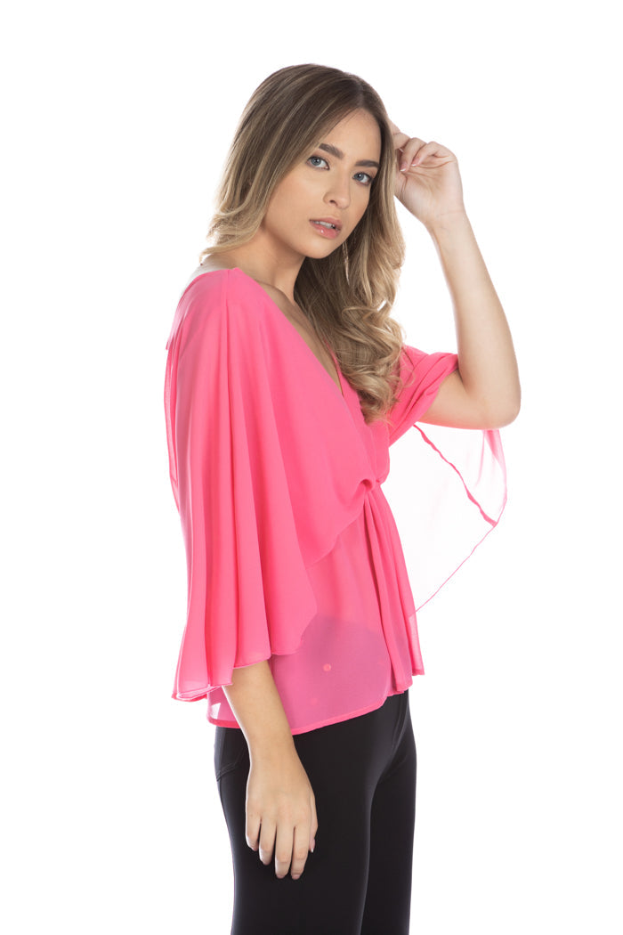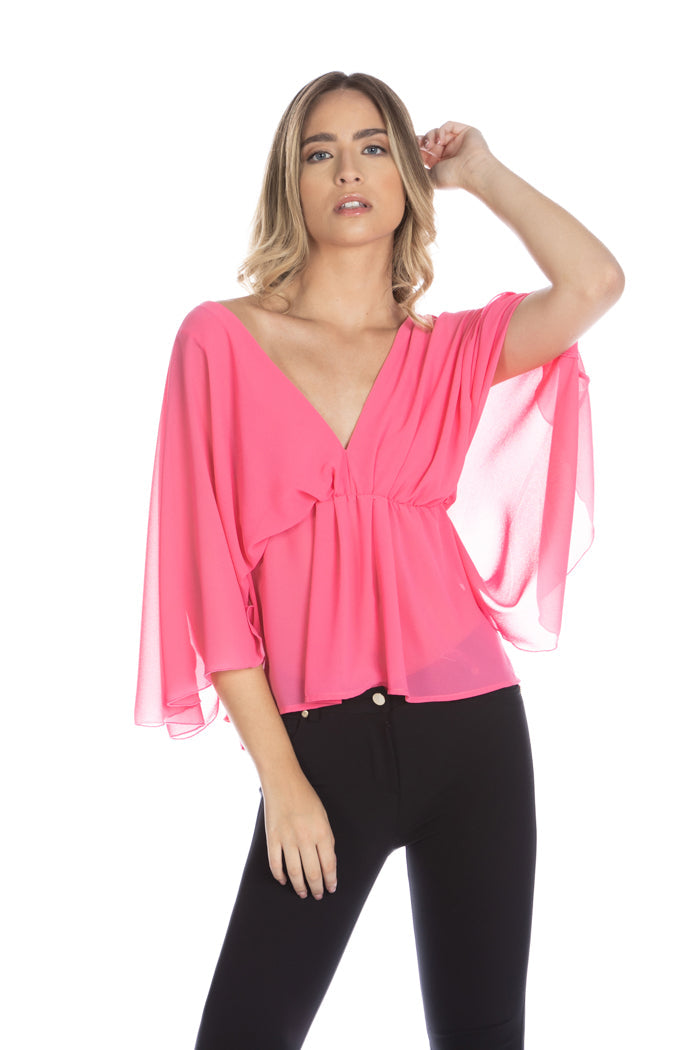 衬衫 MASHER 3/4 蝙蝠袖双 V 领口收腰