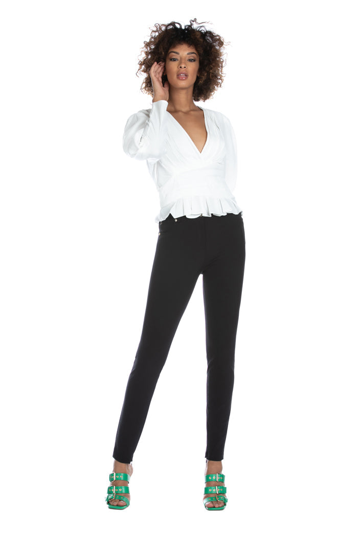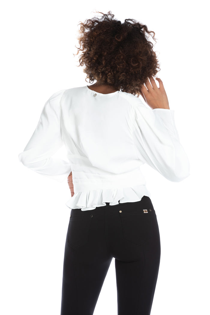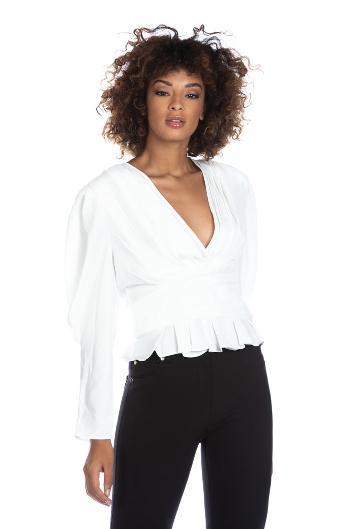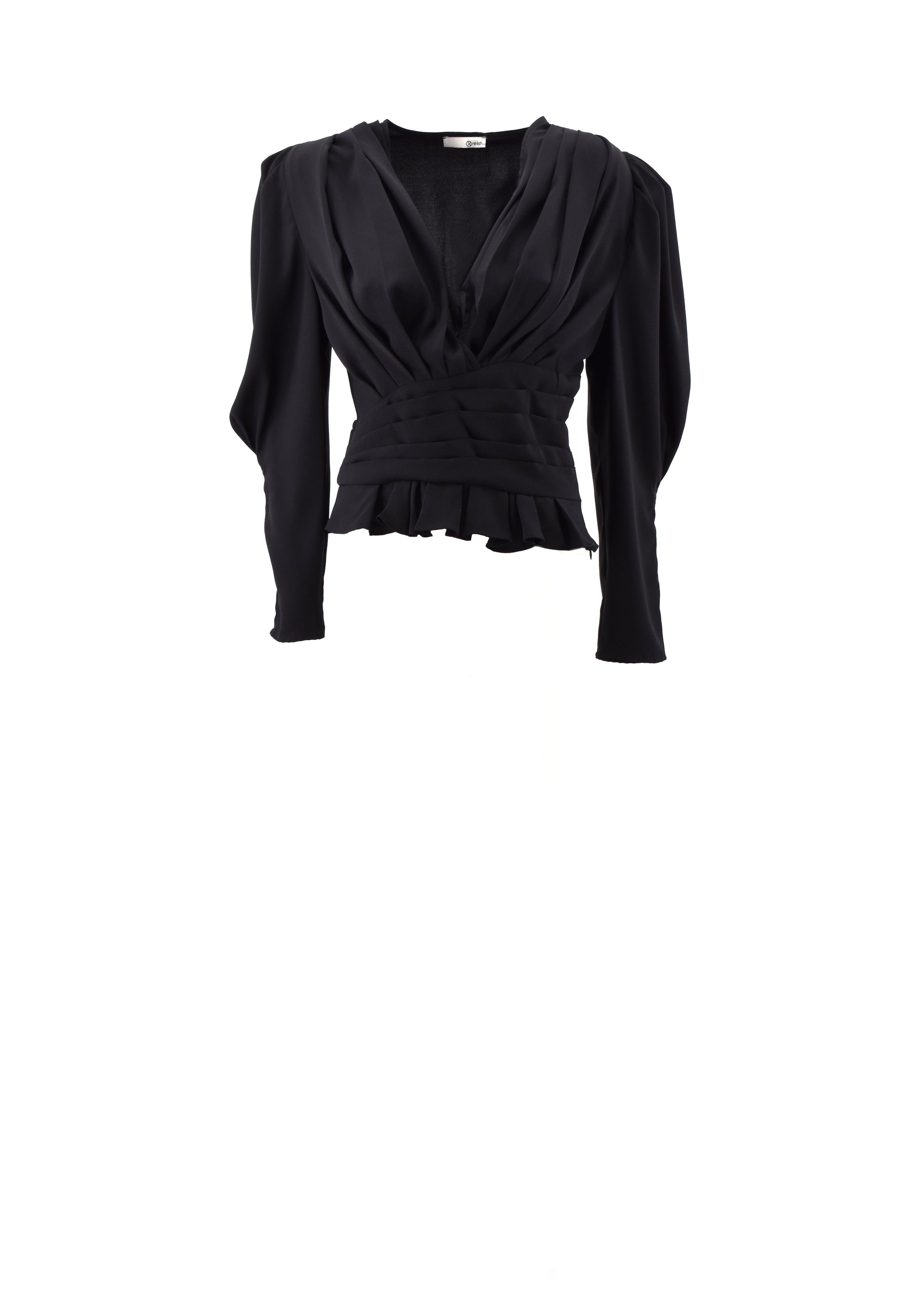 SHISPARE 长袖气球衬衫,带褶皱领口和褶皱带