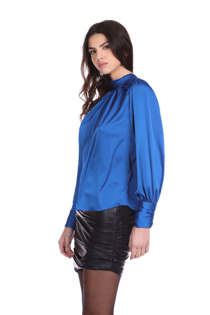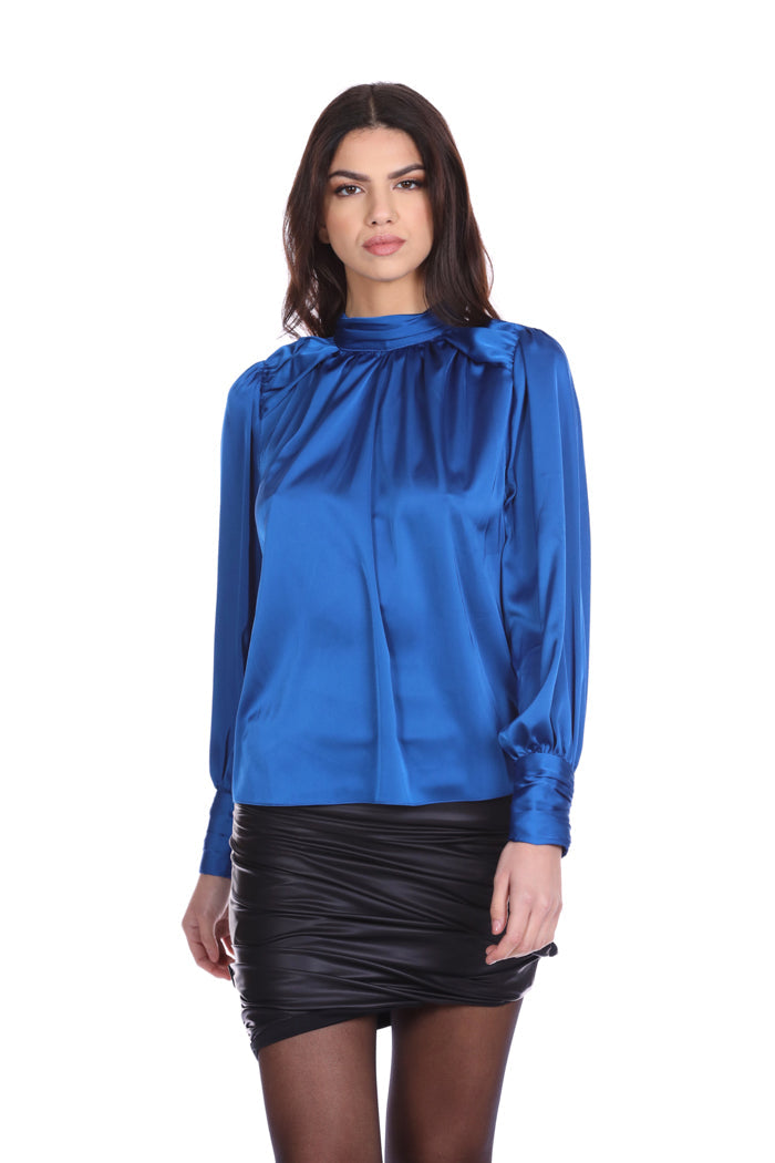 SOLYN 衬衫长袖衣领加袖口带褶皱加金色纽扣后背