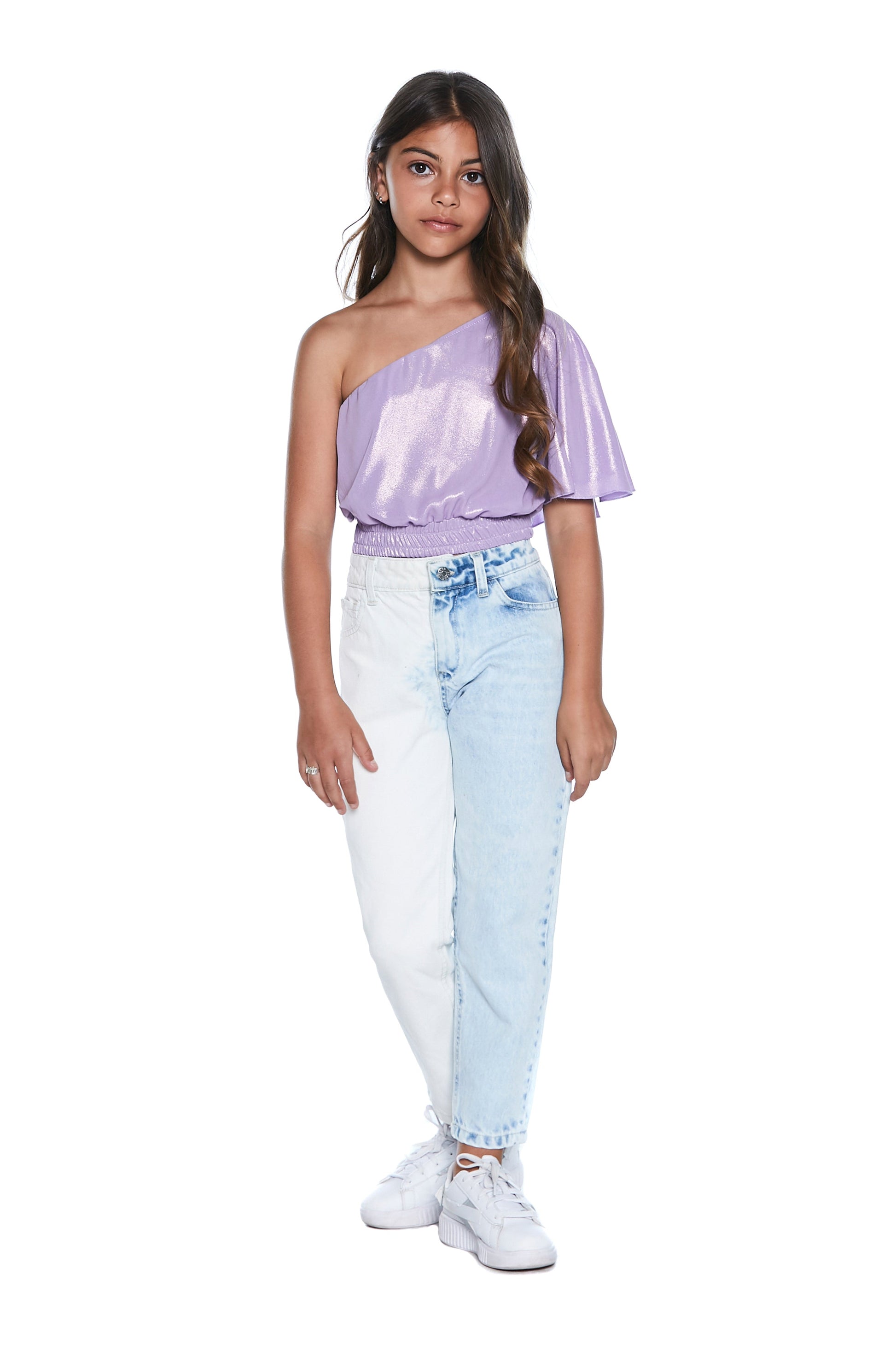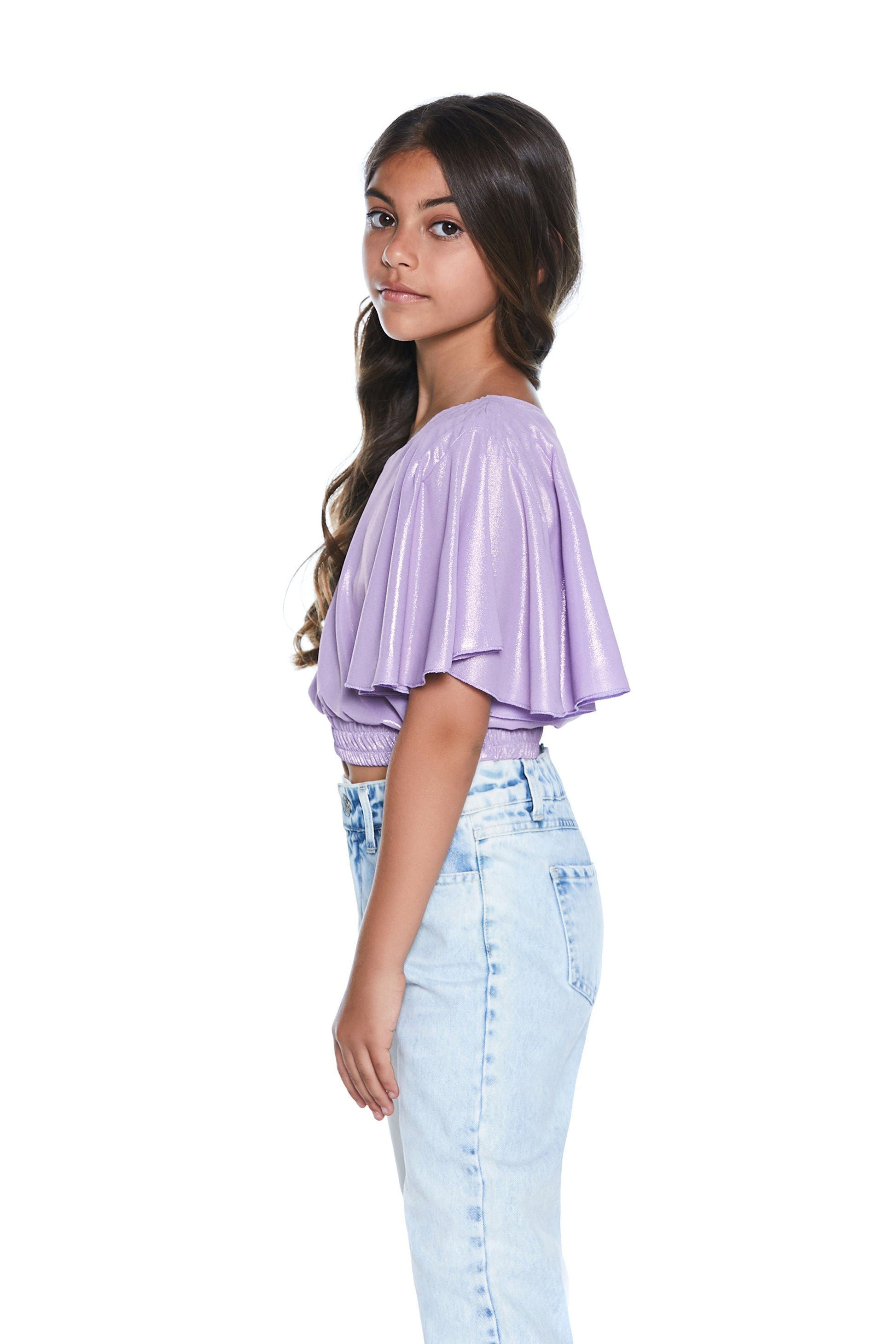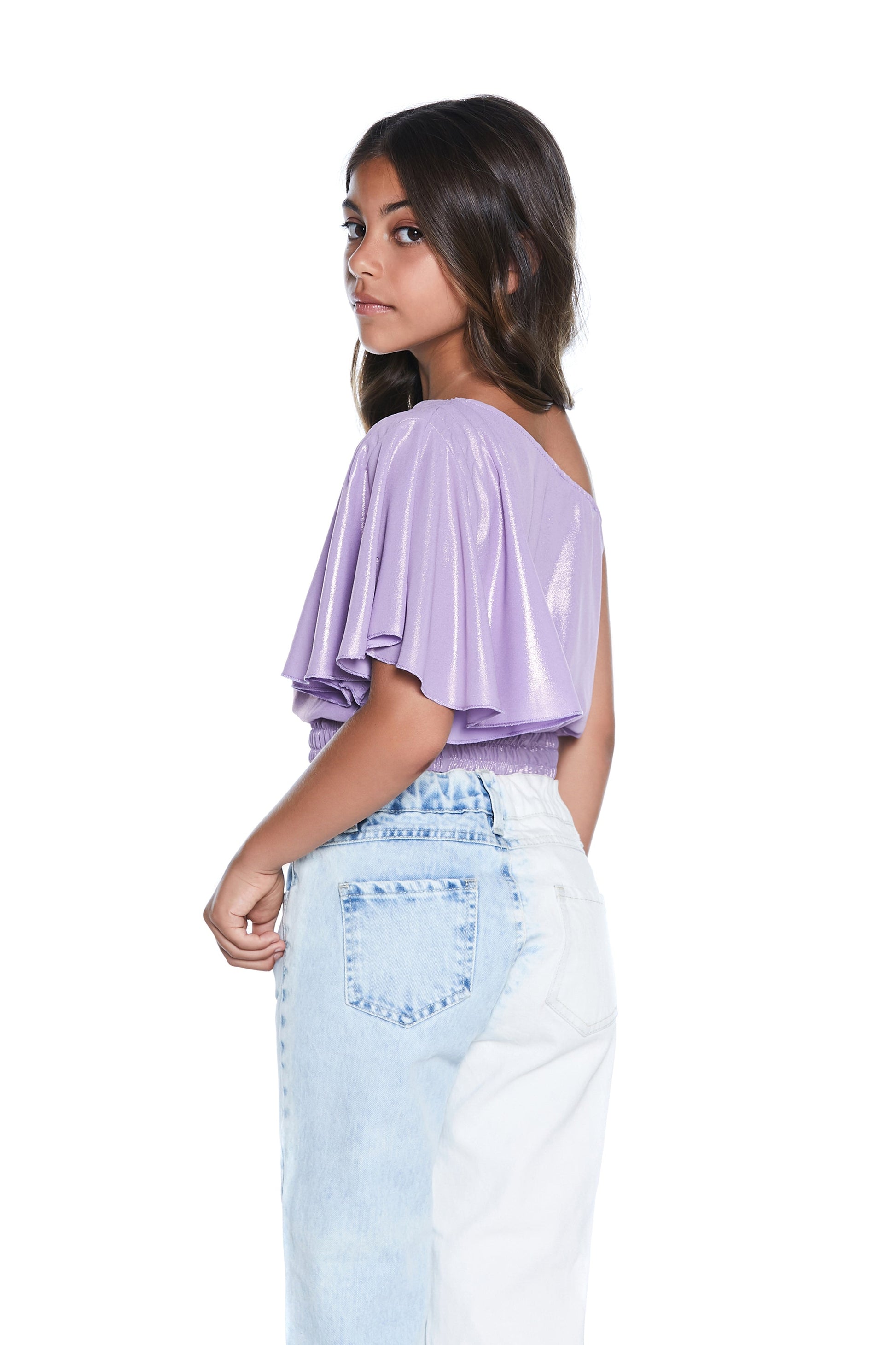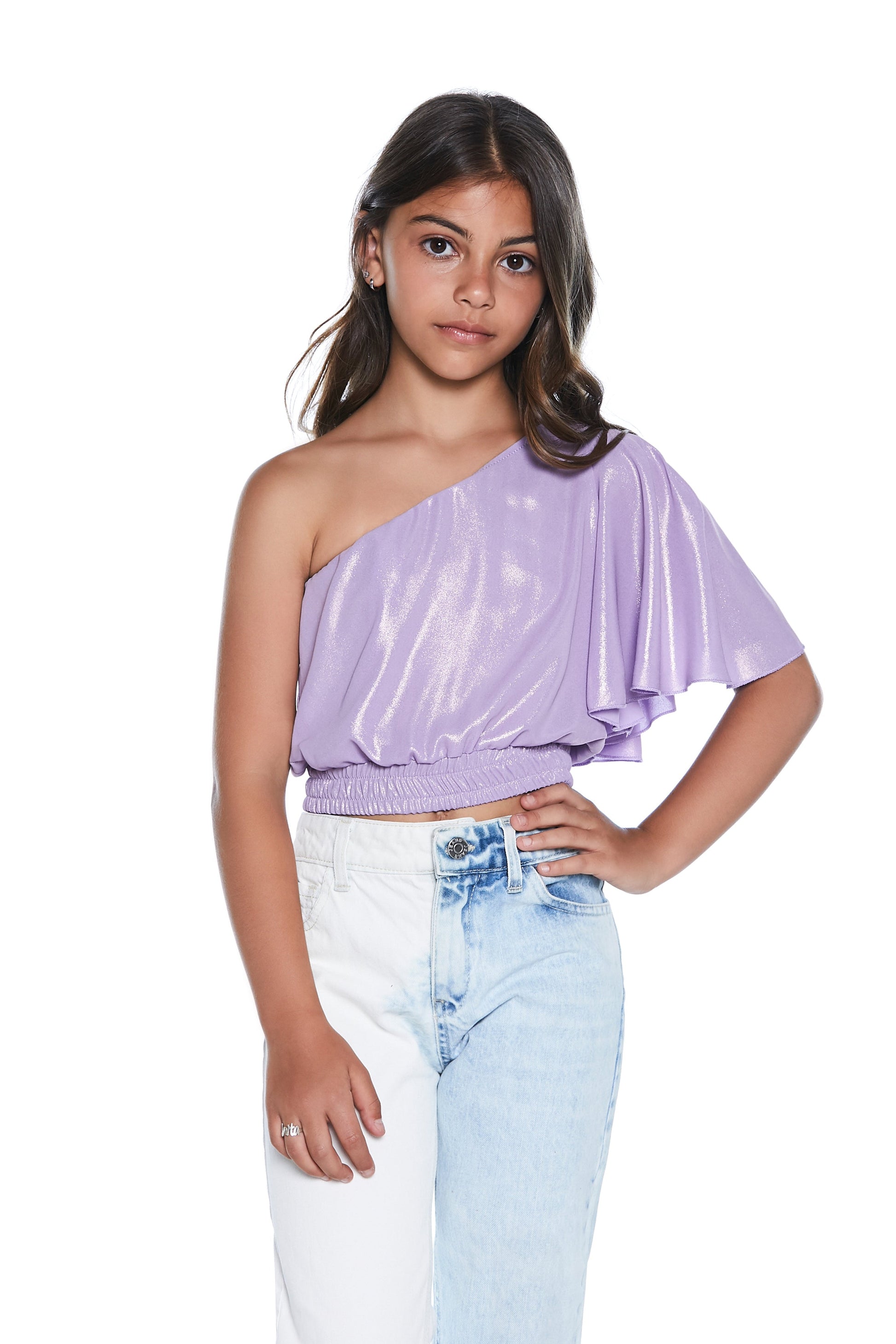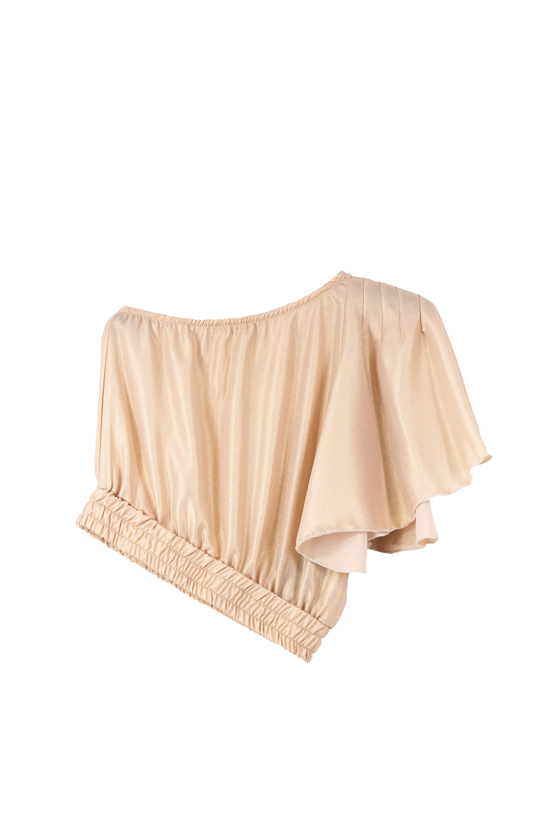 YFA 涂层乔其纱单肩荷叶边短款衬衫