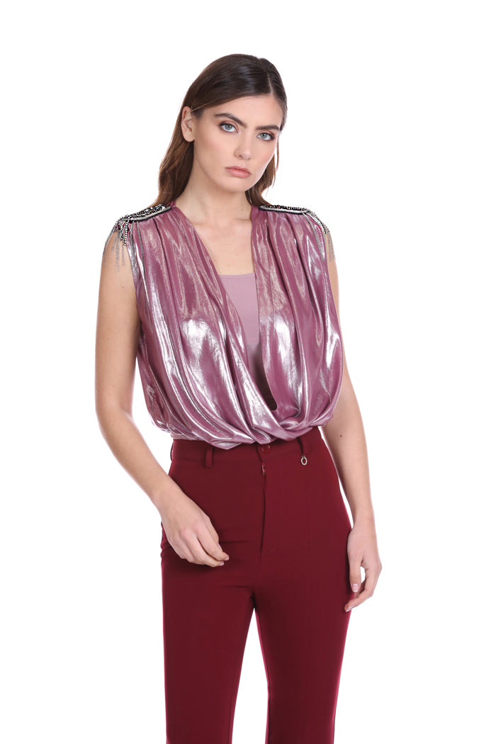 WANASMI 紧身衣采用层压面料,肩部饰有十字架和链条包