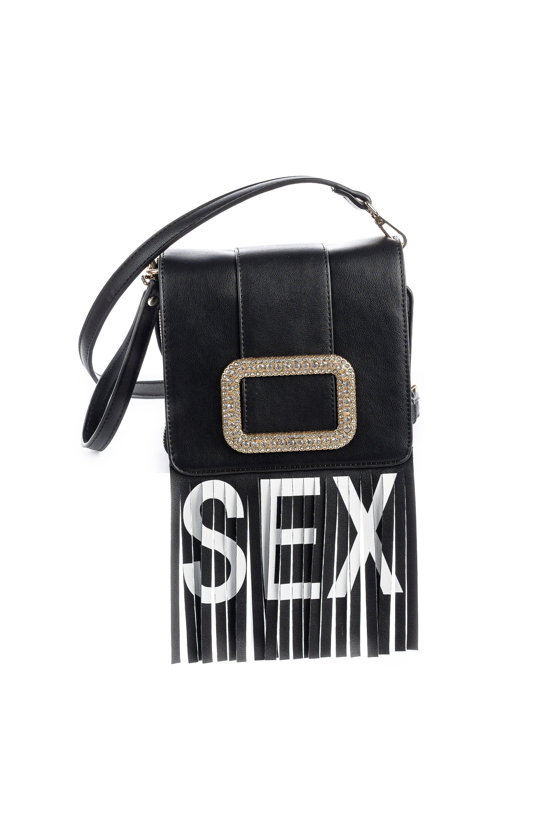 SEXAS 包带肩带加水钻扣加生态皮革印花流苏
