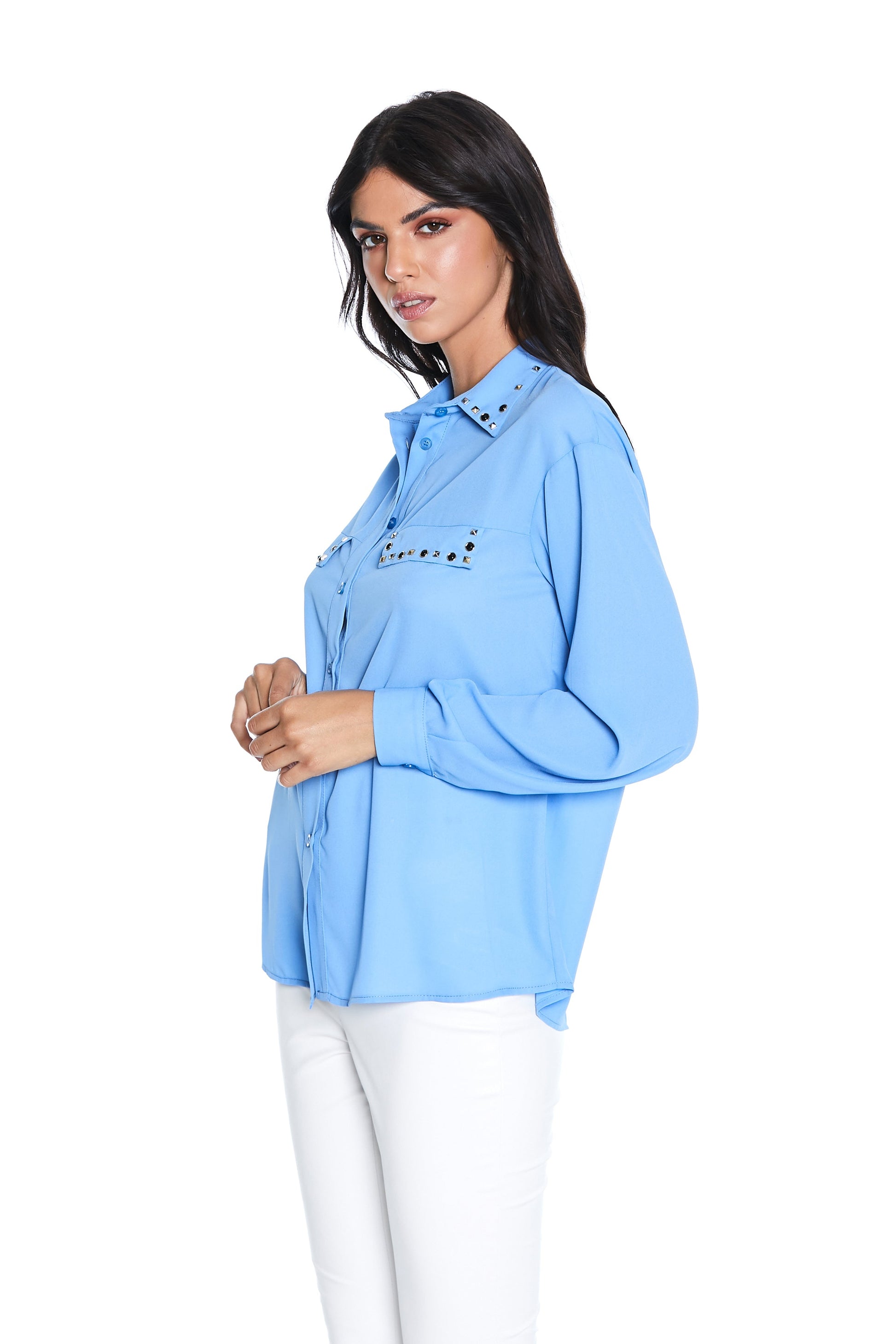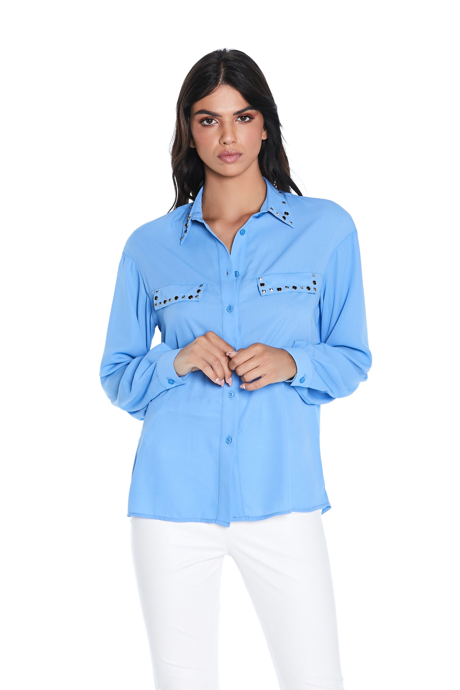 ADOR 饰有翻盖和饰钉的长袖衬衫