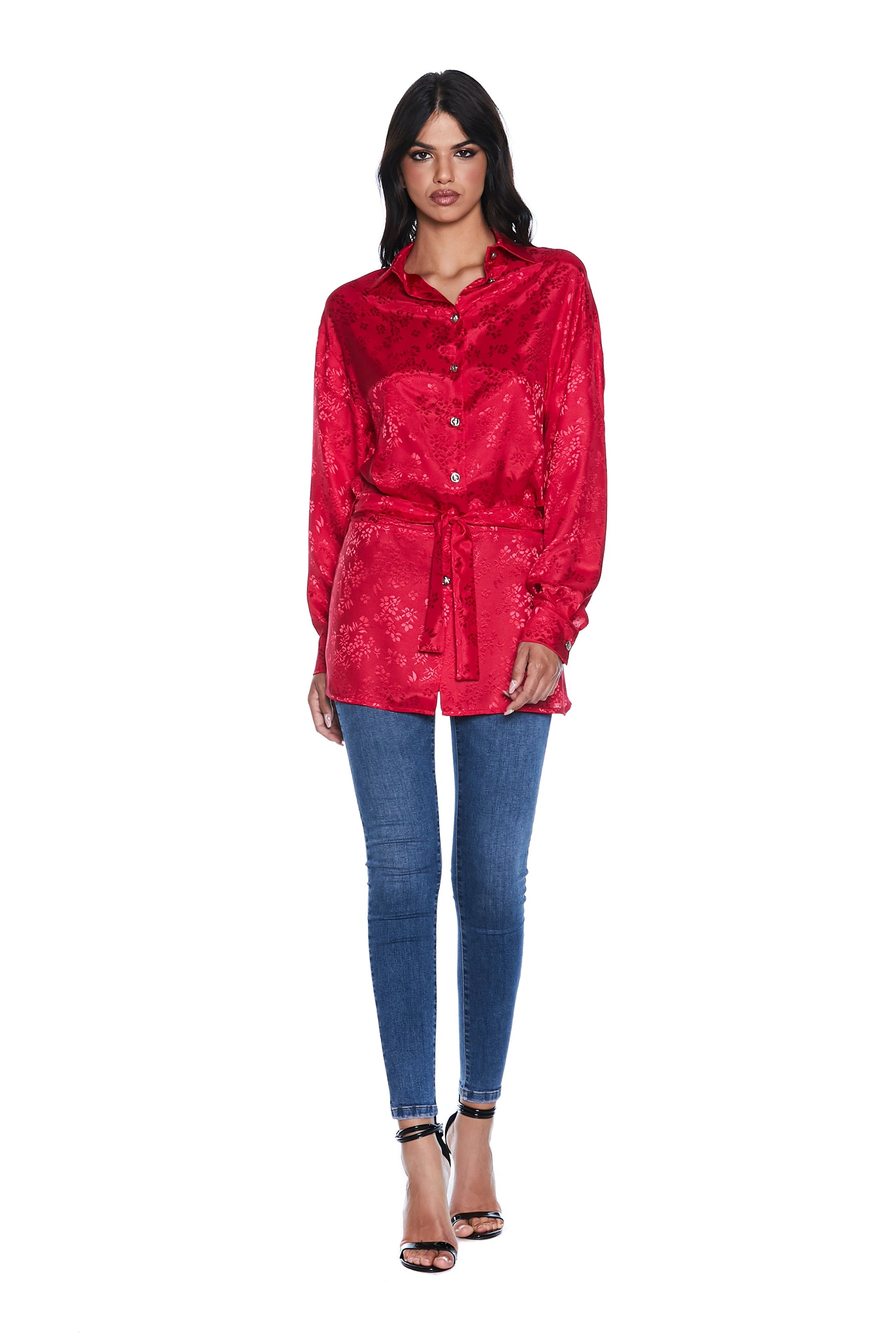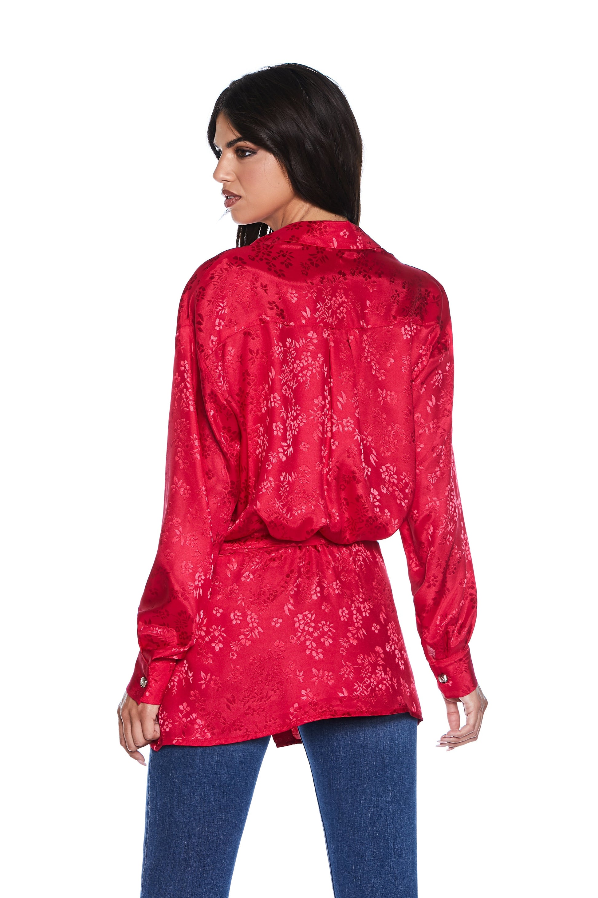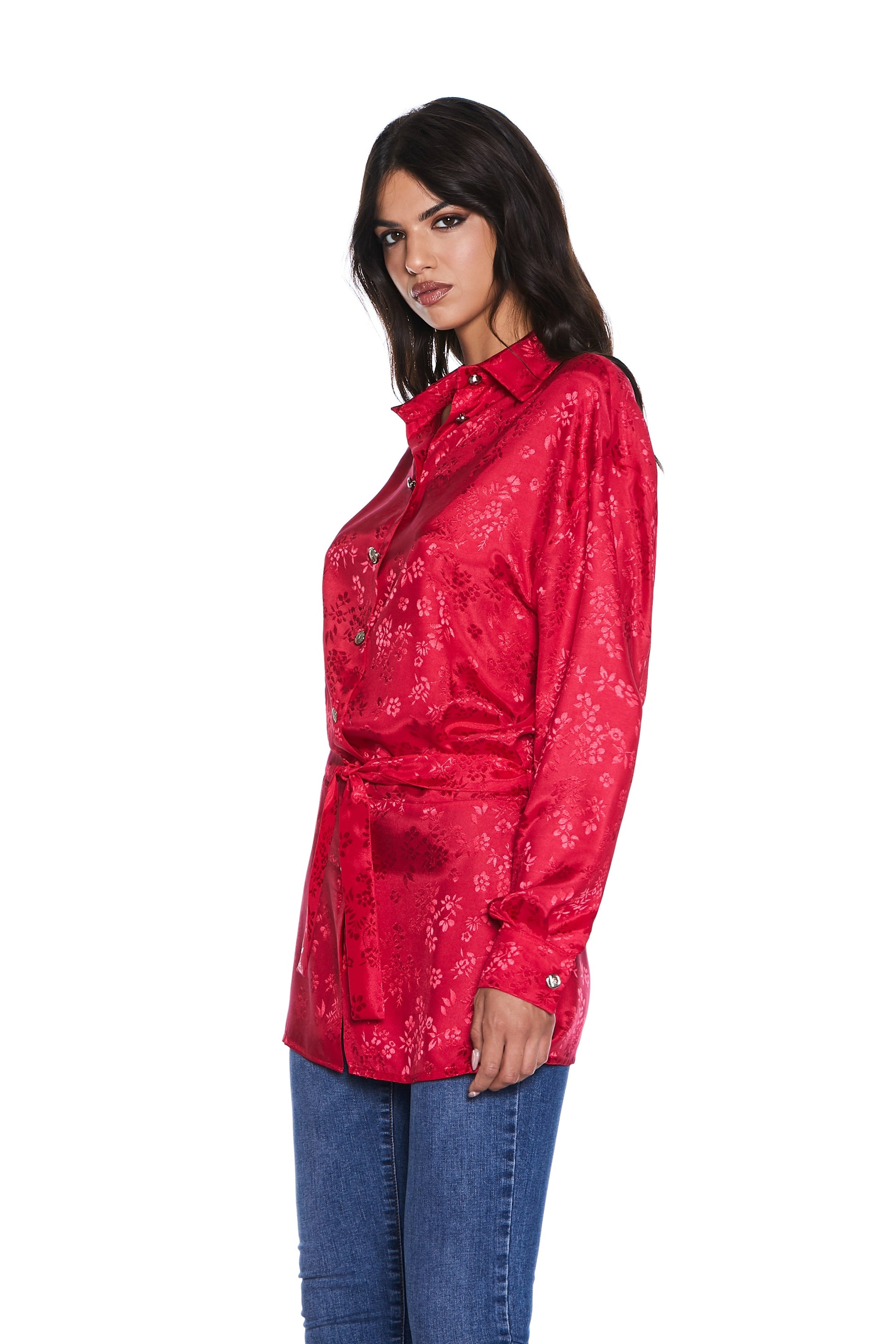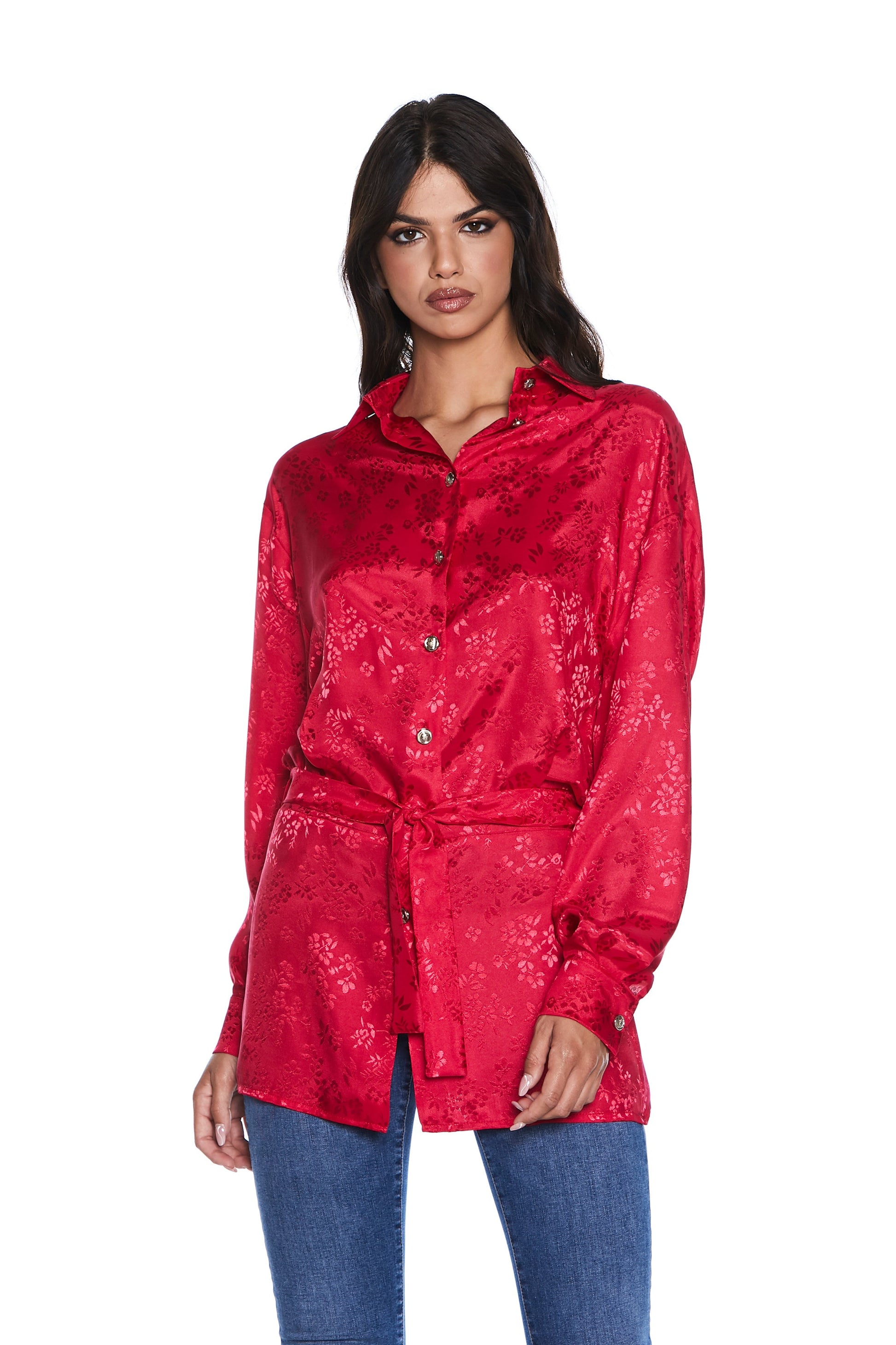 军团纽扣长袖 HAPPY 衬衫加花卉提花腰带