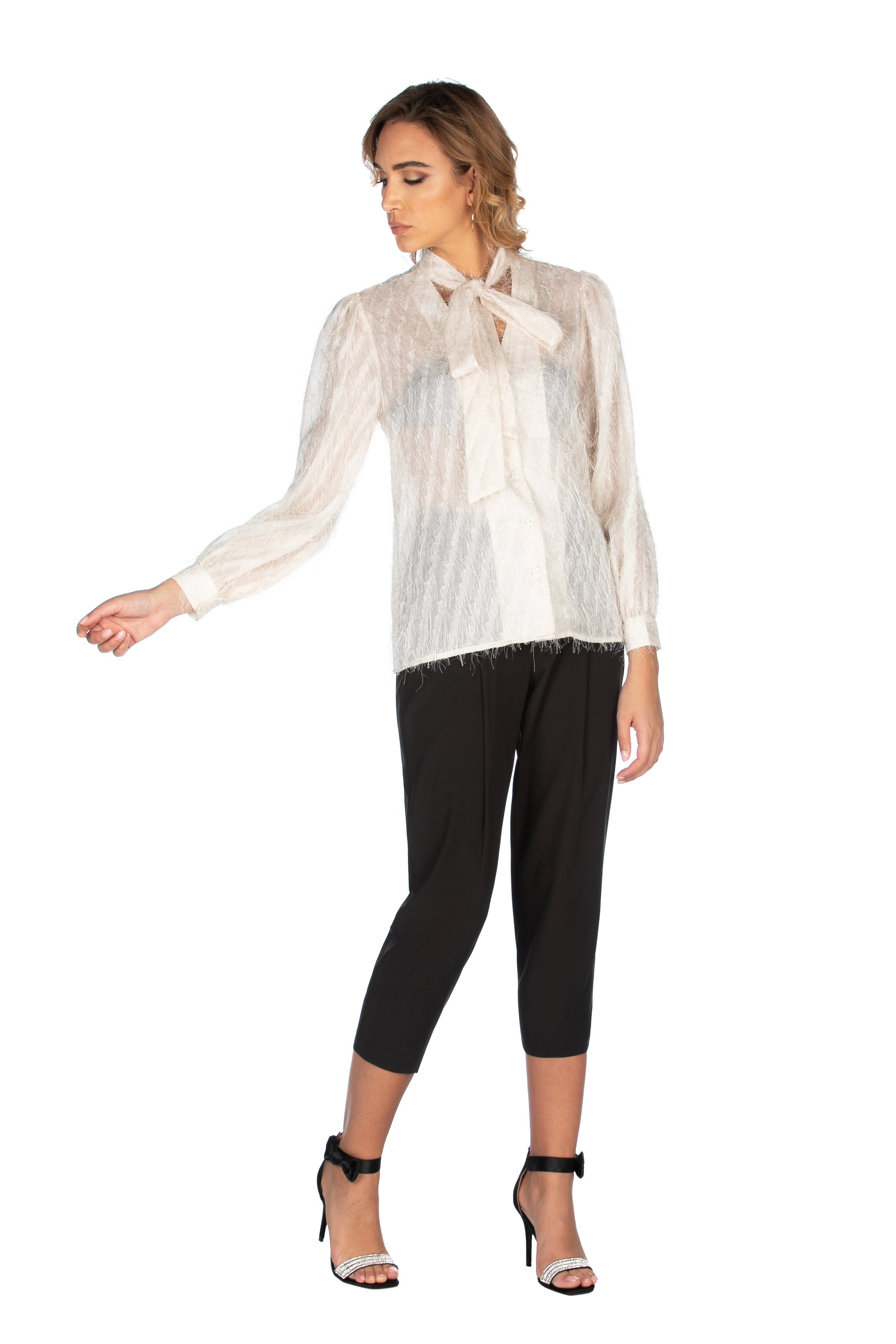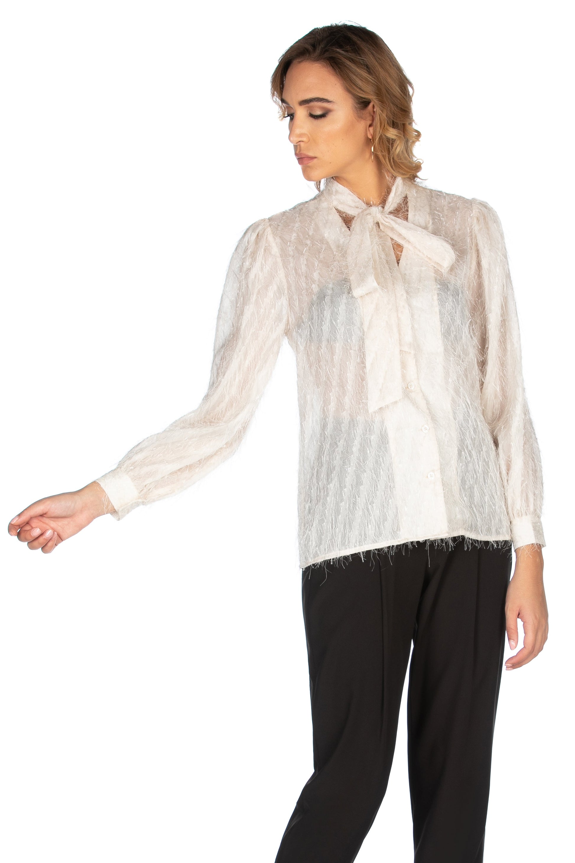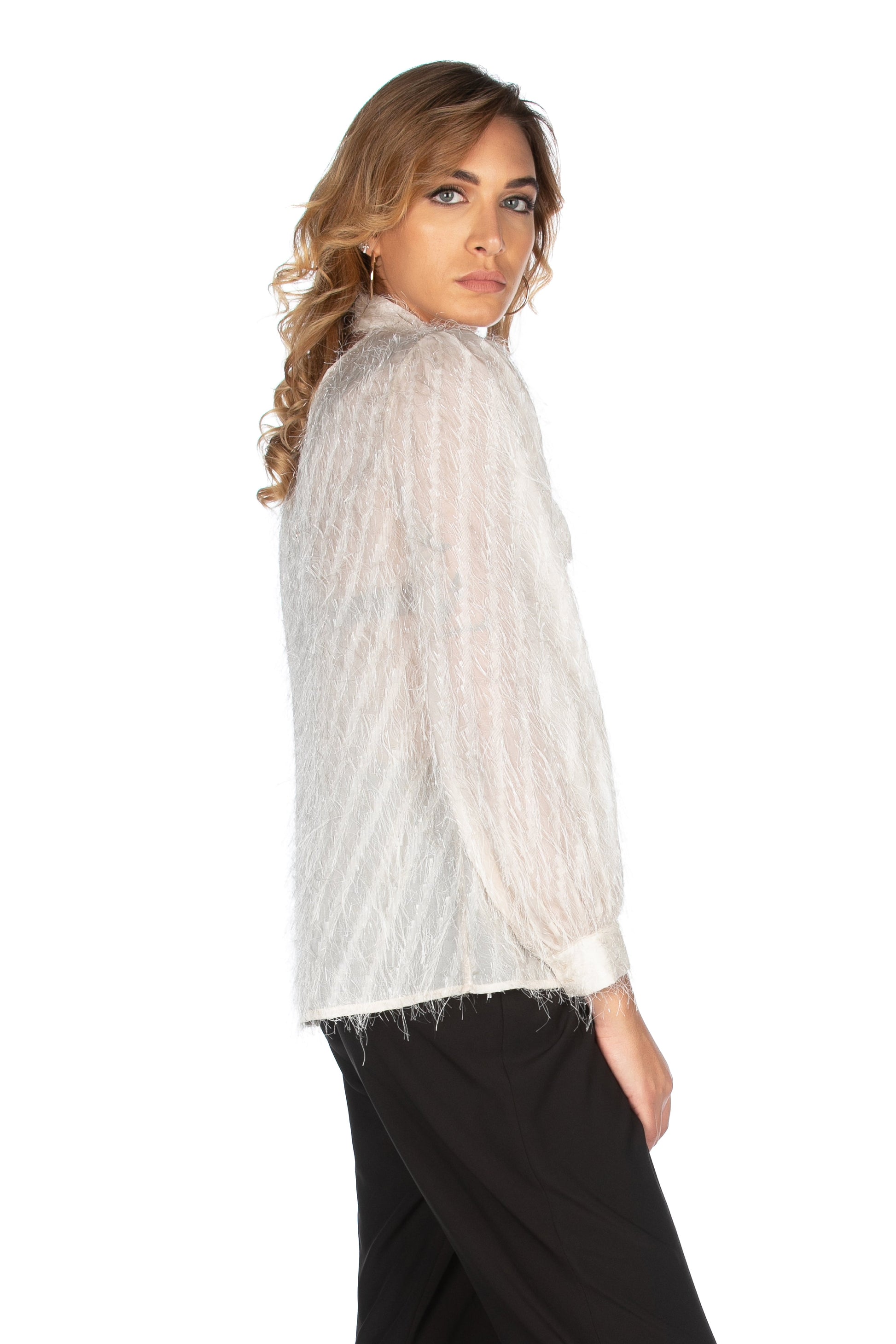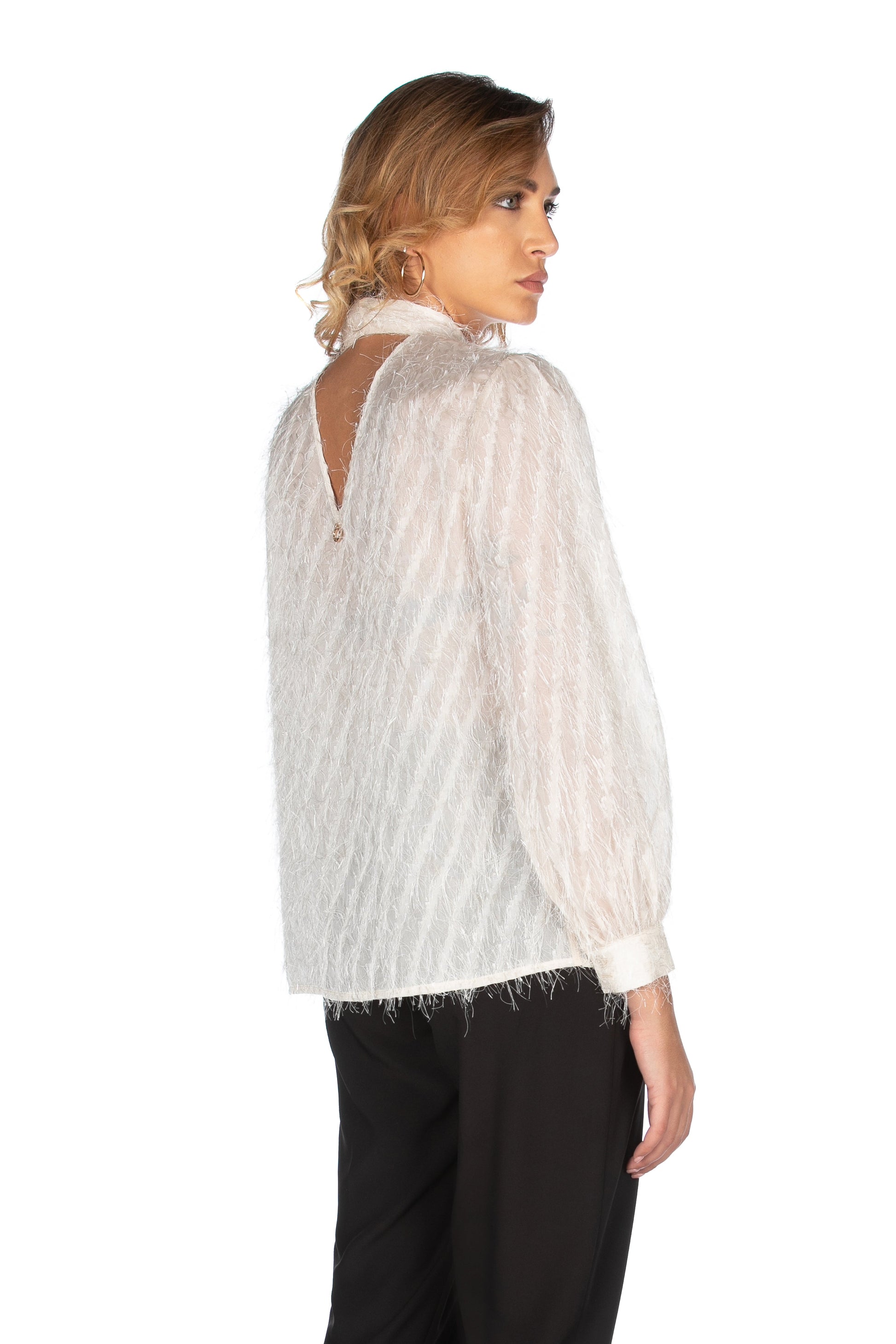SIMON 刺绣宽领长袖双 V 领衬衫