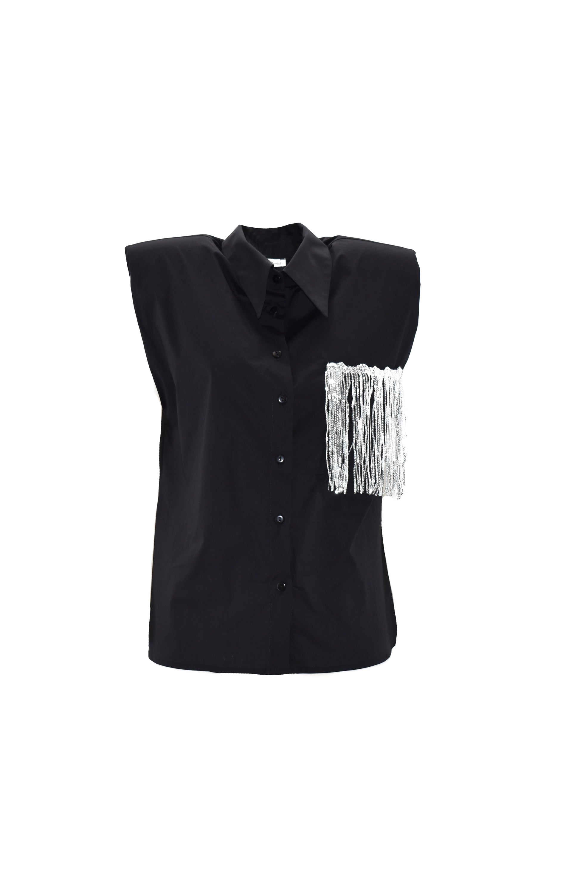 SORECI 半袖衬衫,翻盖和口袋加亮片应用