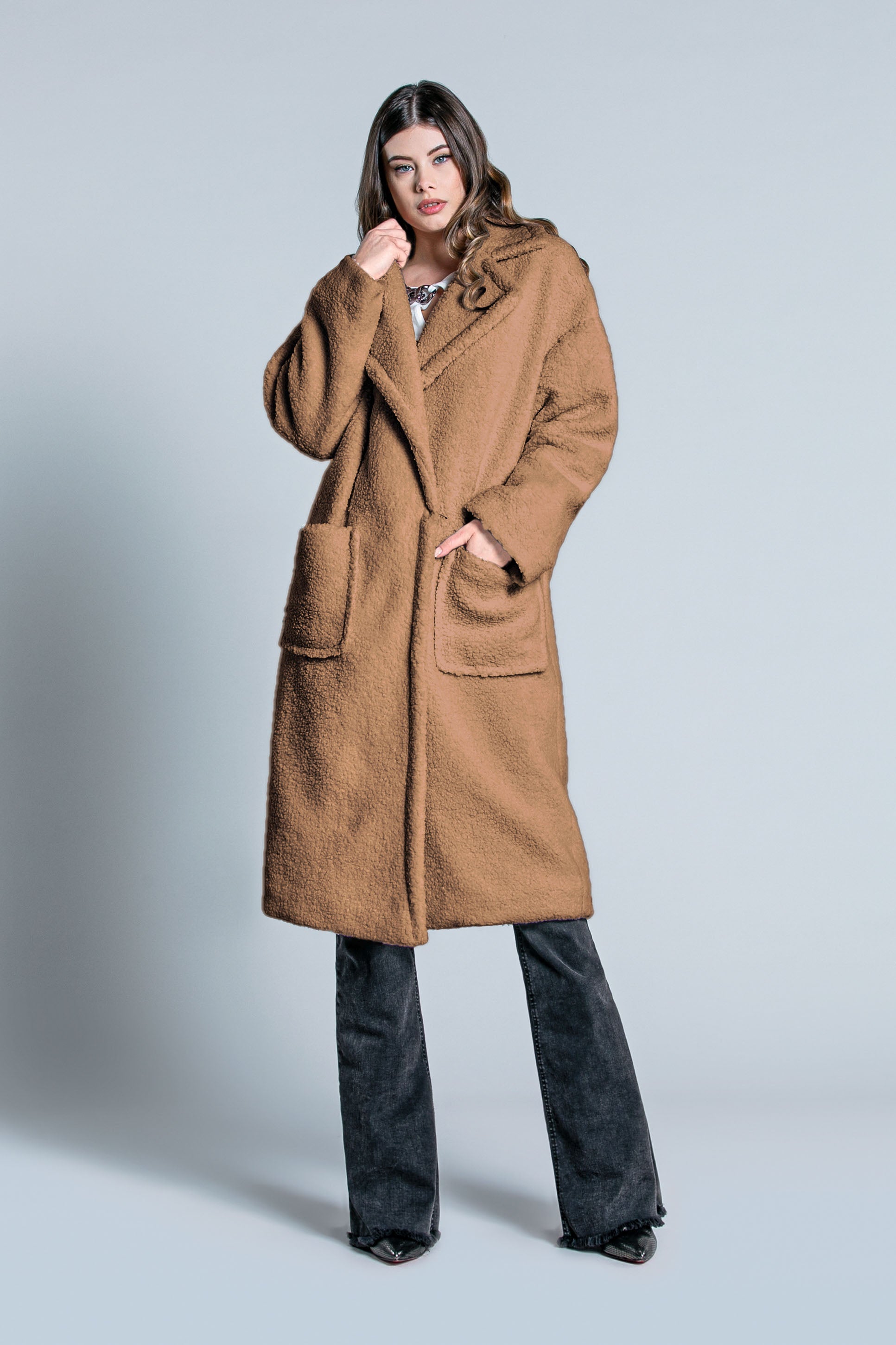 TENDZY 口袋熊贴饰长袖双排扣大衣