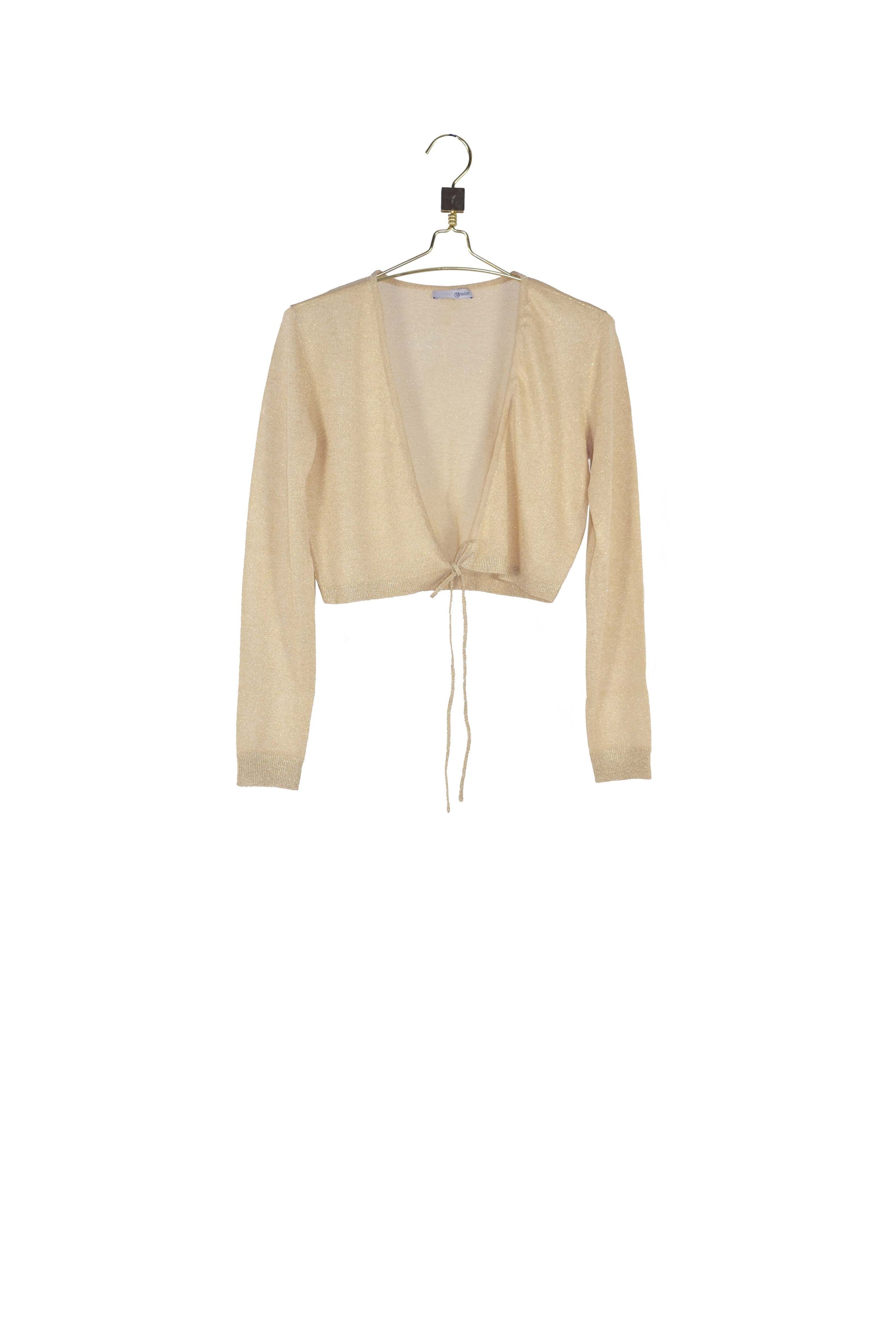 AFRASA 短款长袖开衫,卷边加金银丝抽绳