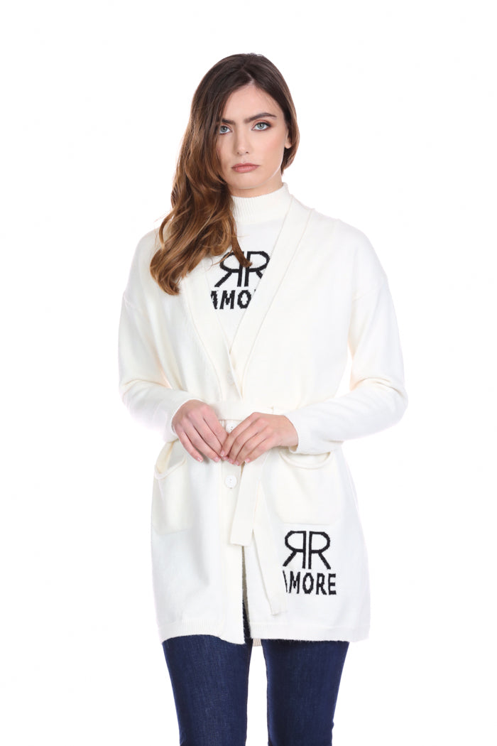 长袖 DIRTENZ 开衫有口袋加腰带加爱心提花