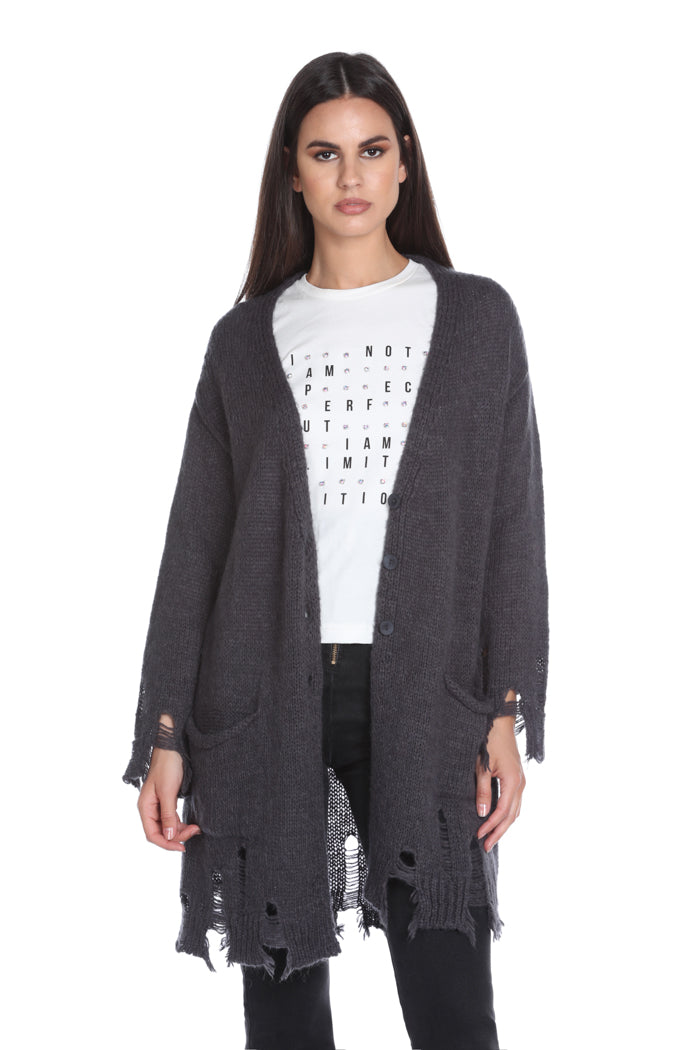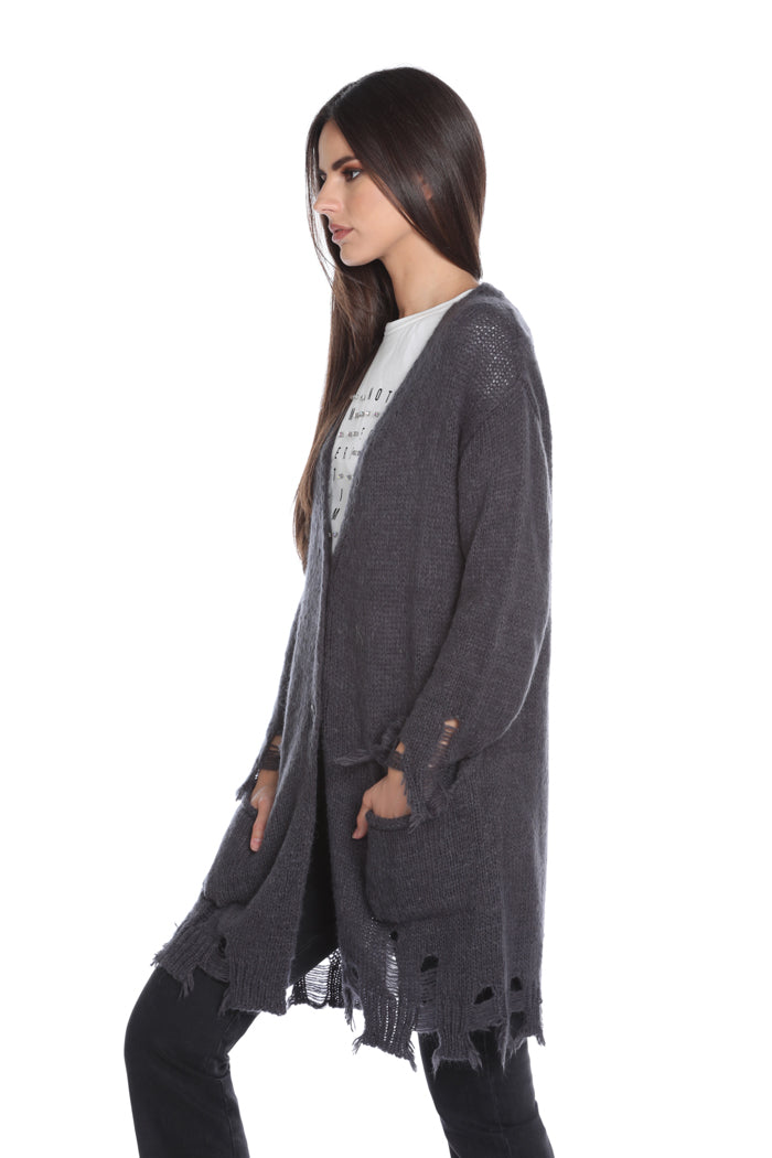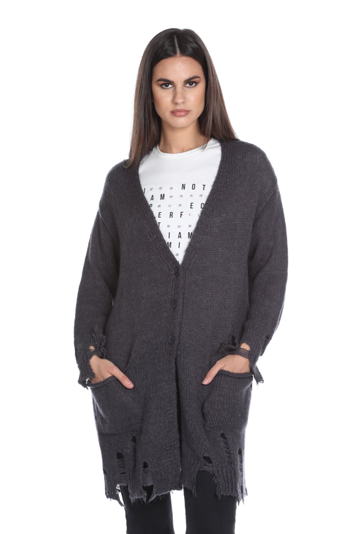 长袖 OKKIDI 开衫,带口袋加底部破洞