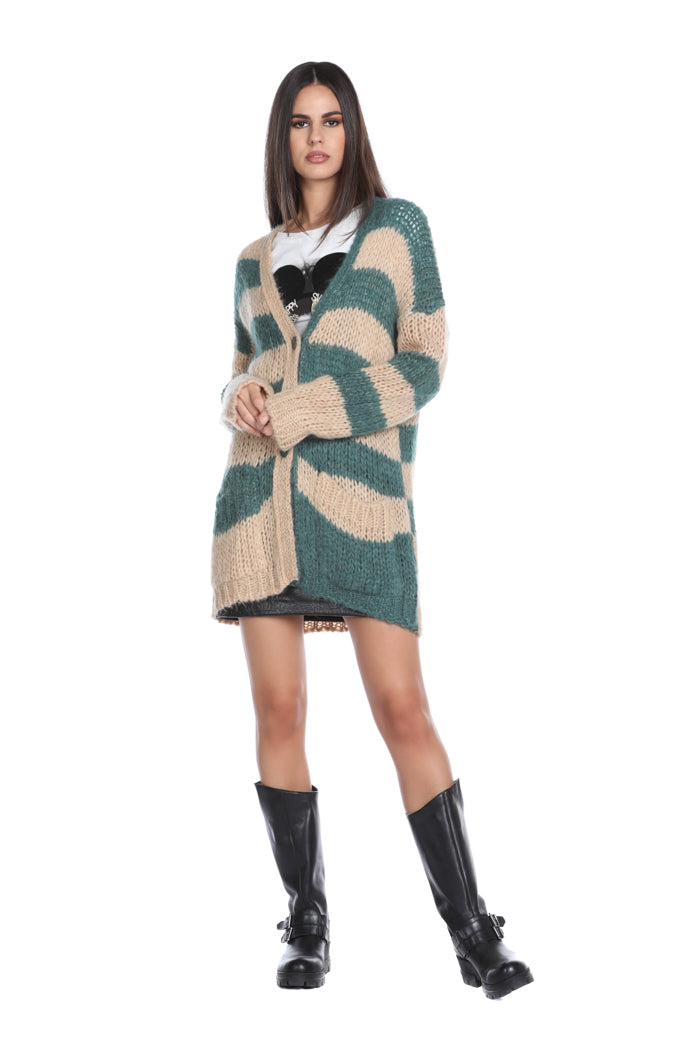 双色条纹口袋长袖 RYAN 开衫