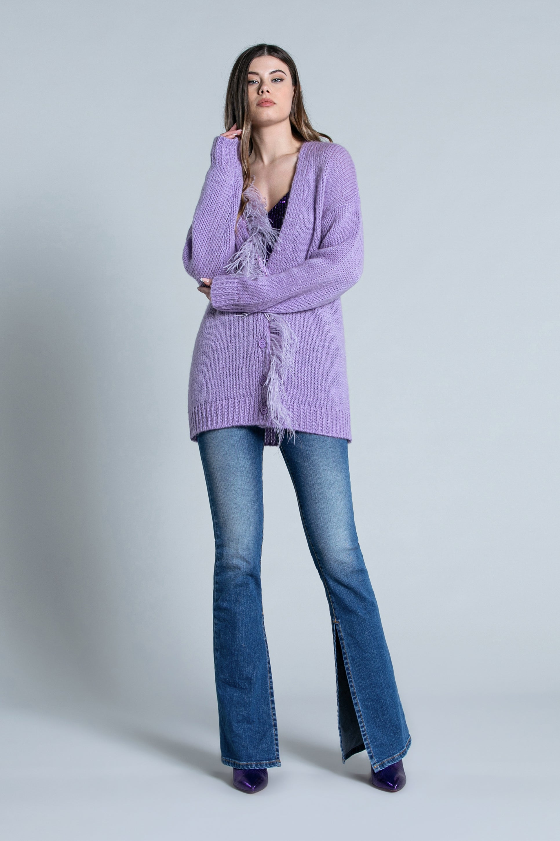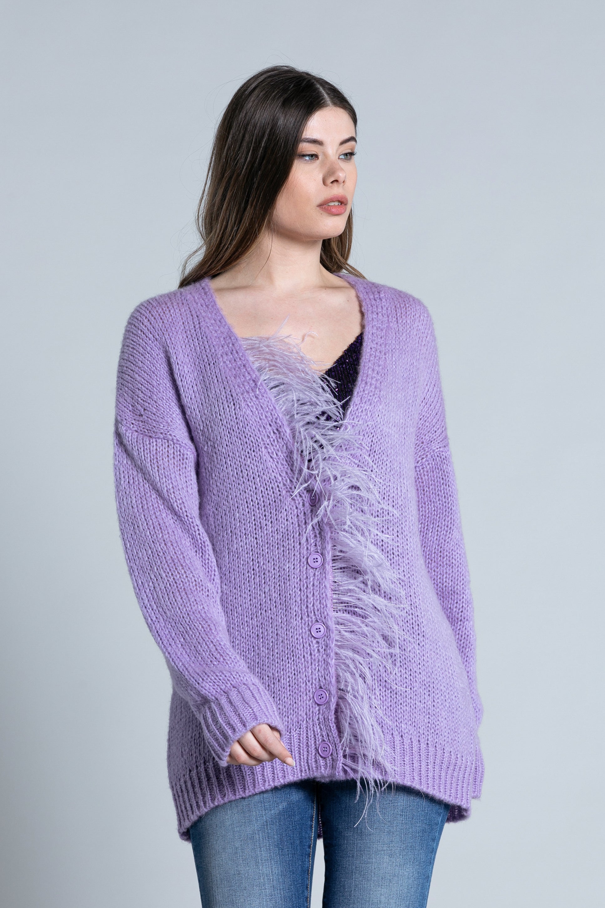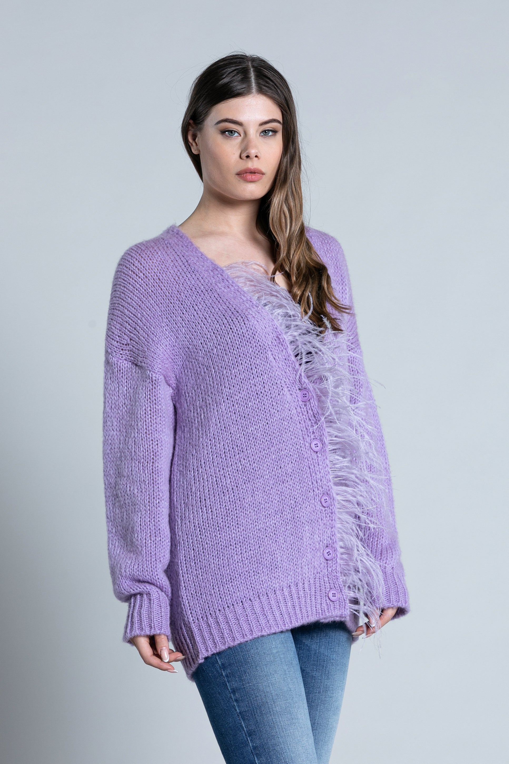 SENZAV 纽扣羽毛廓形长袖开衫