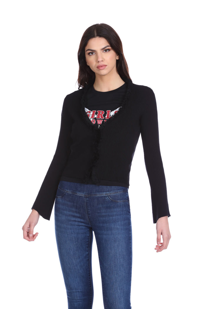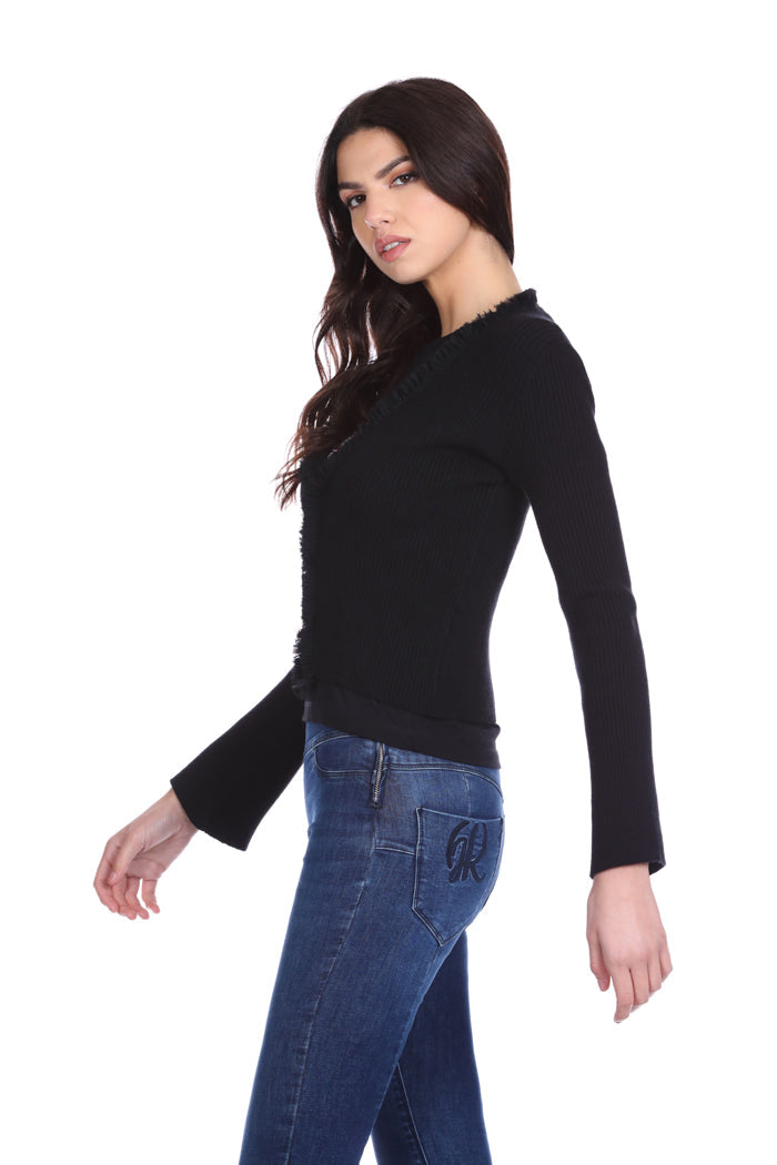 WAZ 乔其纱廓形短罗纹长袖开衫