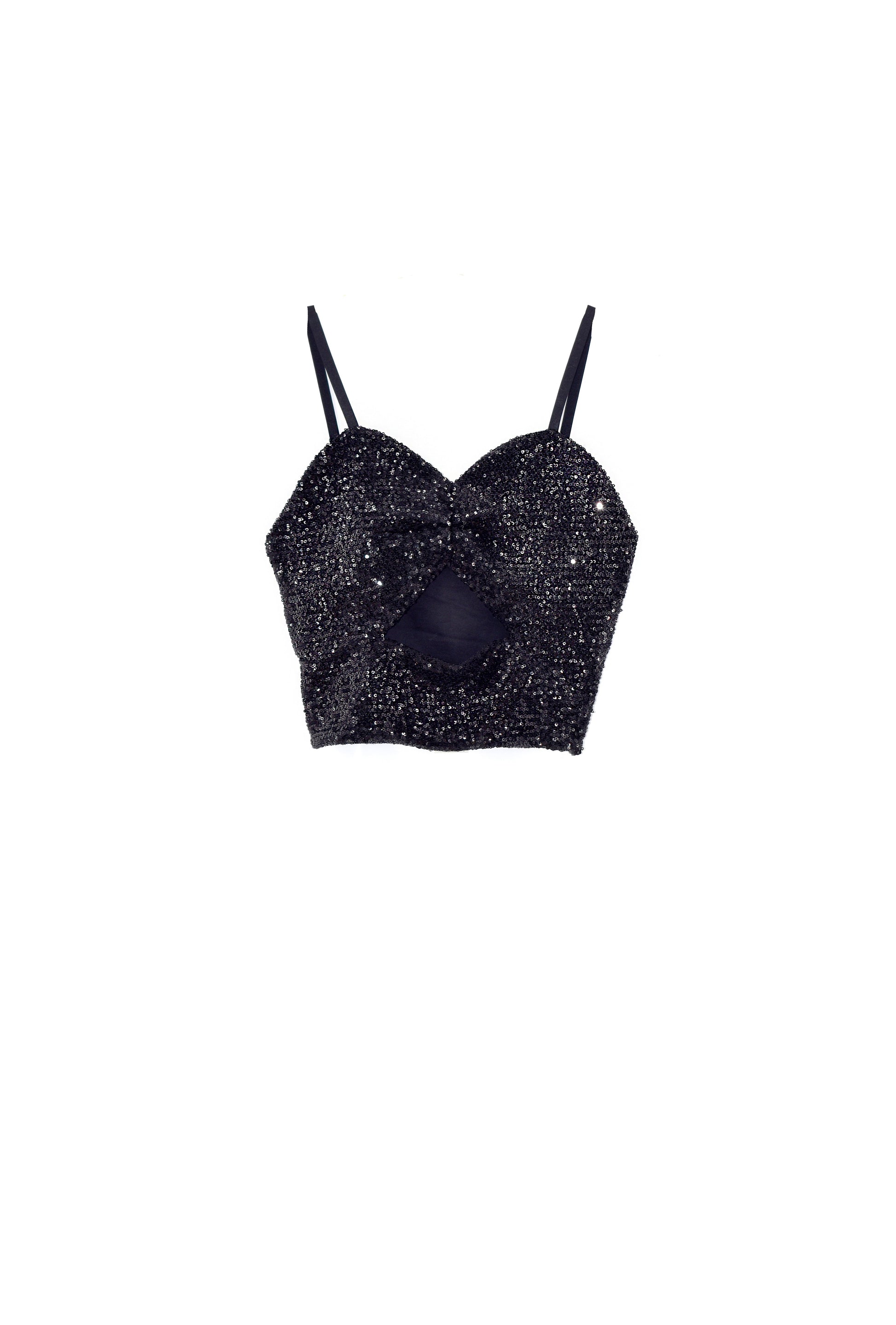 SEMMAMA 短袖无袖心形领口全亮片上衣