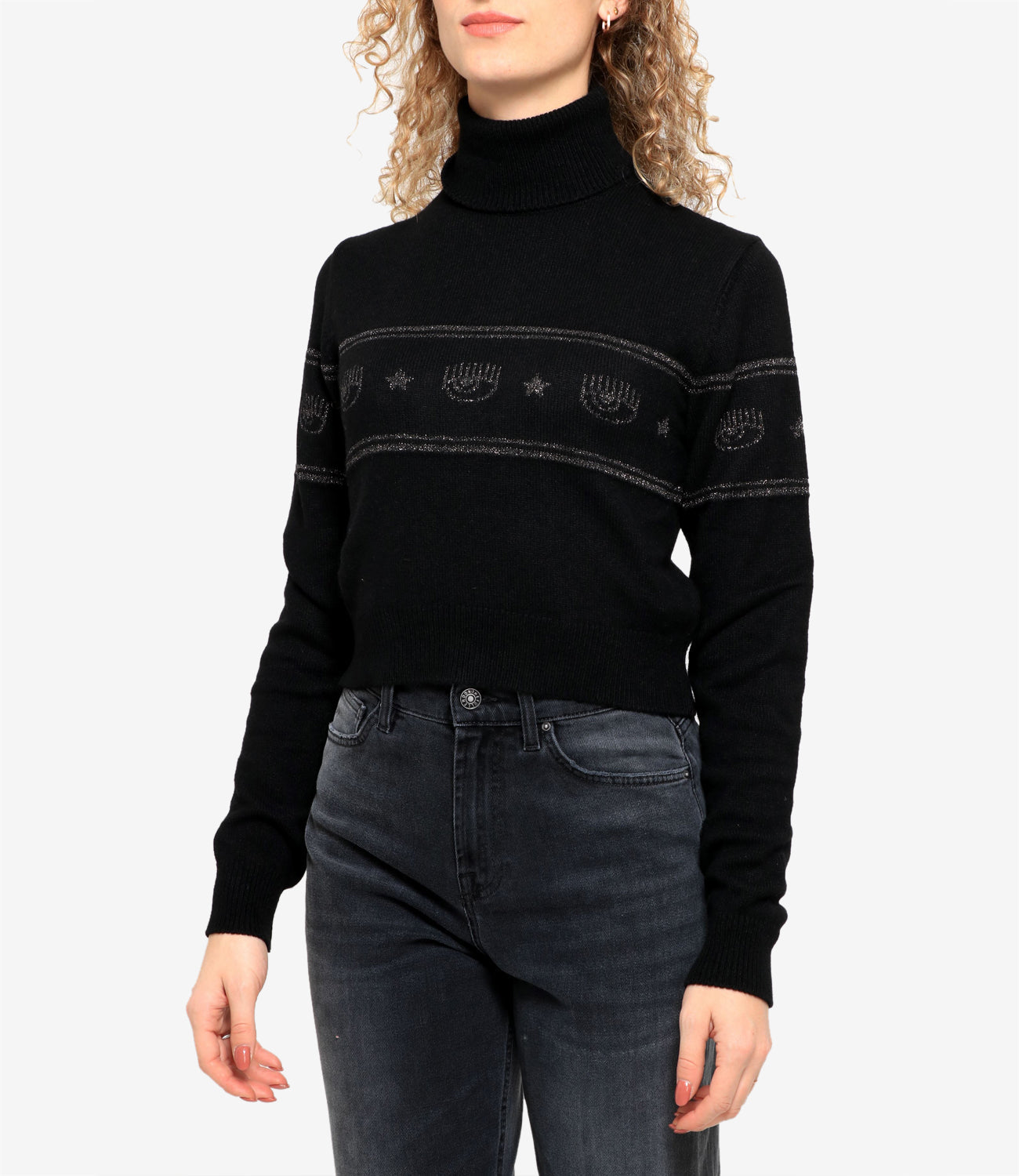 克莱尔法拉格尼 |黑色 Maxilogo 平纹针织面料