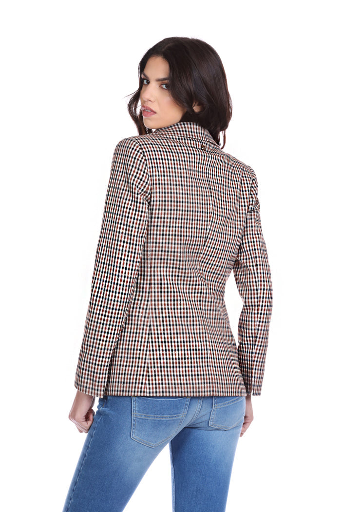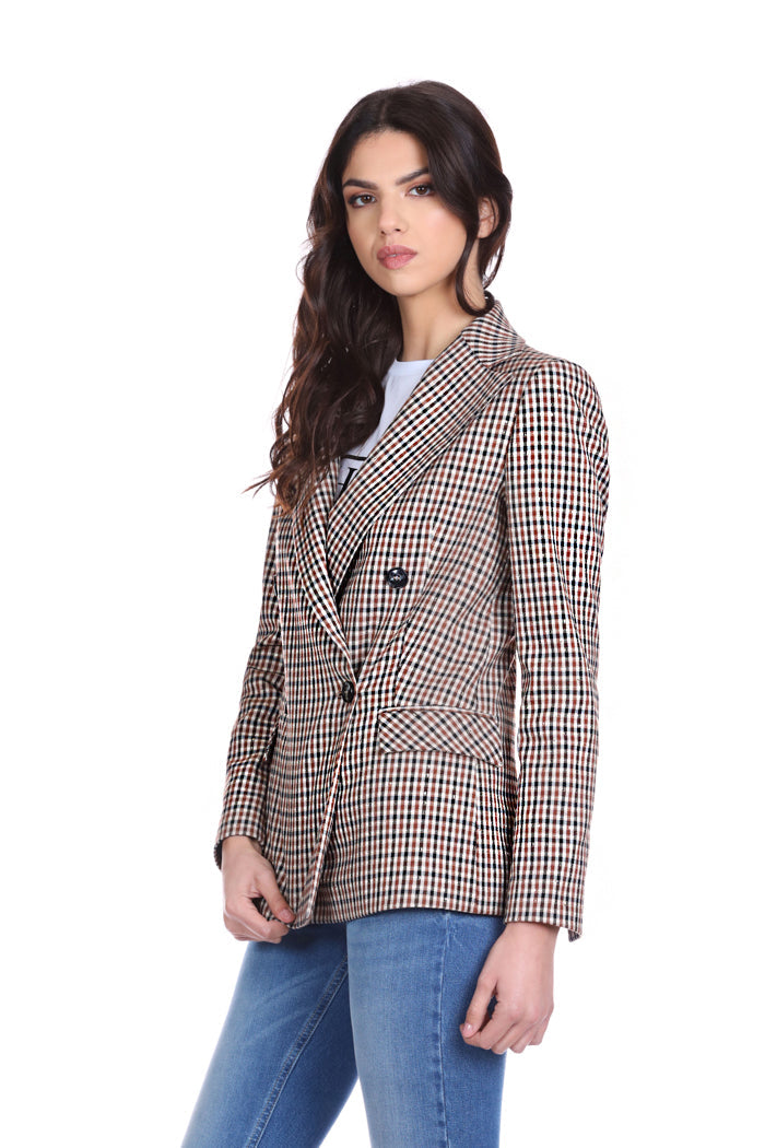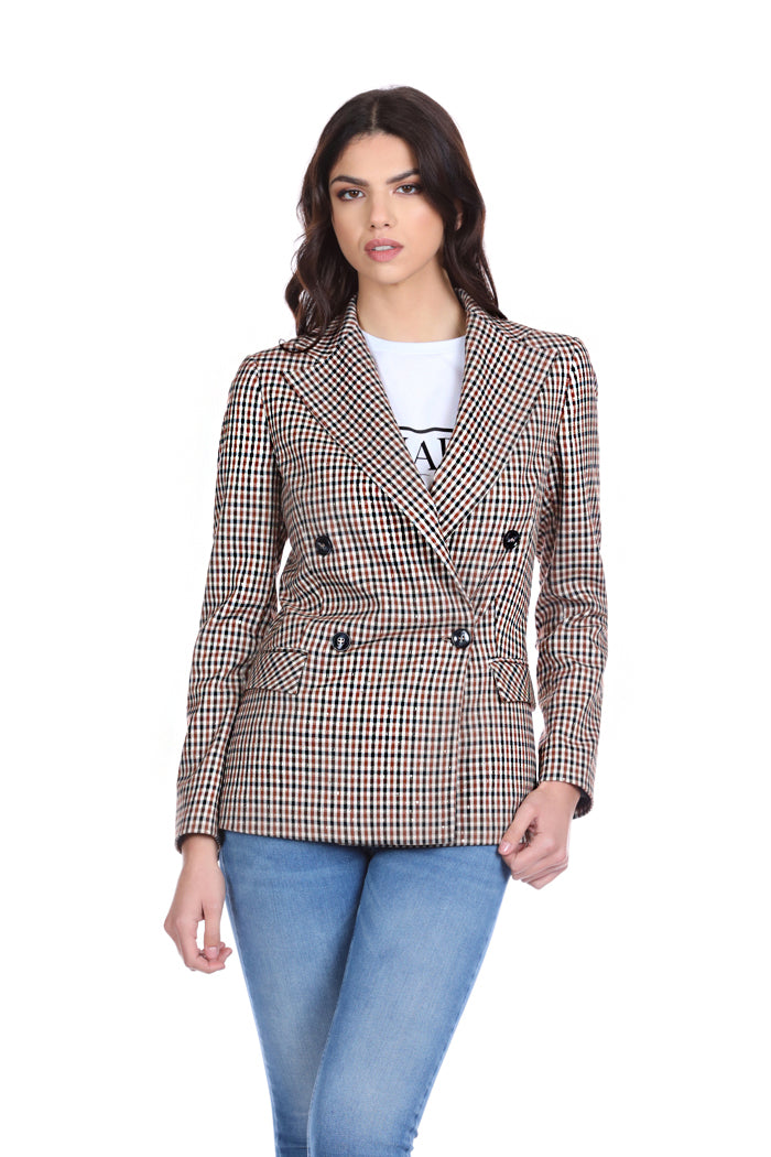 长袖 ENGLIS 夹克,双排扣开叉口袋加格子翻盖加金色