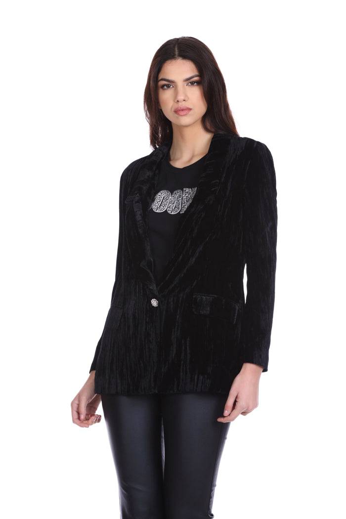 长袖 QUANDOTU 夹克,配以珠宝纽扣和天鹅绒口袋