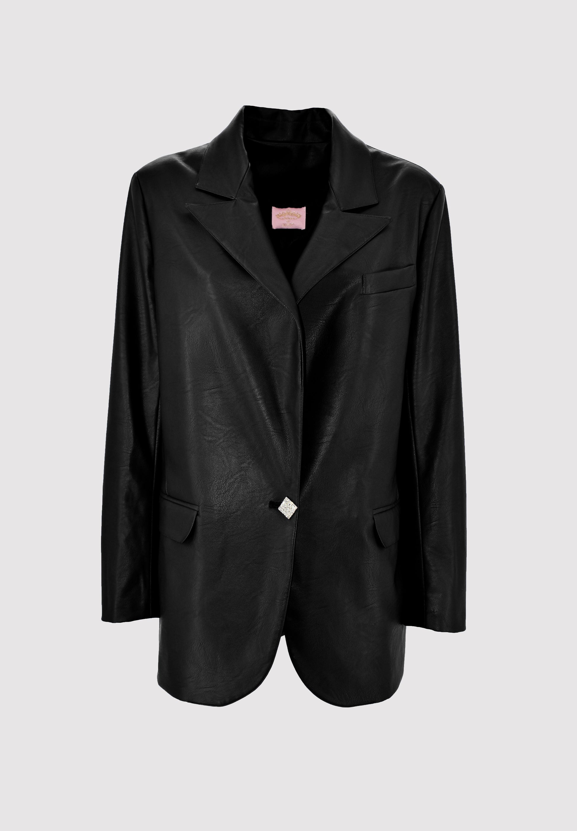 SEGINUS 人造皮革和珠宝纽扣夹克