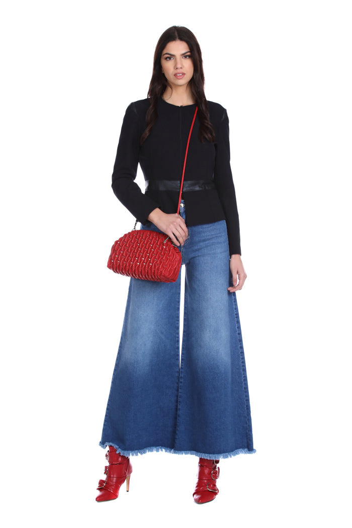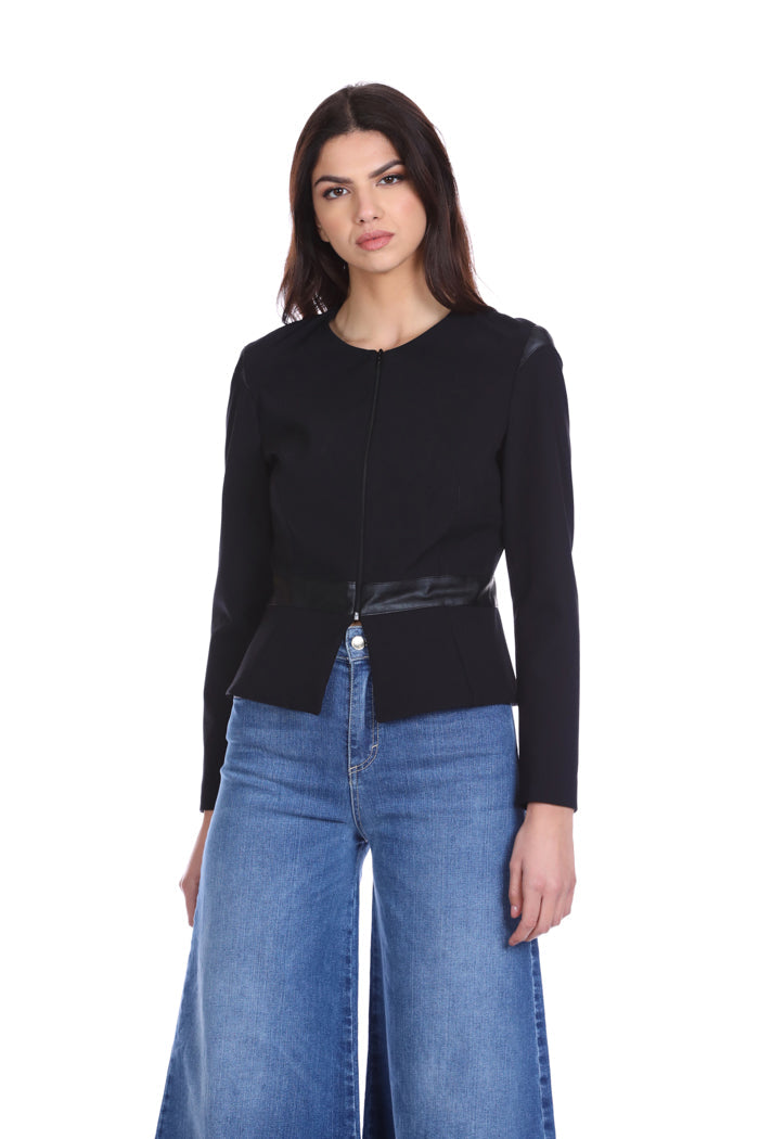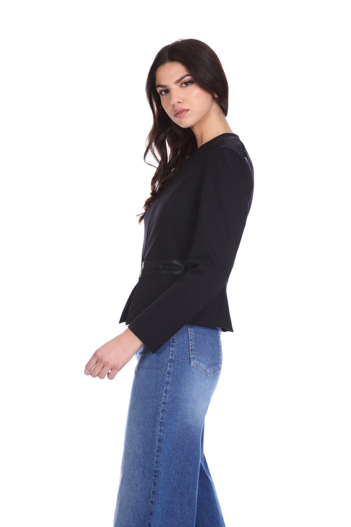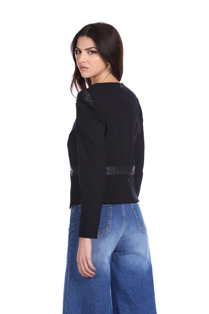 VIUFE 无领短款长袖夹克,带拉链和人造皮革嵌件