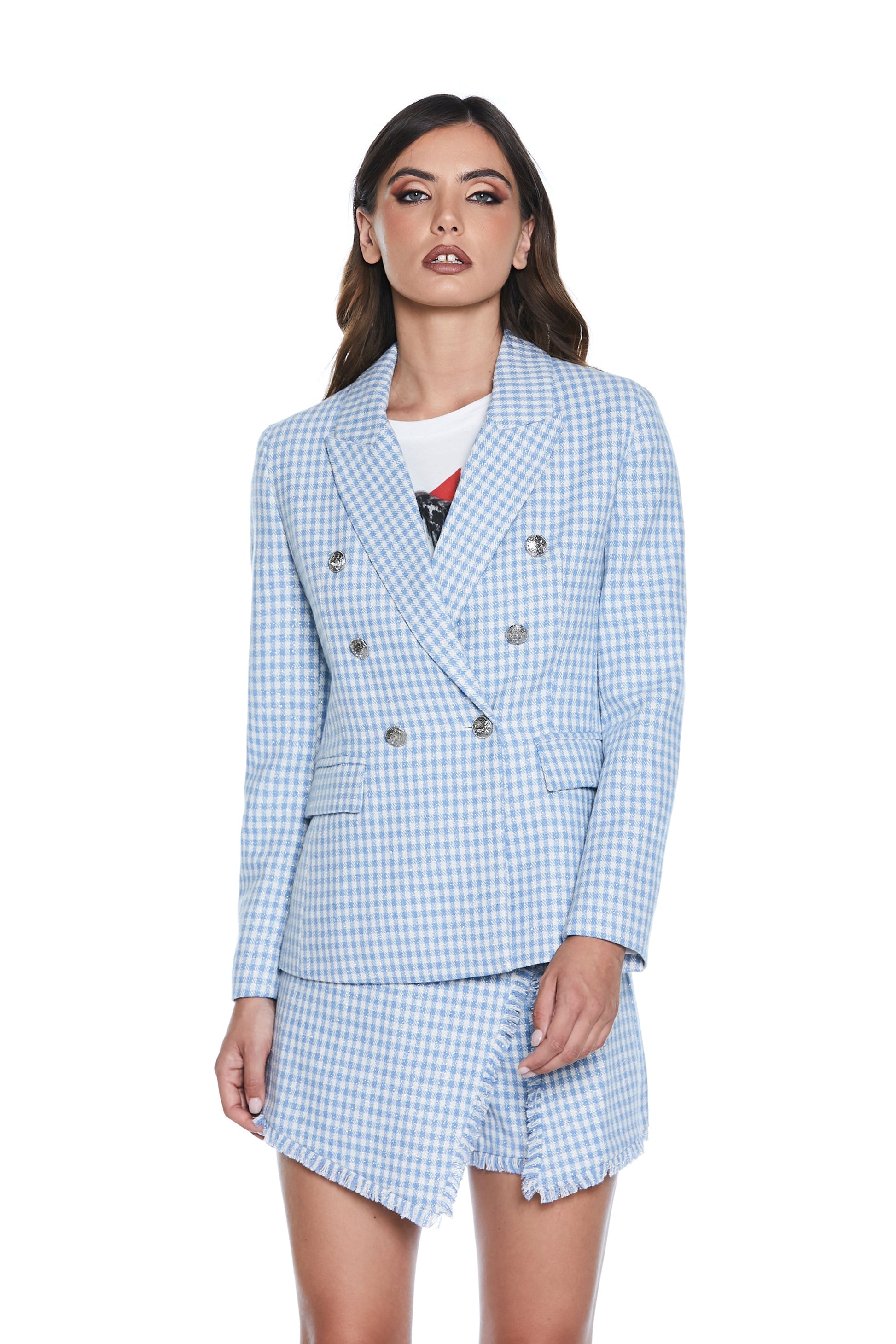 ZARINET 长袖双排扣纽扣加方形口袋加卢勒克斯织物夹克