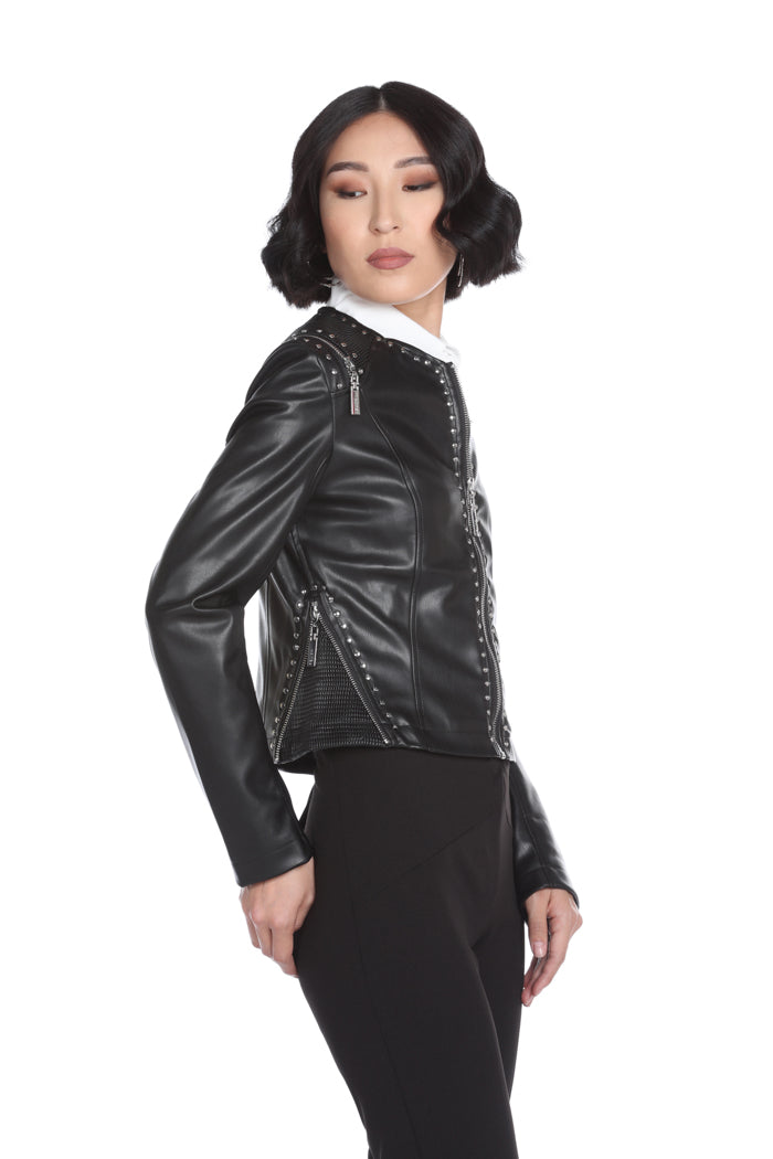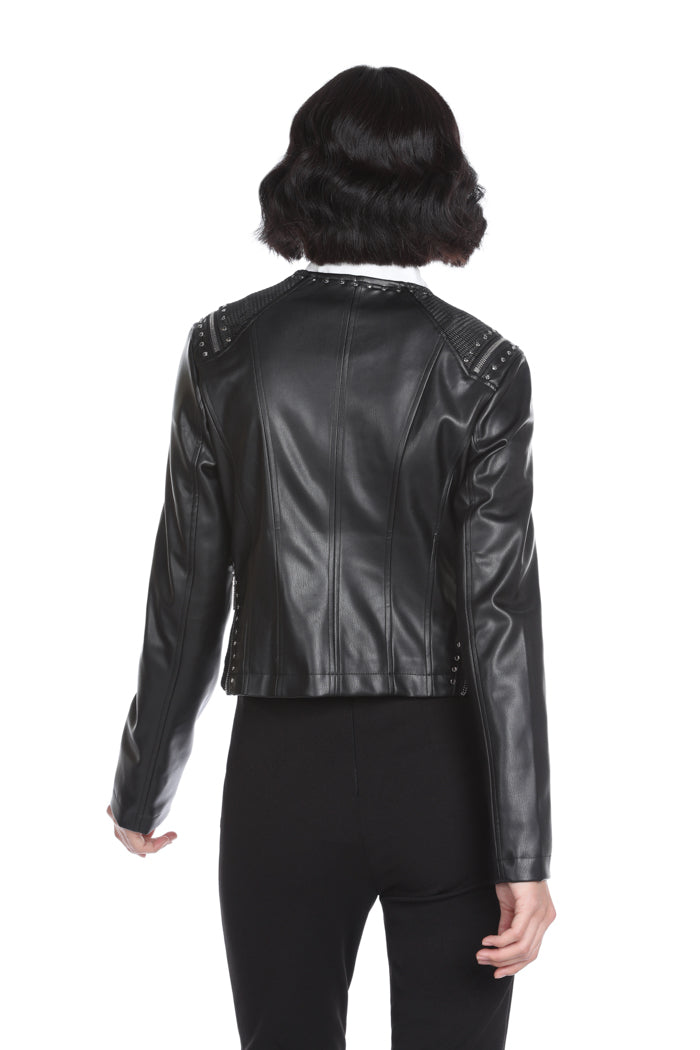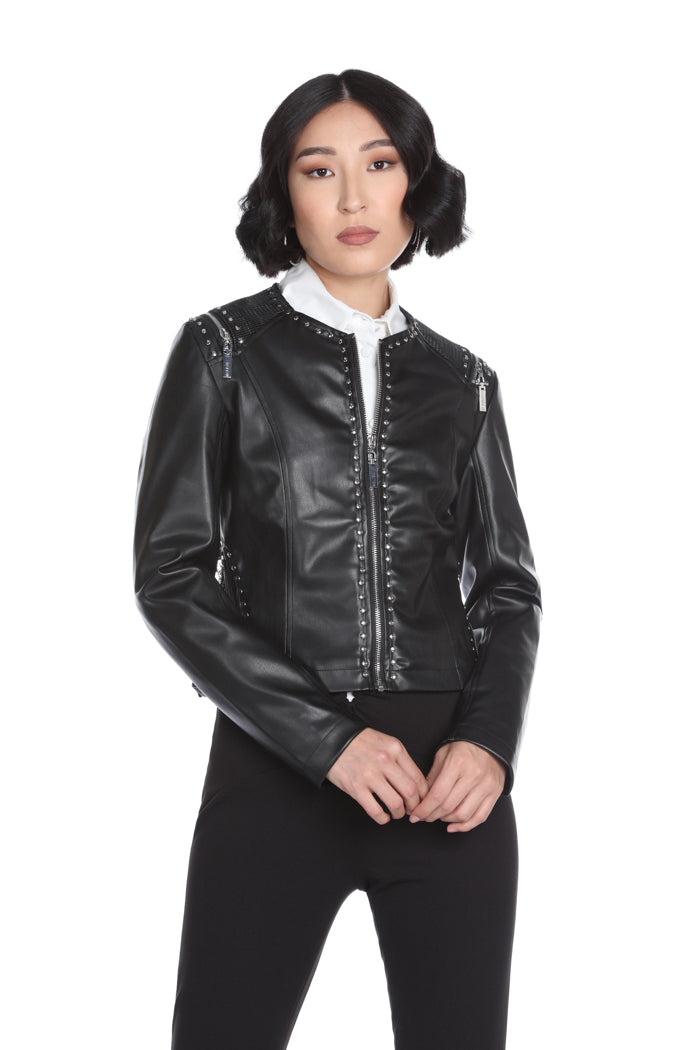 AFRESA 短款长袖夹克,带拉链、工作服缝合和人造皮革饰钉