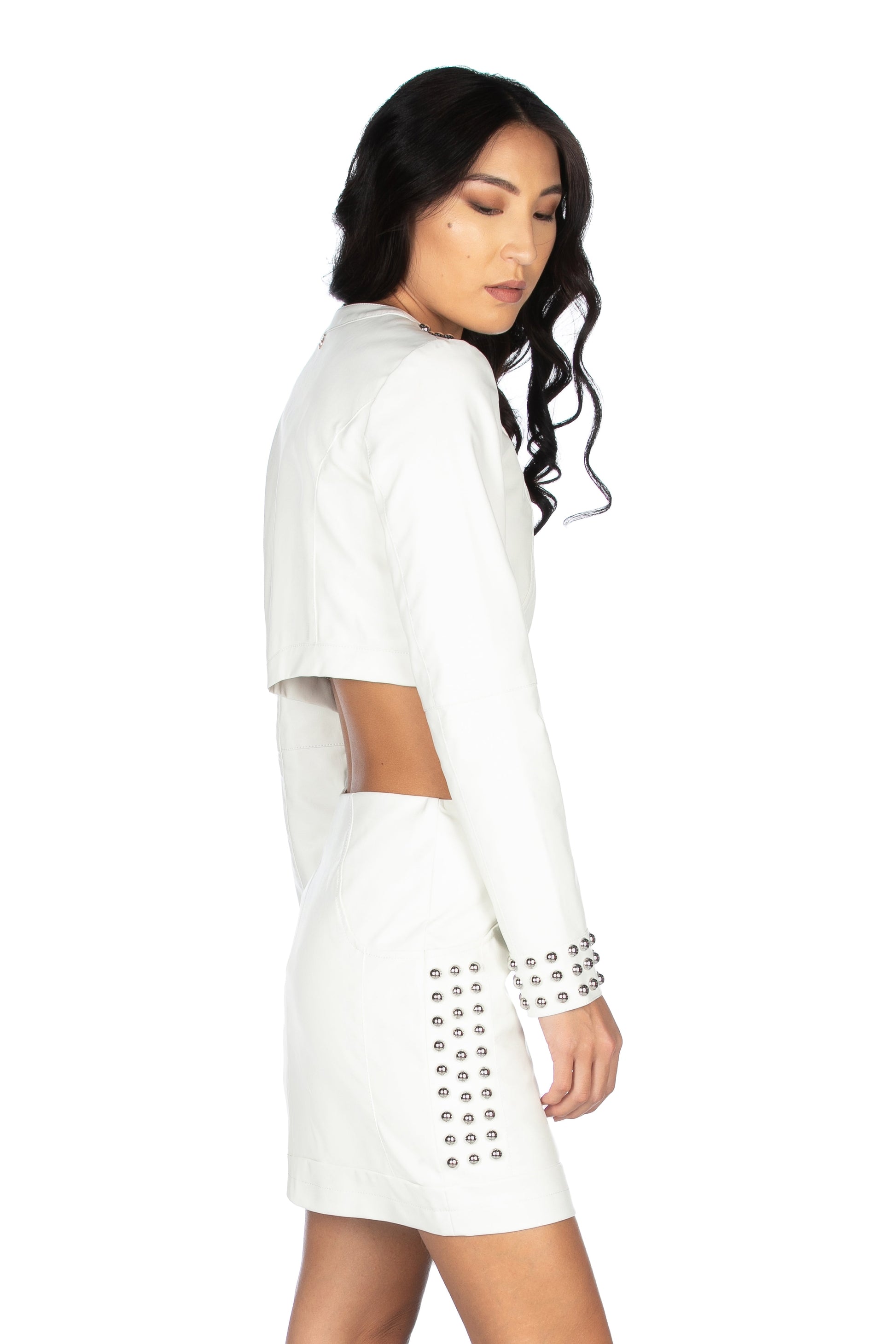 SARDINIA 短款长袖夹克,带拉链加人造皮革公牛