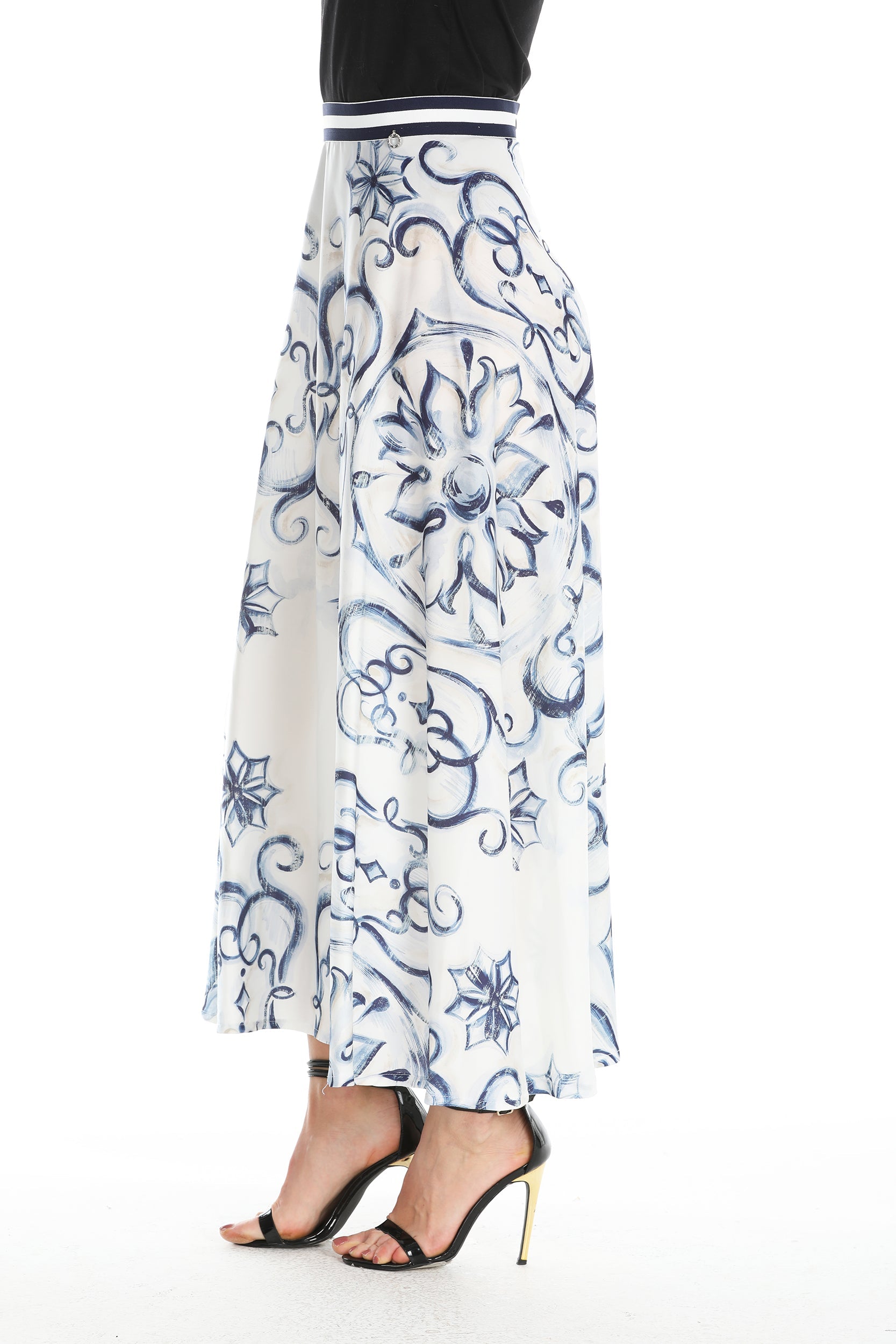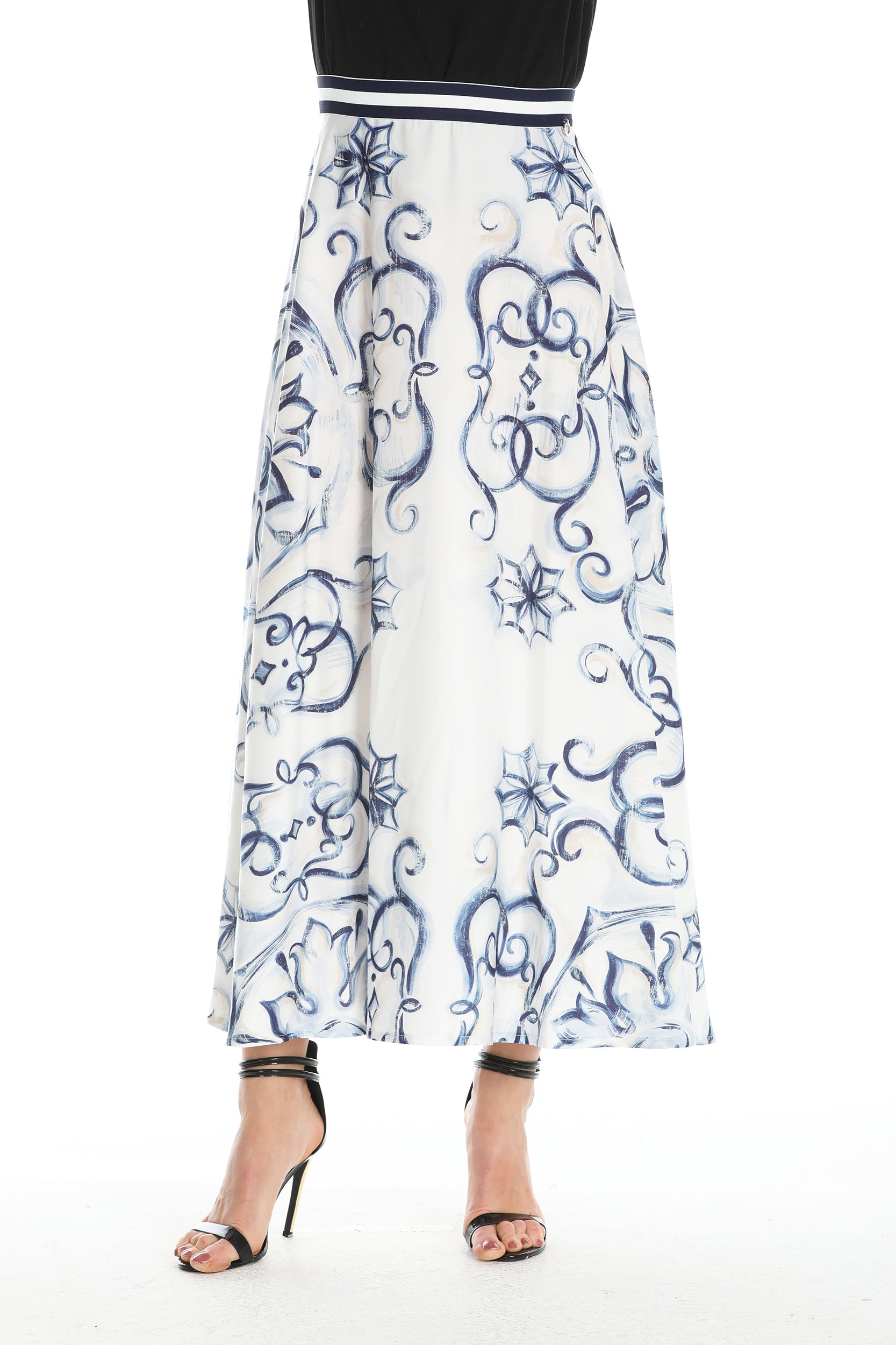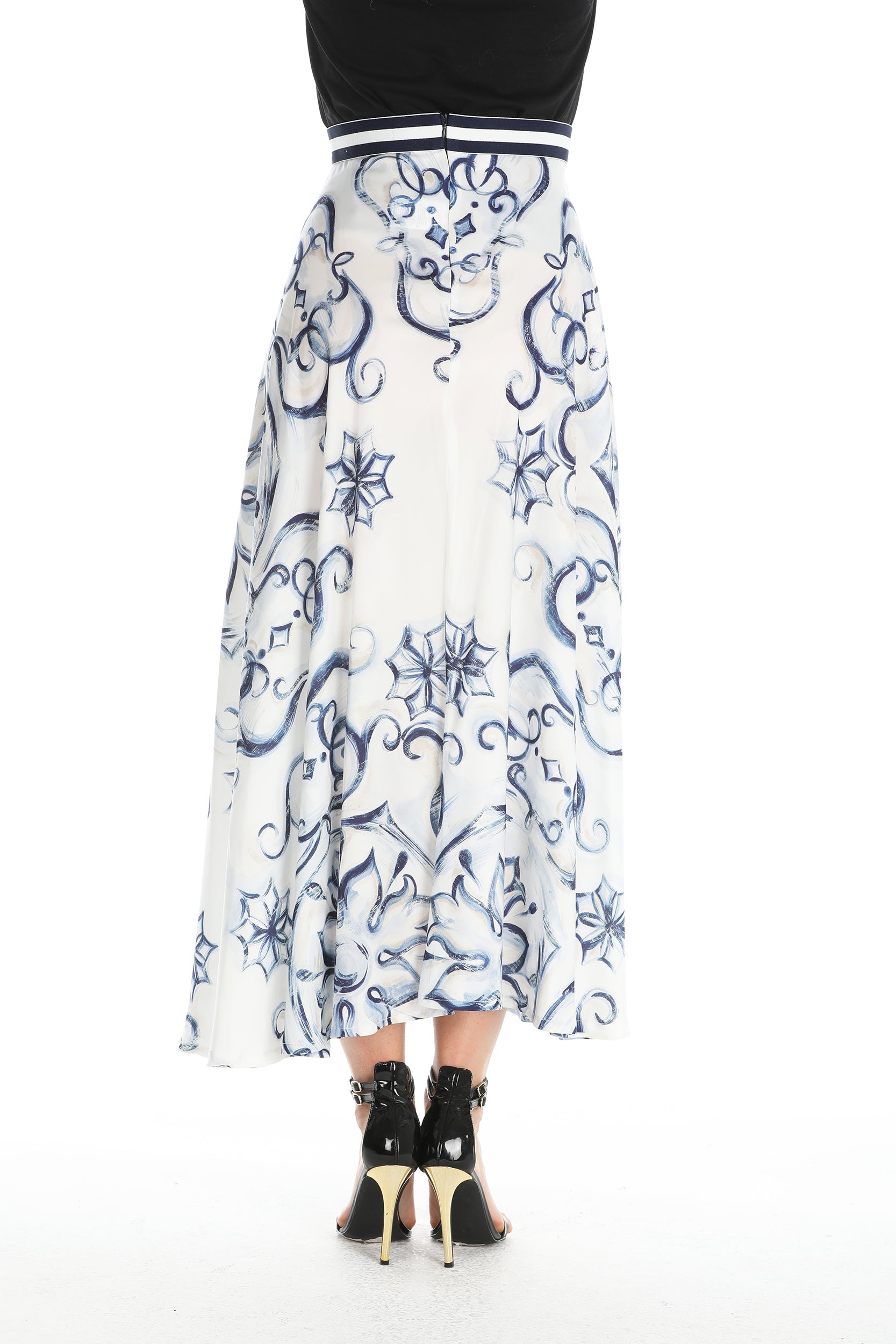 RONDE 珐琅印花中长圆形半身裙