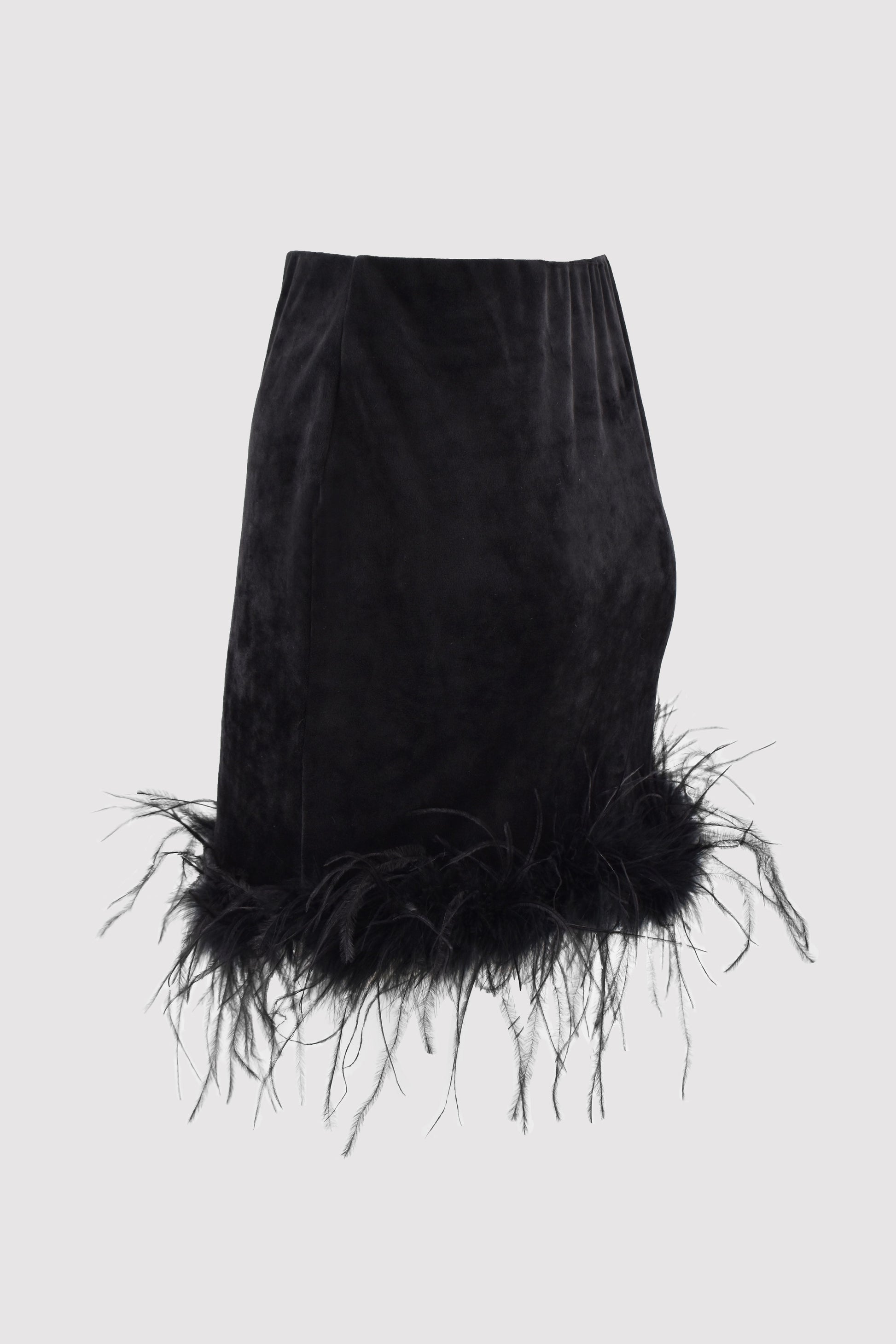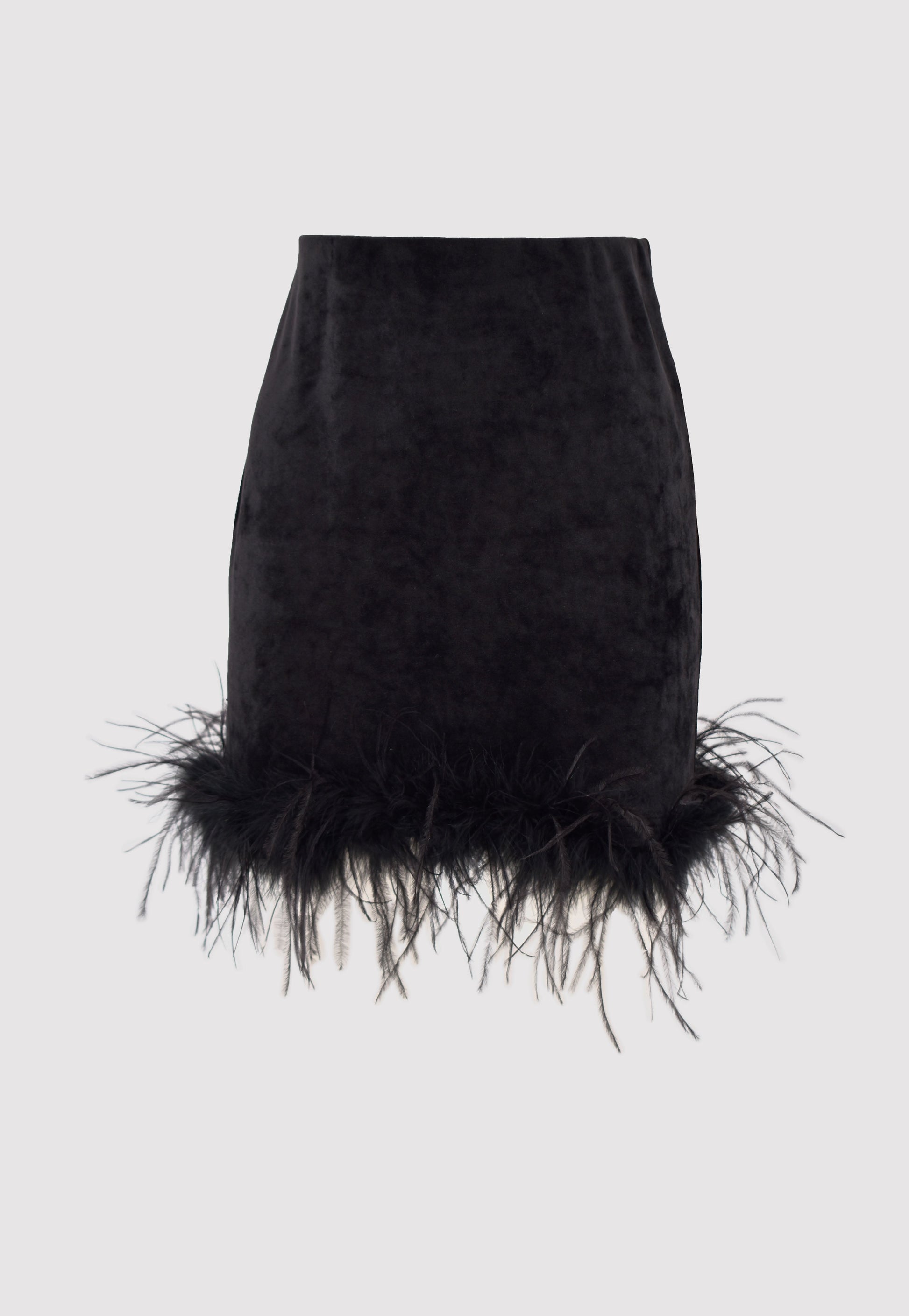 ACQUARIUS 天鹅绒面料和羽毛半身裙