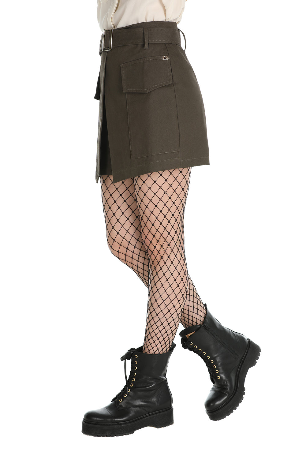 高腰短裙,配交叉口袋面板和 BUFFASY 腰带