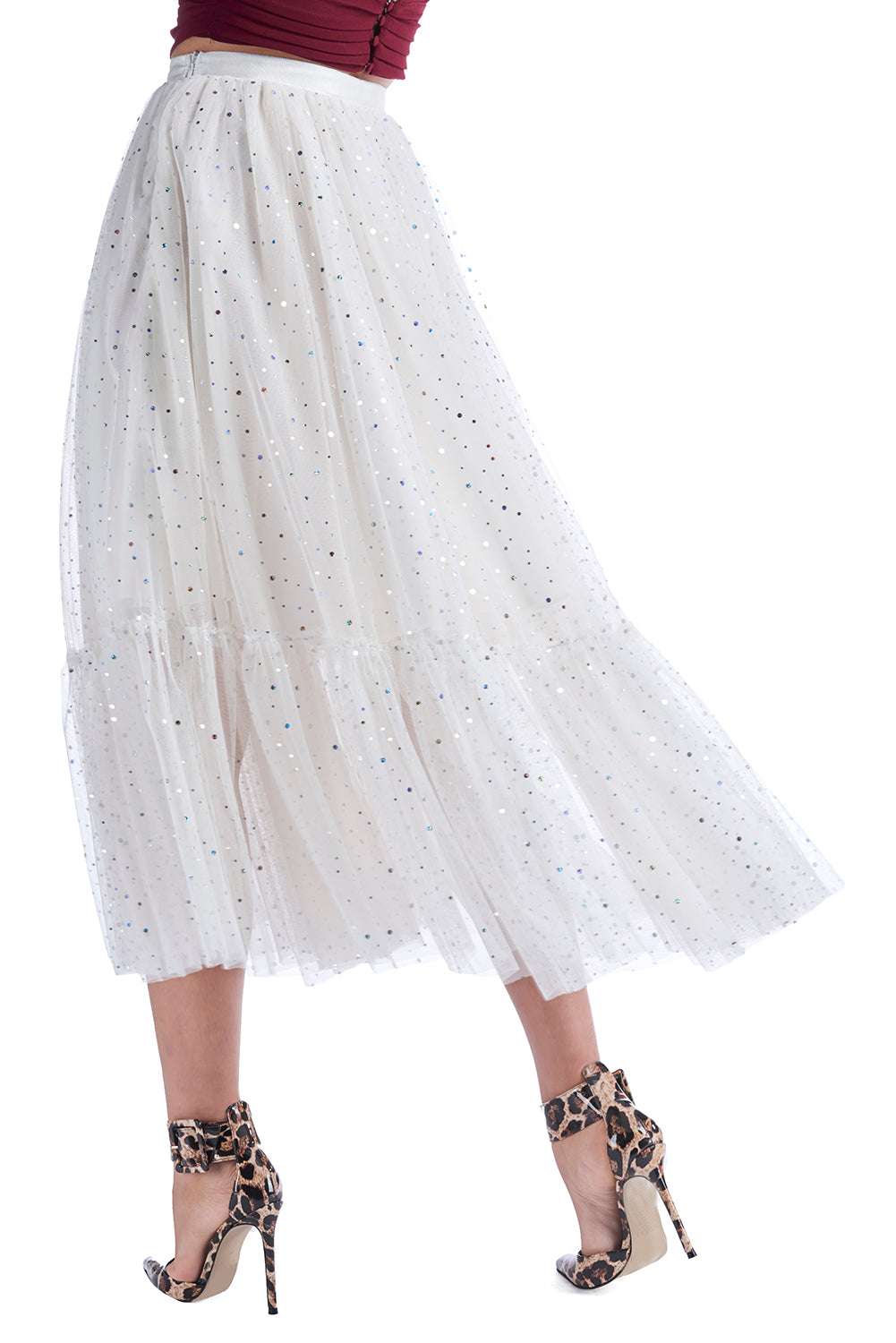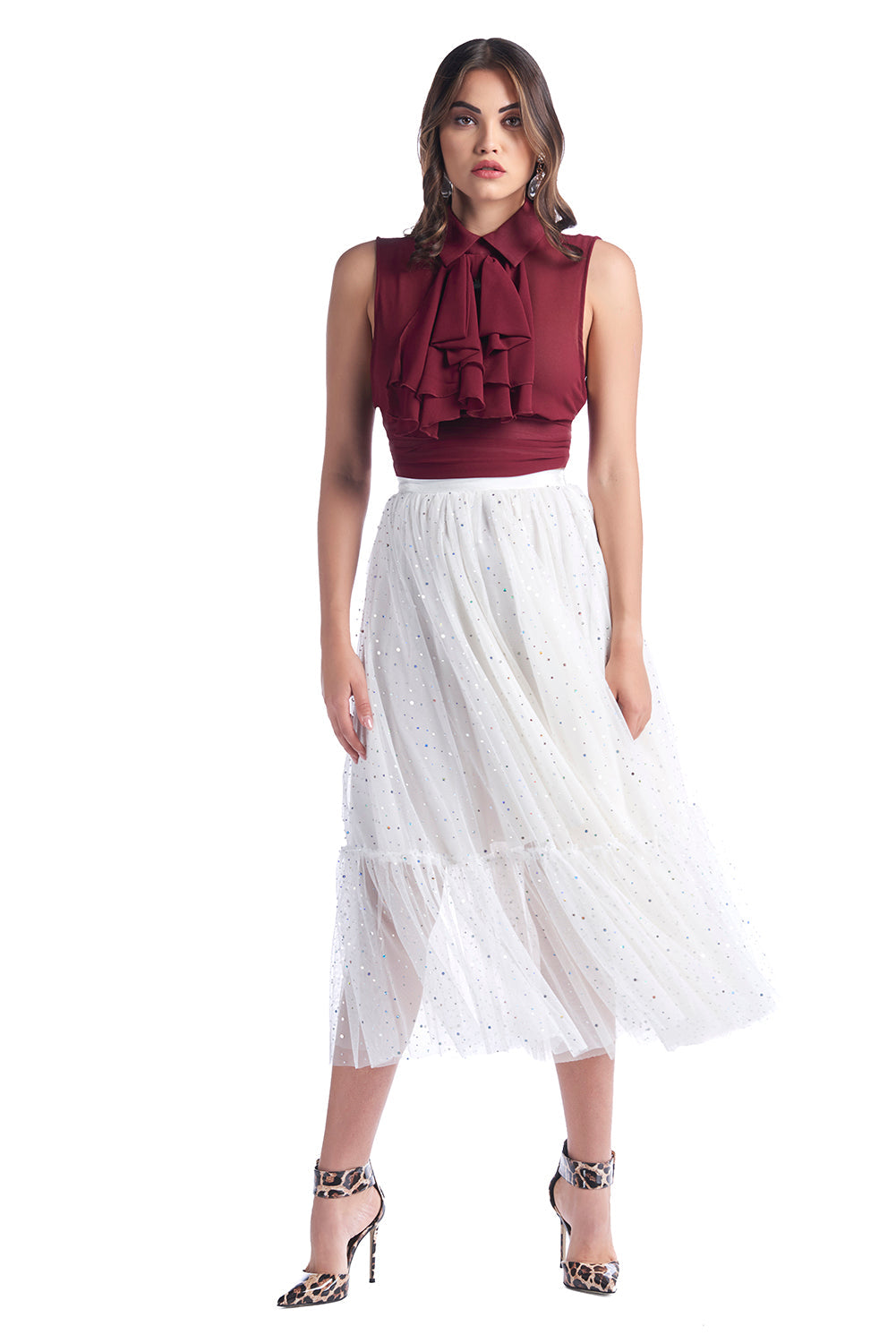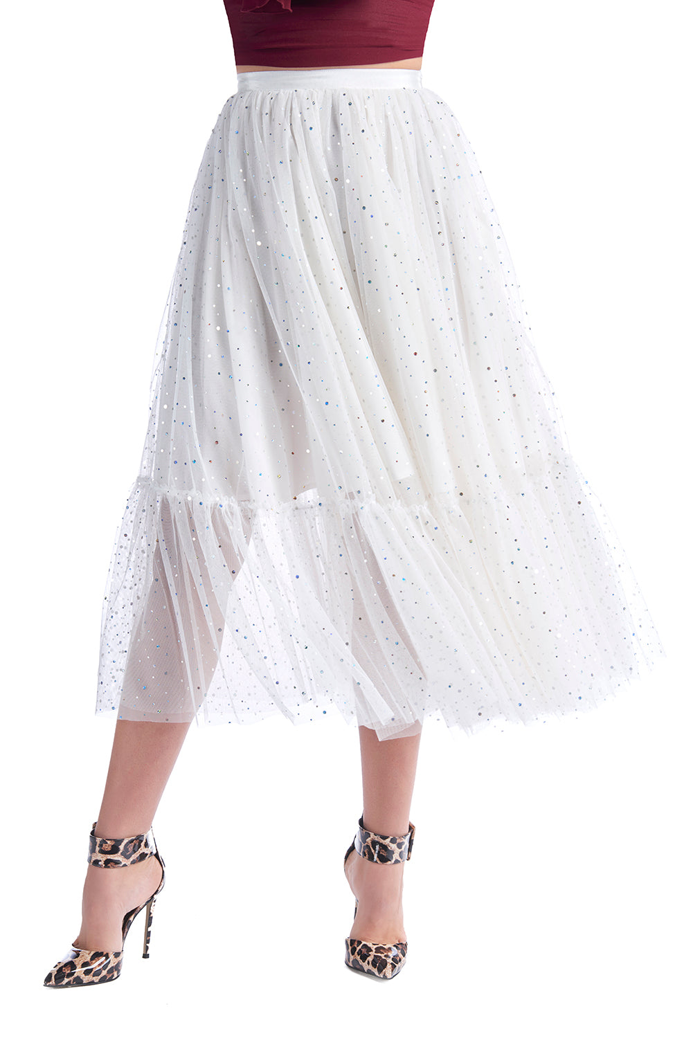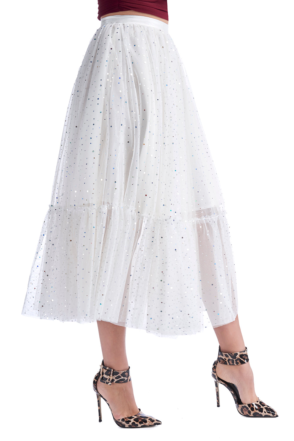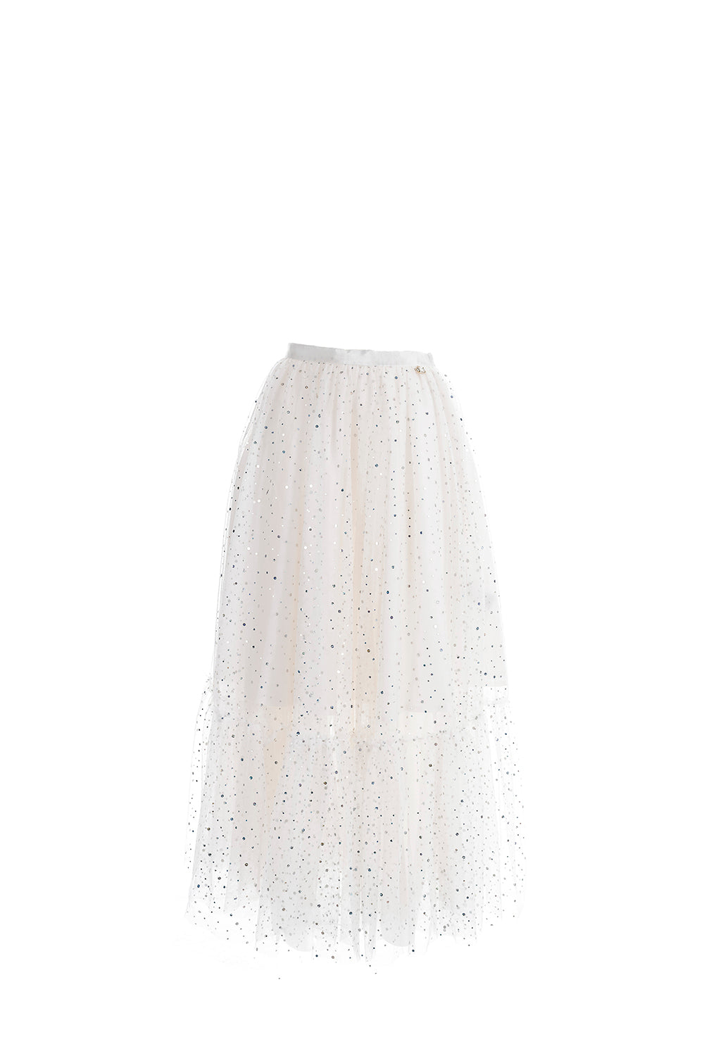 SINDY/薄纱荷叶边和虹彩应用长裙