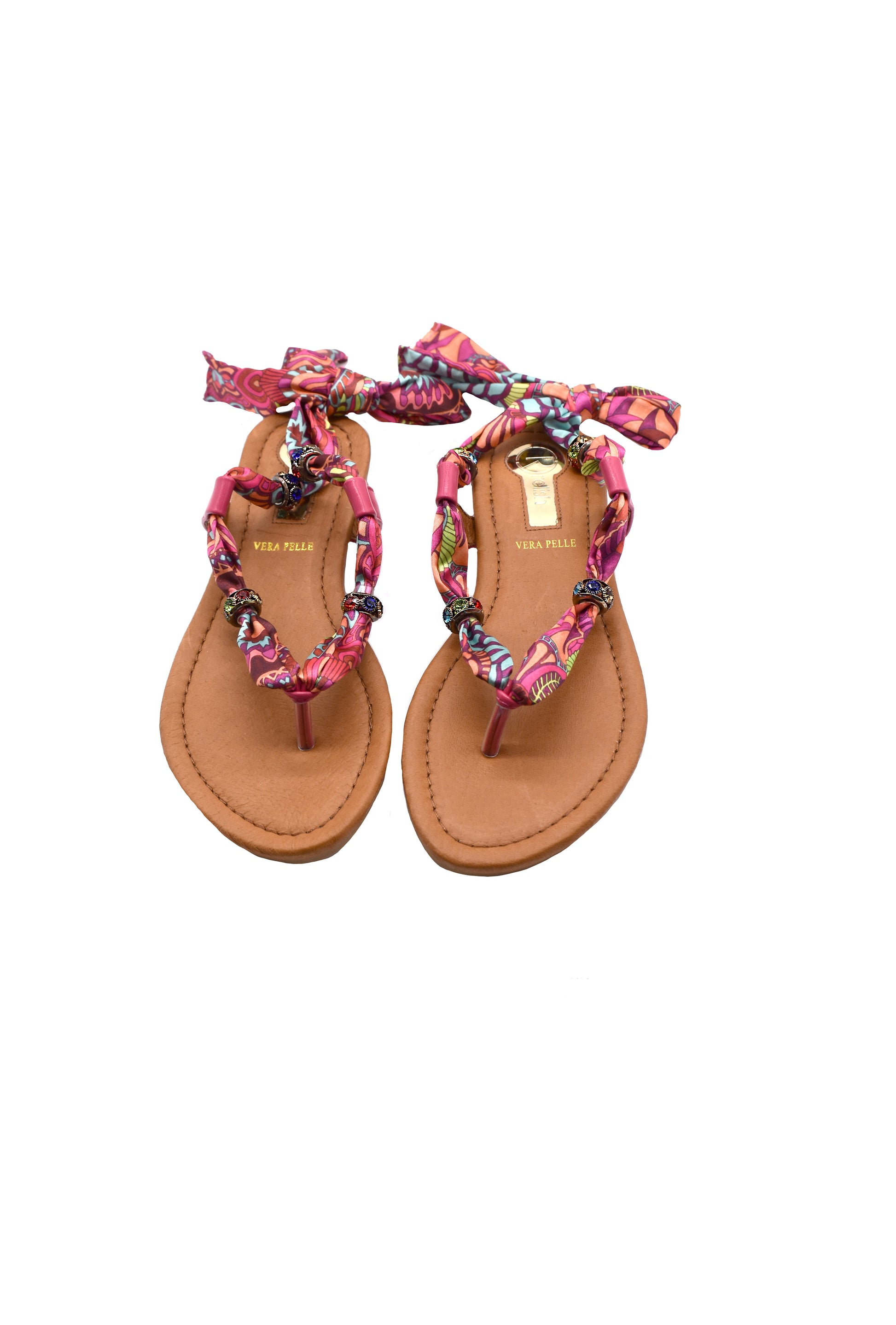 SERAPO 人字拖配卡普里图案围巾和环扣