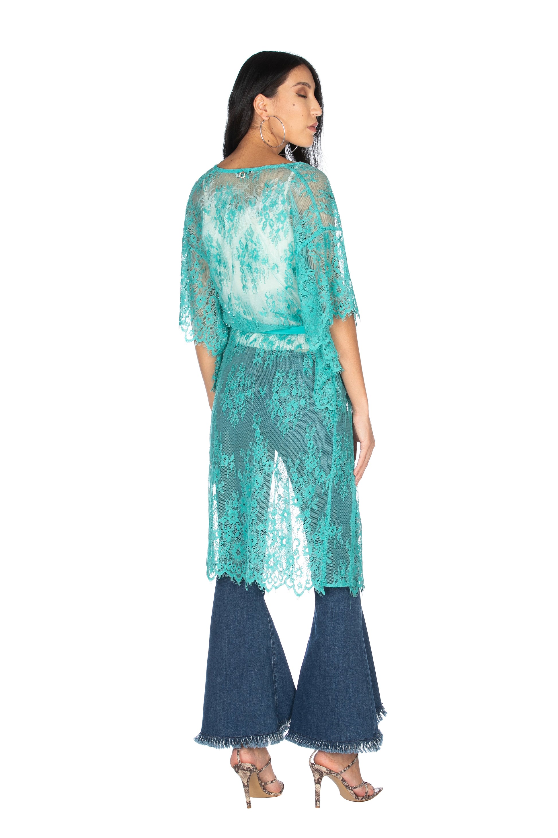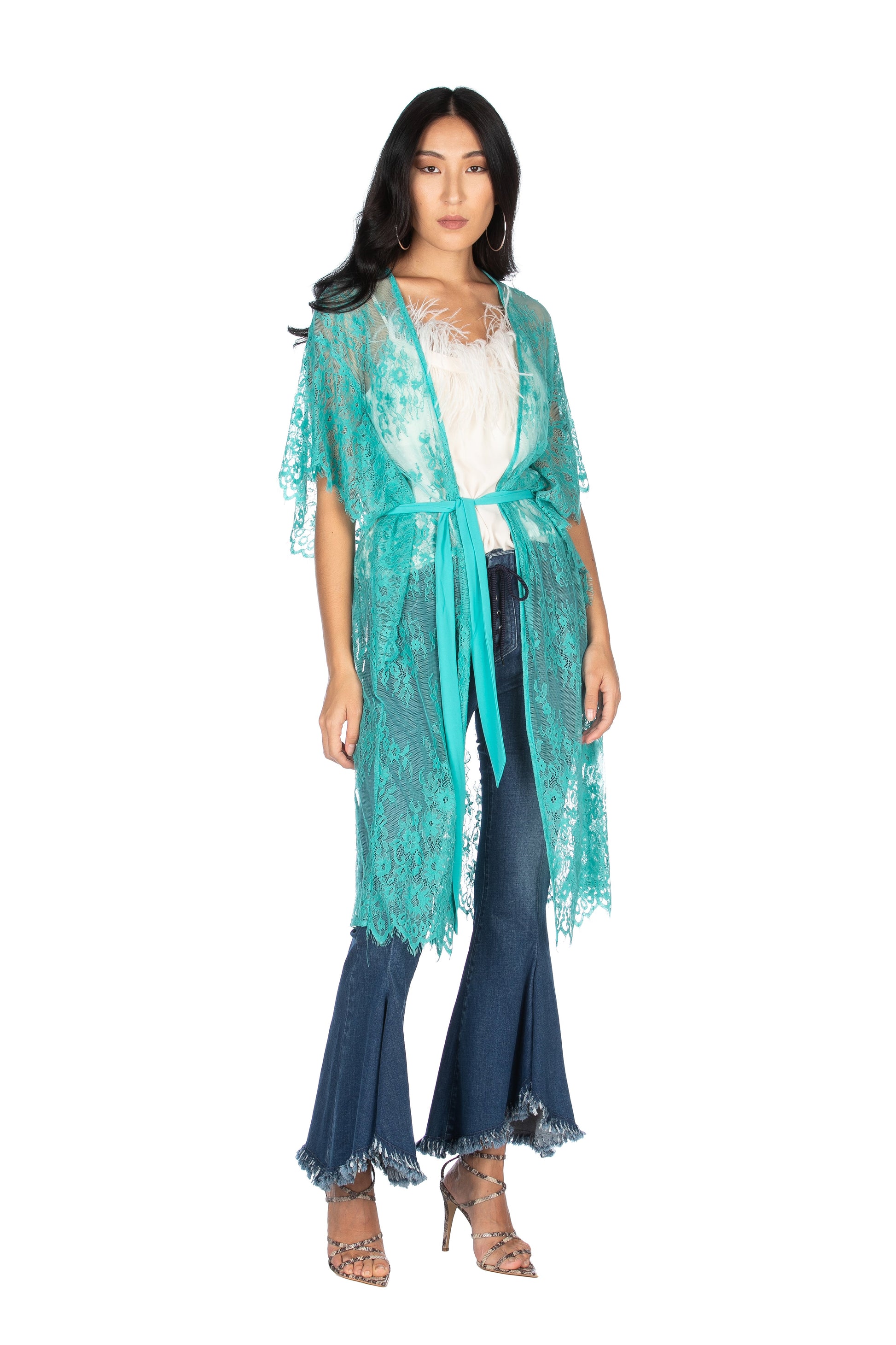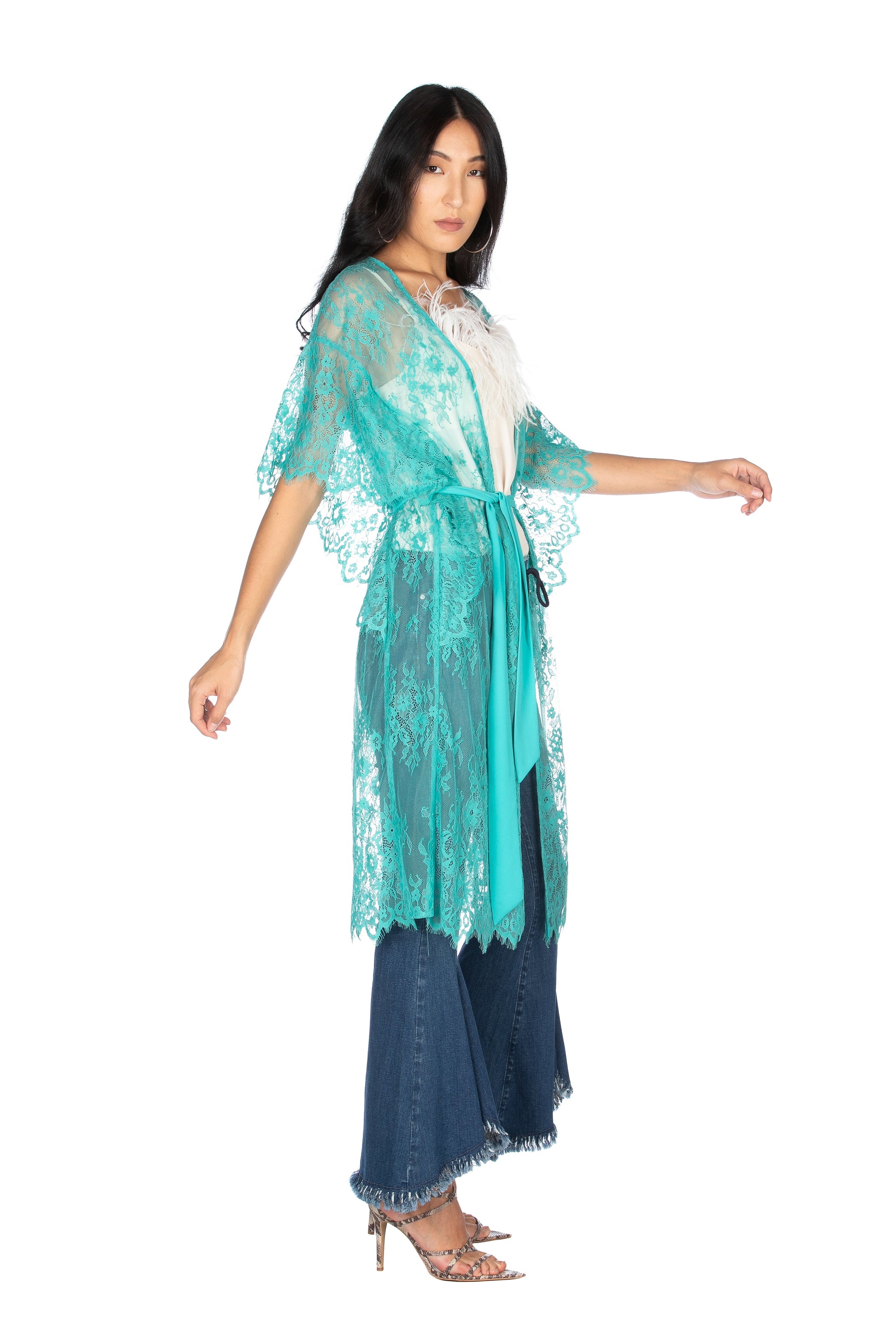 西班牙和服长半袖蕾丝乔其纱腰带