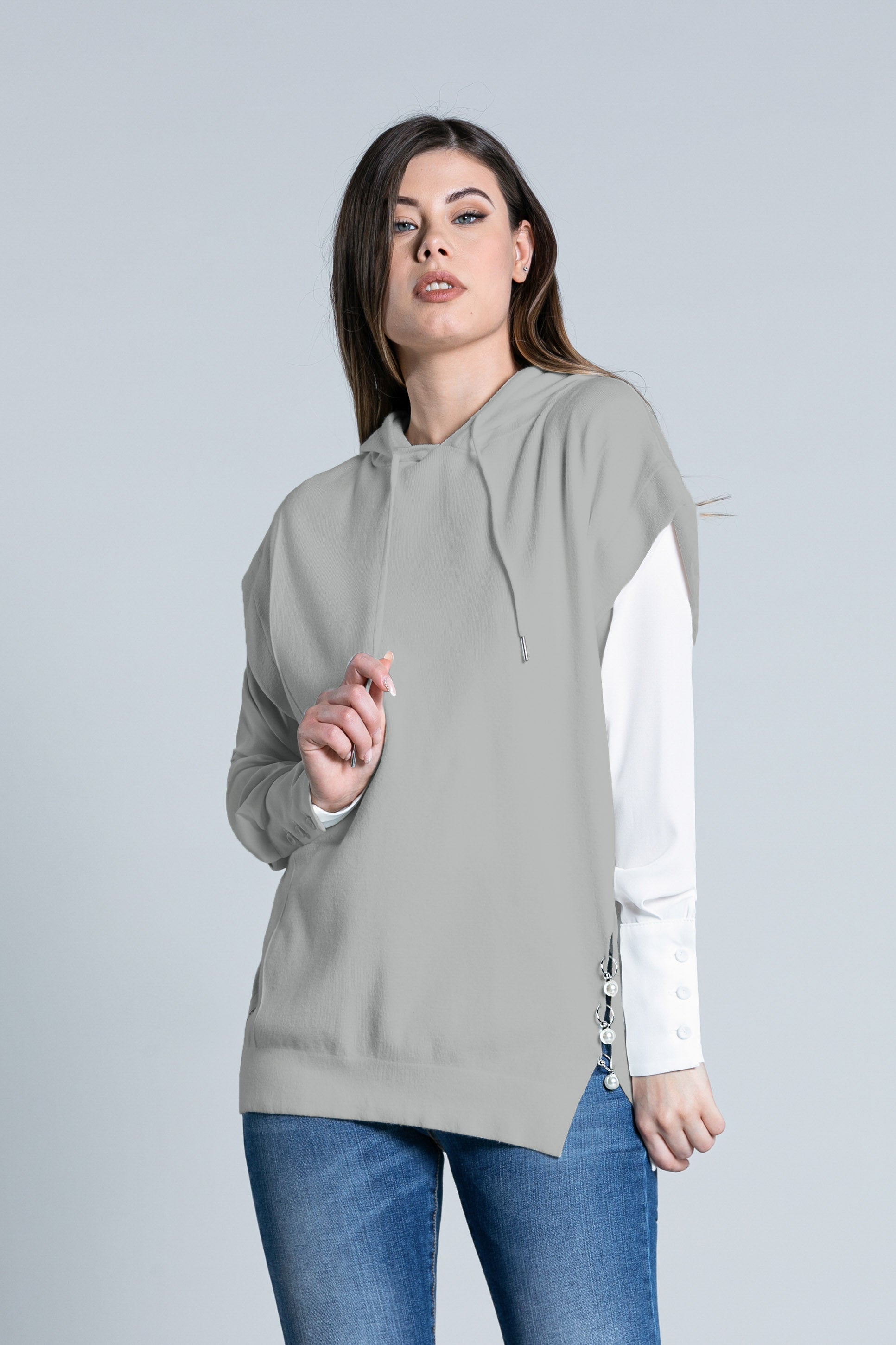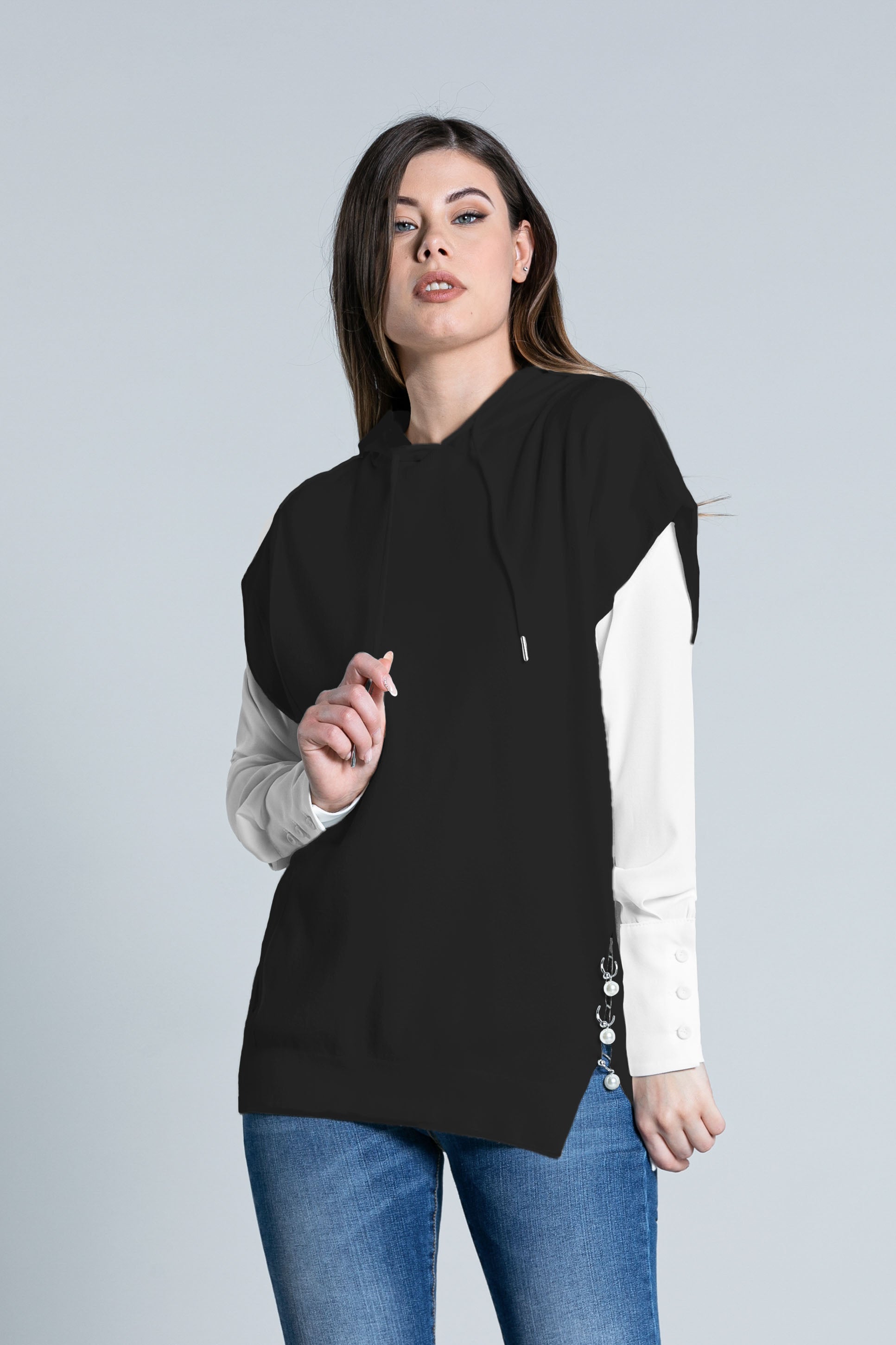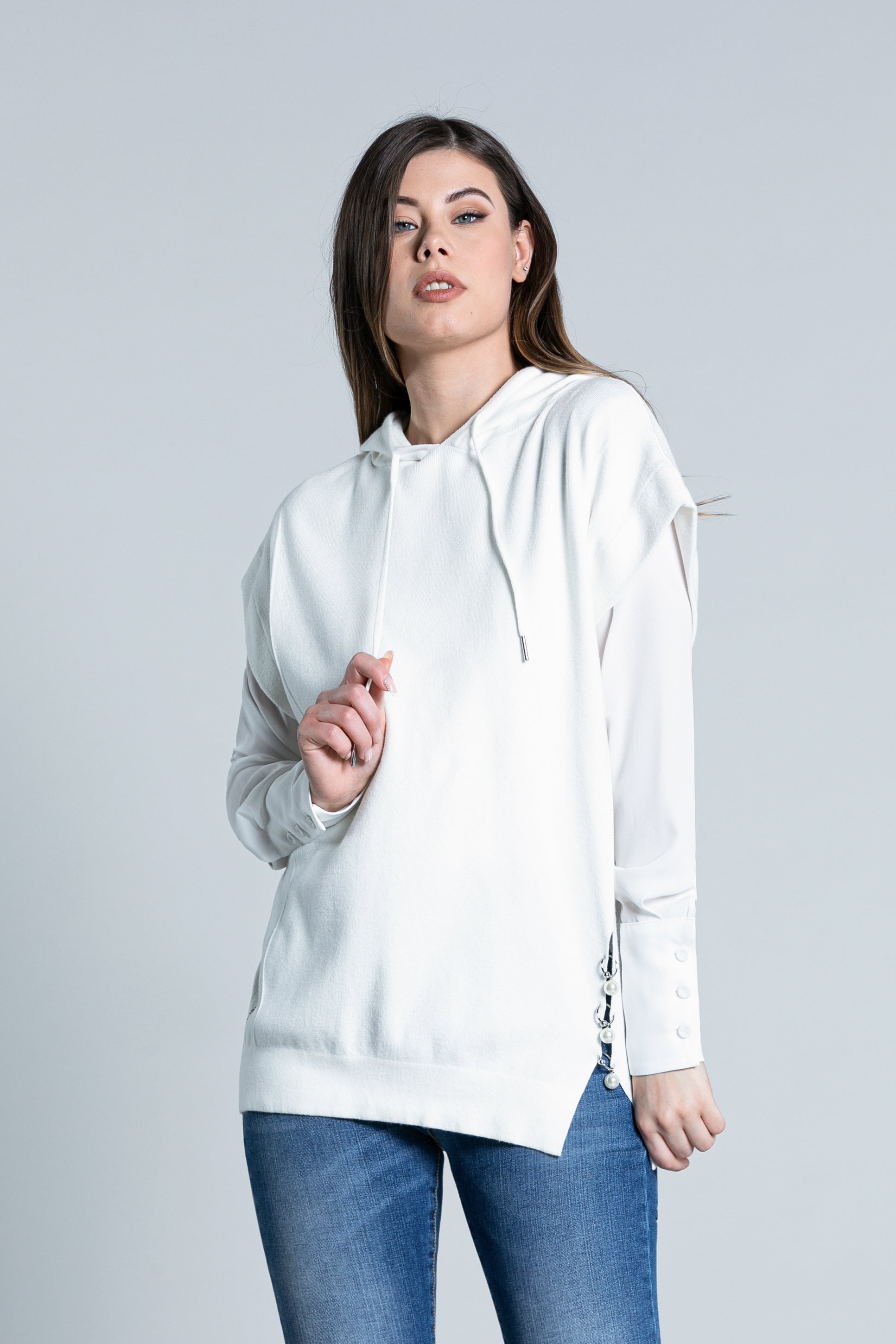 ACCAV长款半袖卫衣连帽加抽绳开衩加圆环加珍珠